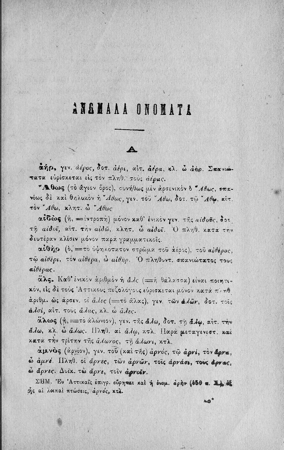 • Ανώμαλα ρήματα και ονόματα της Αττικής διαλέκτου