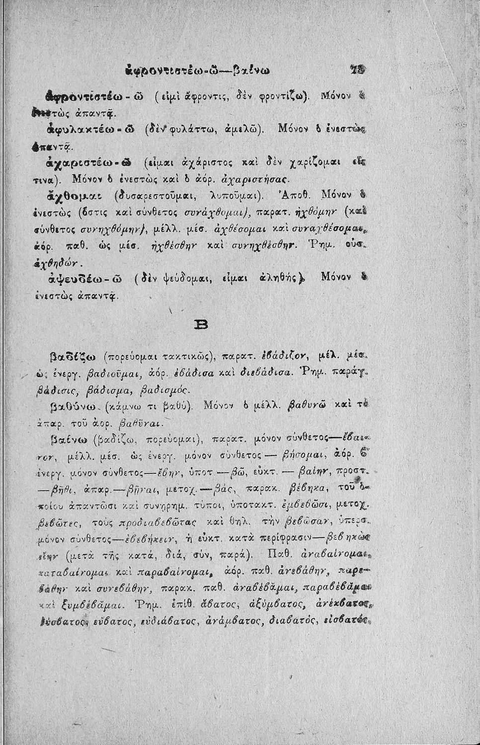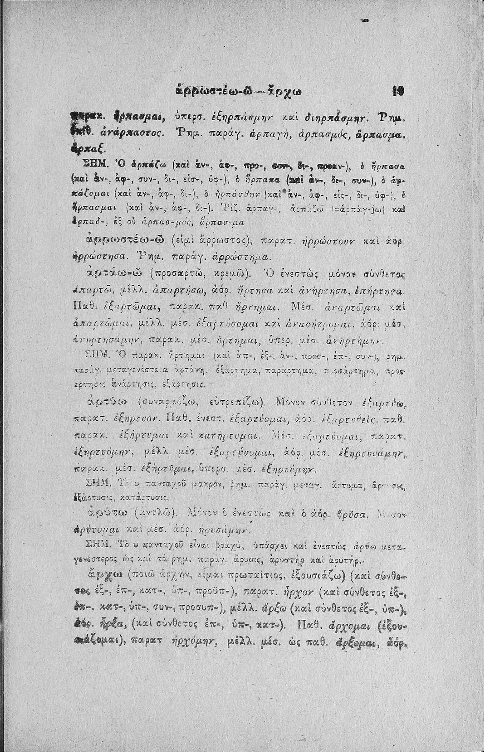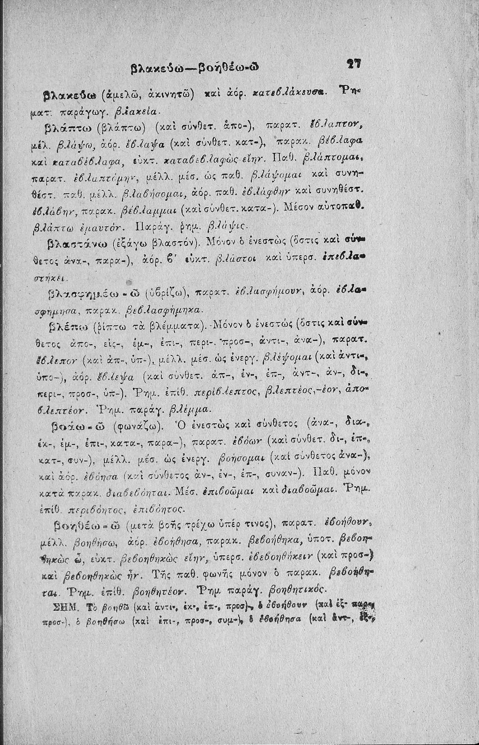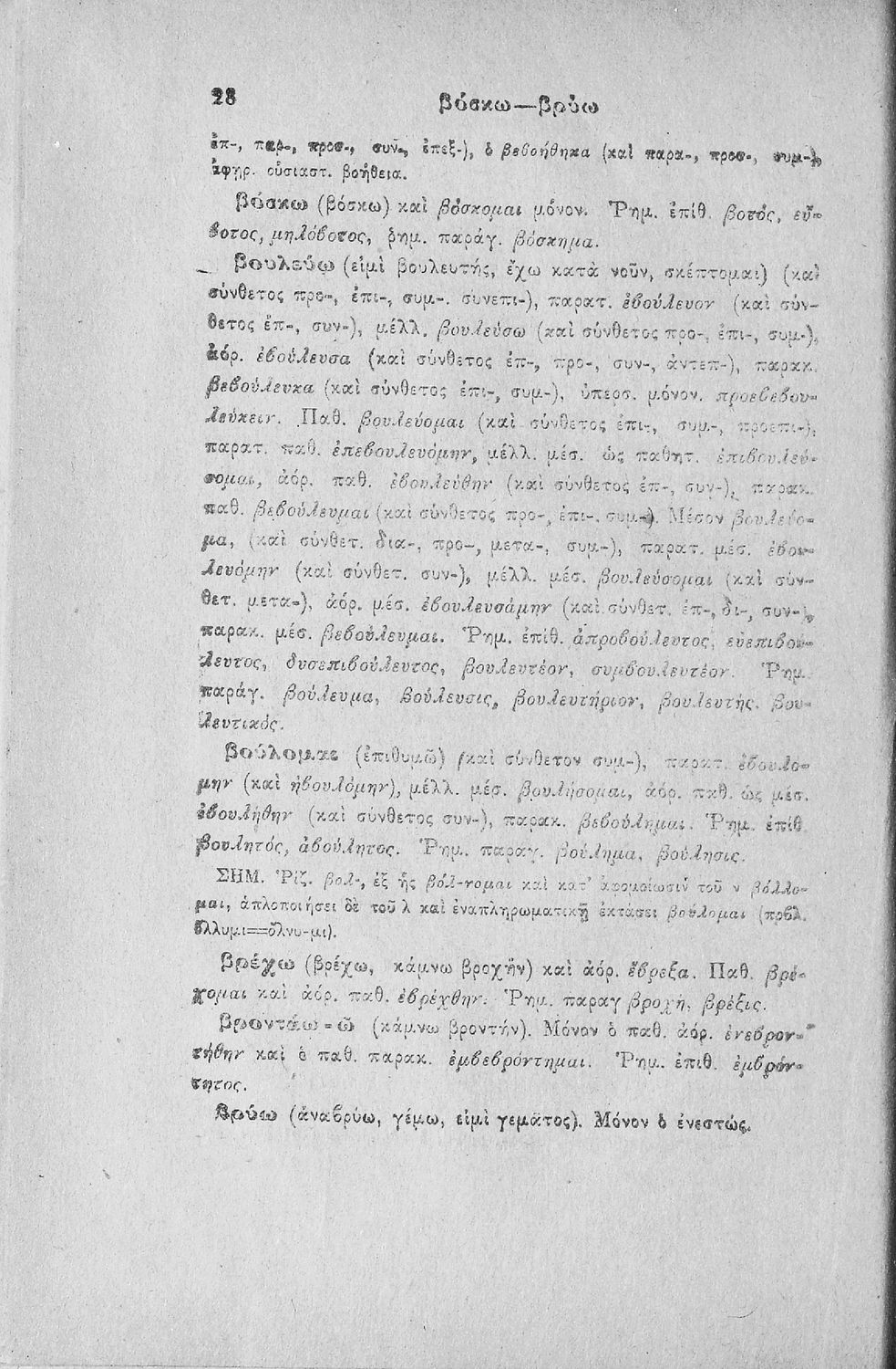 Μαθητικό βοήθημα Αρχαίων Ελληνικών για τα Ελληνικά Σχολεία, Παρθεναγωγεία και Γυμνάσια που περιλαμβάνει γραμματική της αρχαίας ελληνικής και κατάλογο ανωμάλων ρημάτων.