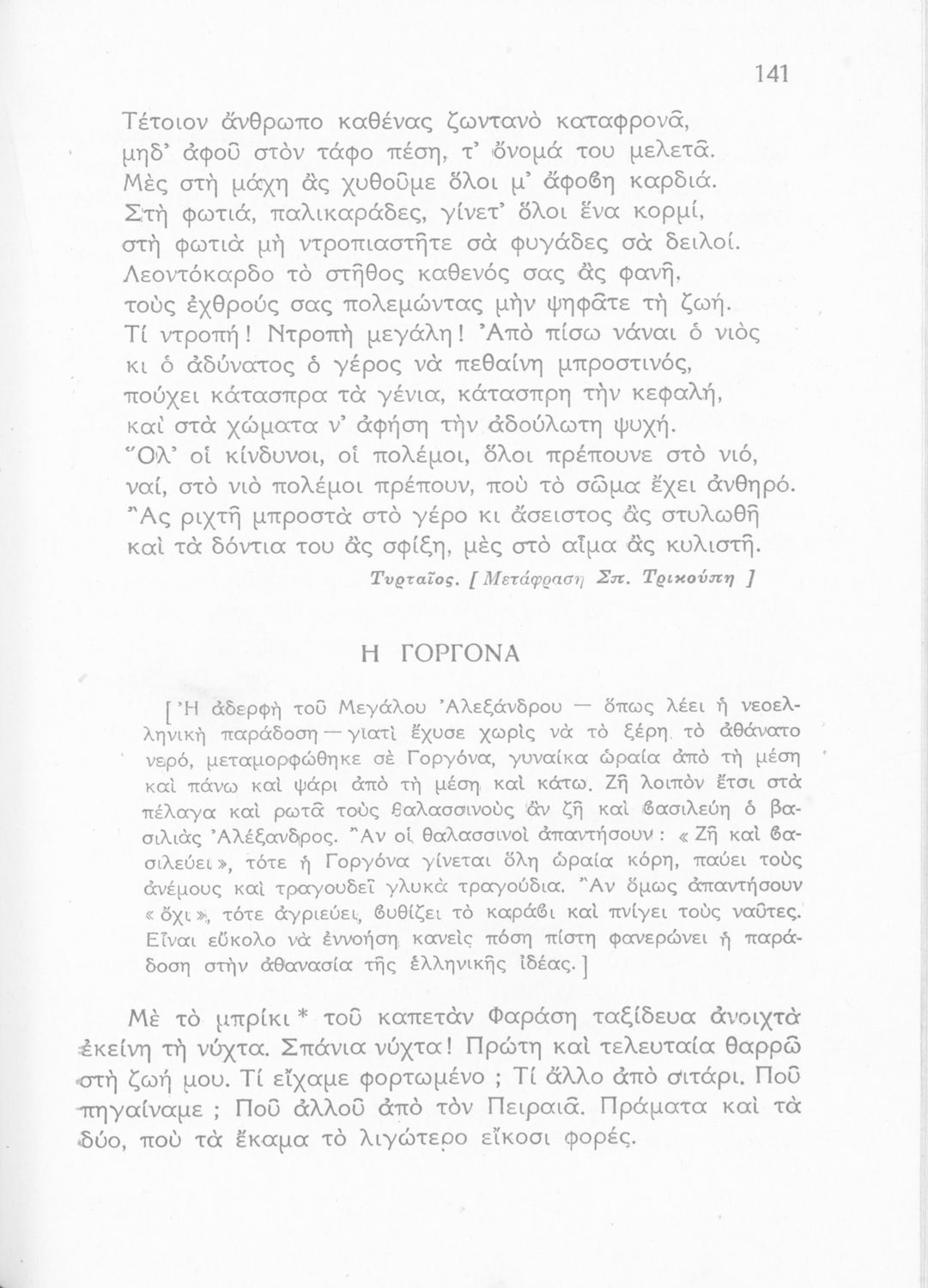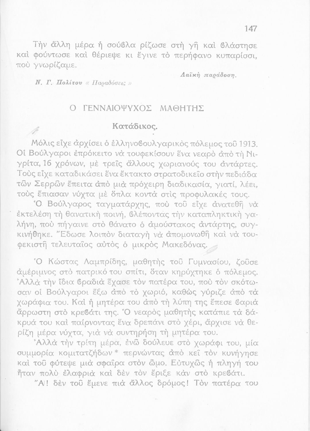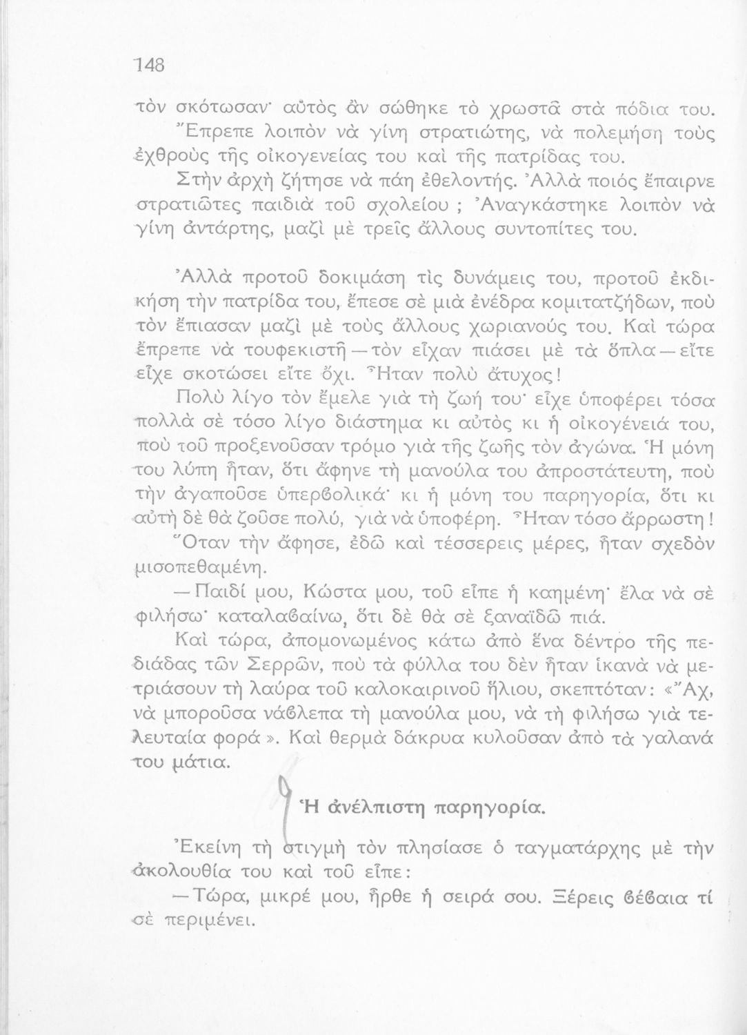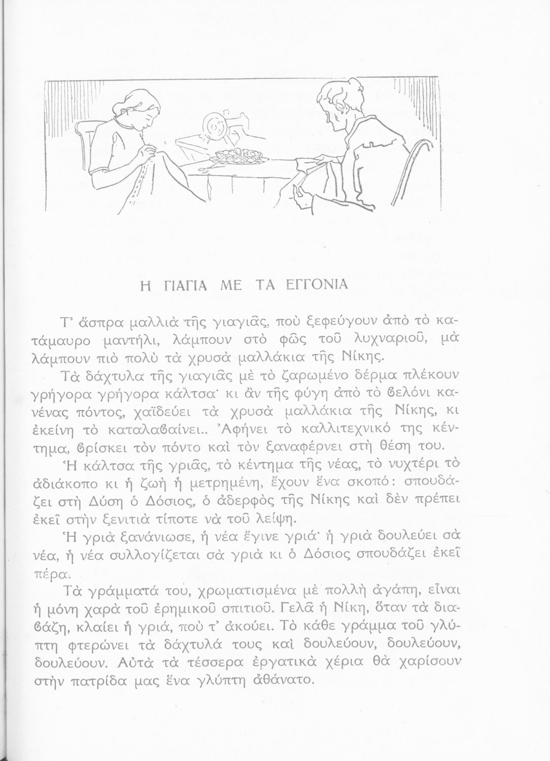 Σχολικό εγχειρίδιο Νέων Ελληνικών Δ΄ Γυμνασίου και Β΄ Αστικού Σχολείου που περιέχει πεζά και ποιήματα Ελλήνων συγγραφέων εμπνευσμένα από τη θρησκευτική και κοινωνική ζωή, την ελληνική μυθολογία, την αρχαία και