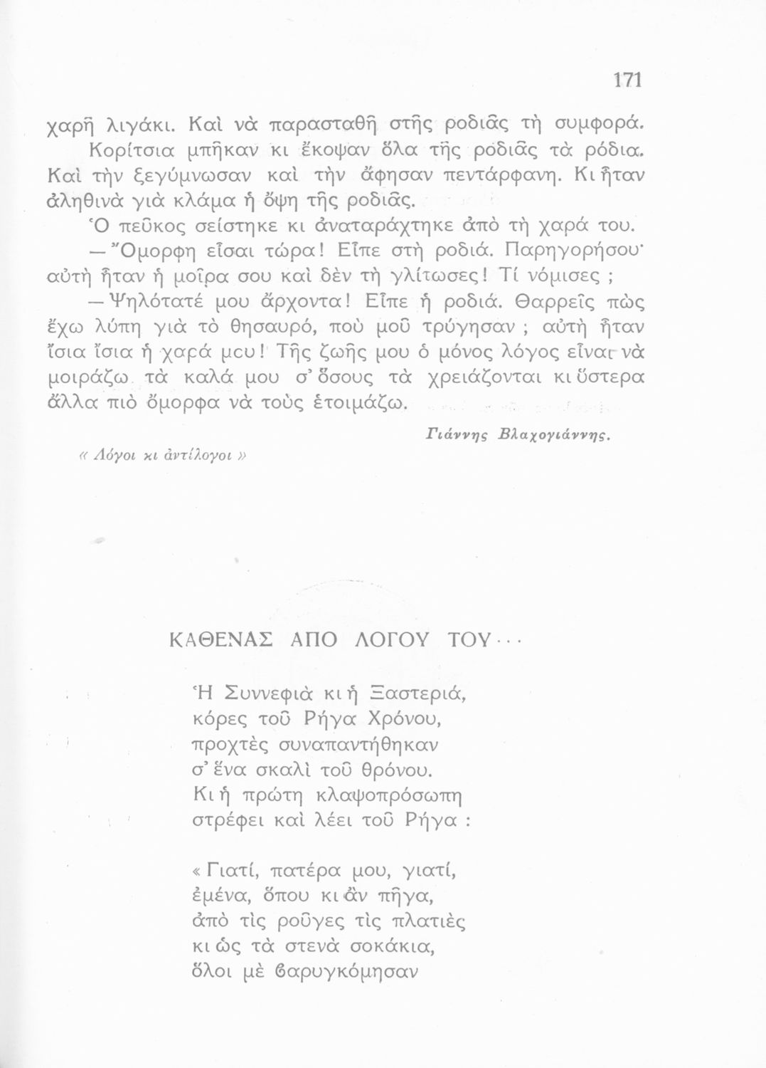 Σχολικό εγχειρίδιο Νέων Ελληνικών Δ΄ Γυμνασίου και Β΄ Αστικού Σχολείου που περιέχει πεζά και ποιήματα Ελλήνων συγγραφέων εμπνευσμένα από τη θρησκευτική και κοινωνική ζωή, την ελληνική μυθολογία, την αρχαία και