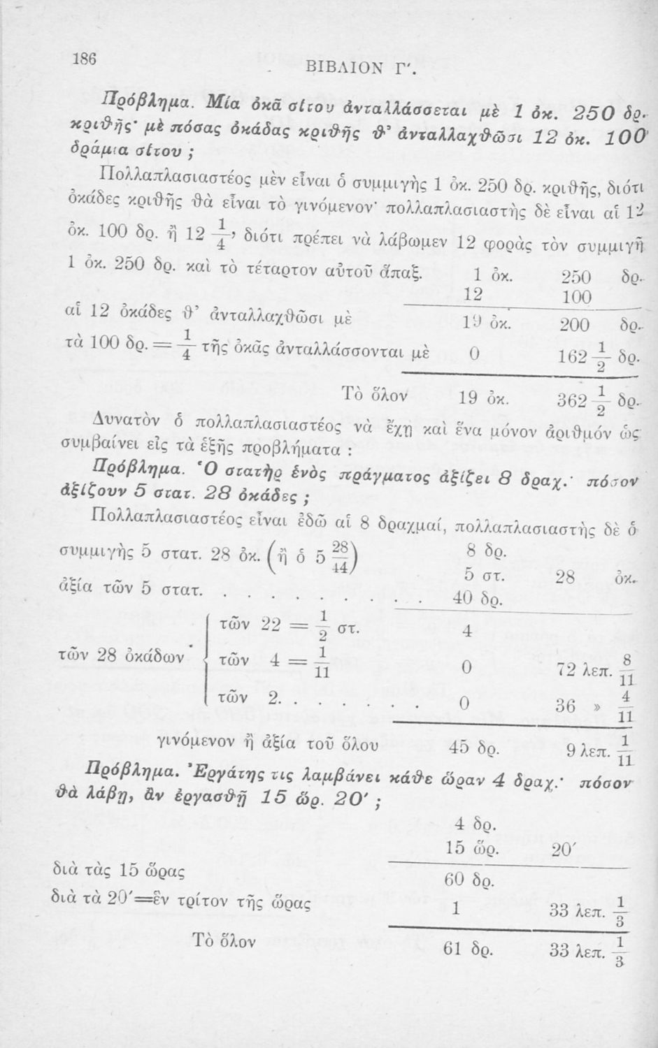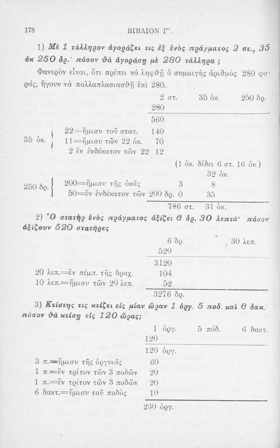 Σχολικό εγχειρίδιο Αριθμητικής για τα Ελληνικά Σχολεία που εστιάζει στις αριθμητικές πράξεις με ακέραιους αριθμούς και κλάσματα και περιλαμβάνει στοιχεία λογιστικής και καταστιχογραφίας.