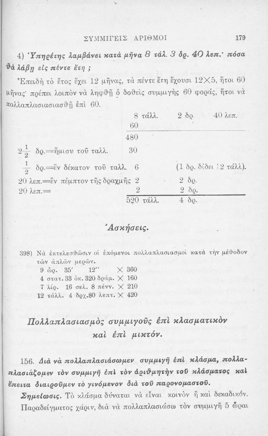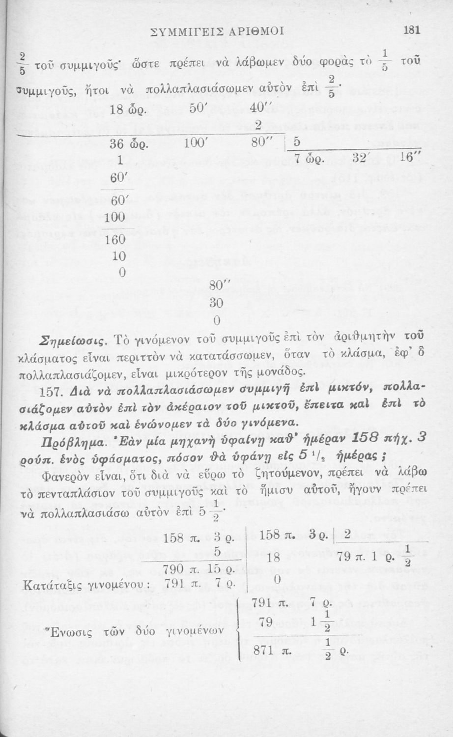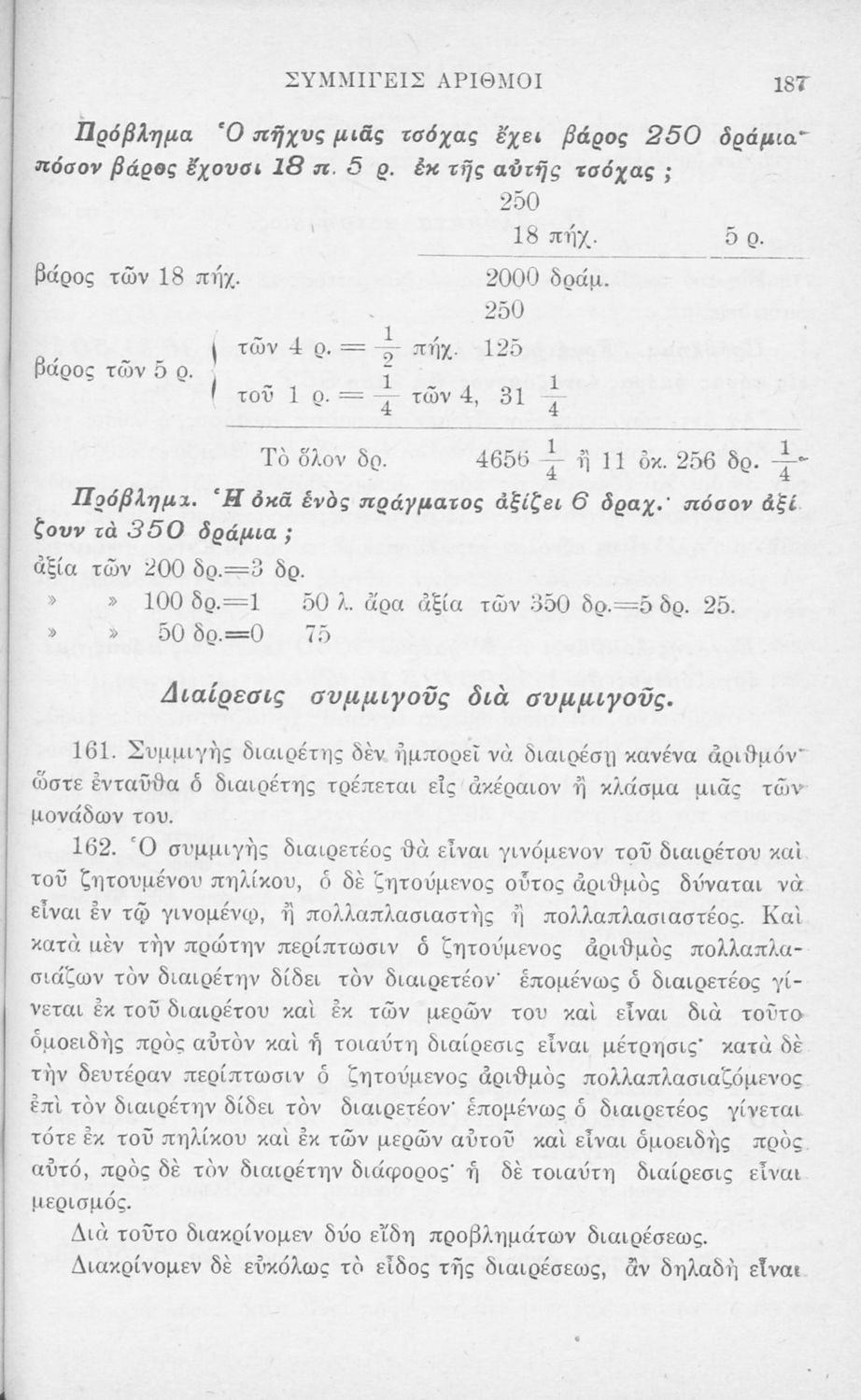 Σχολικό εγχειρίδιο Αριθμητικής για τα Ελληνικά σχολεία και Παρθεναγωγεία που περιέχει θεωρία και ασκήσεις.