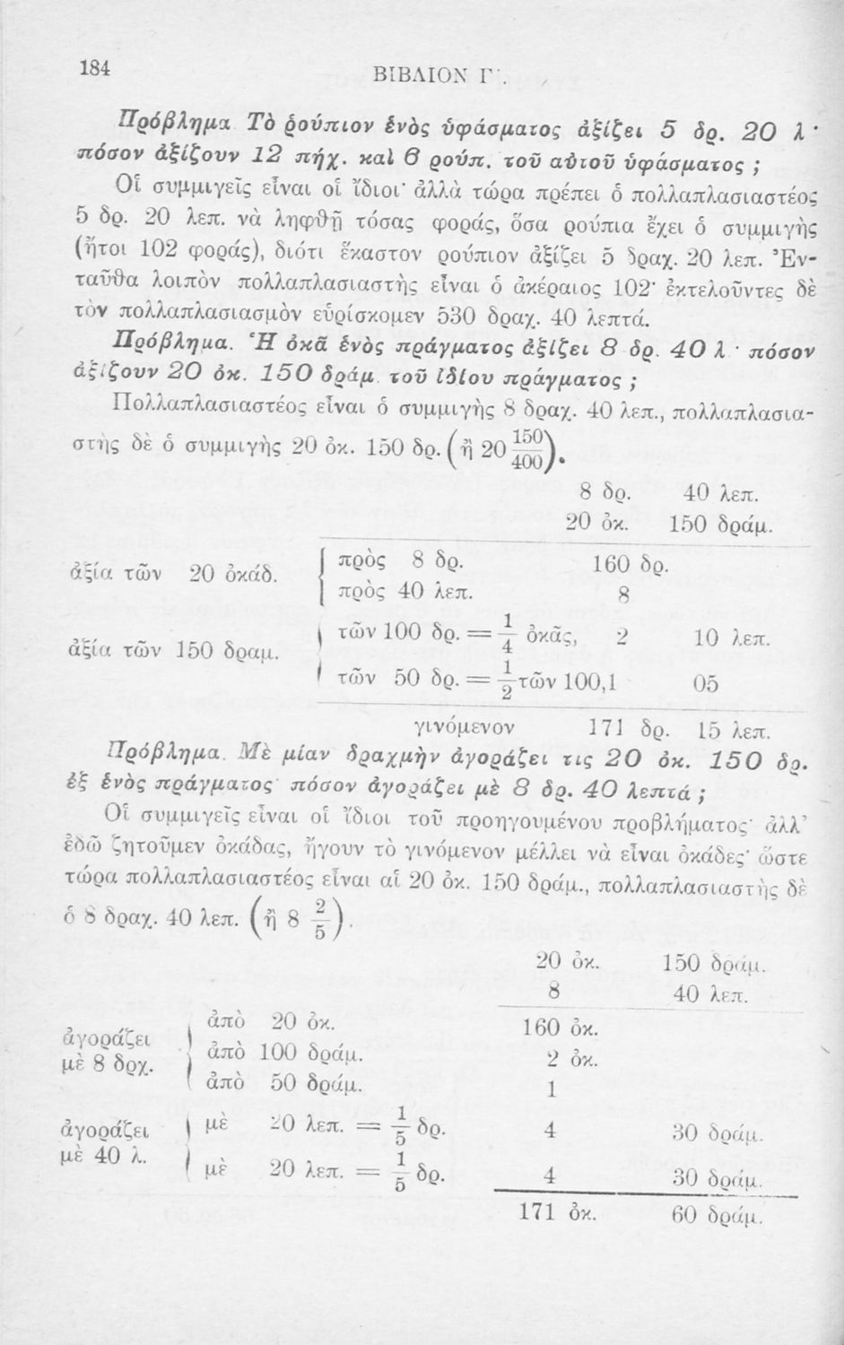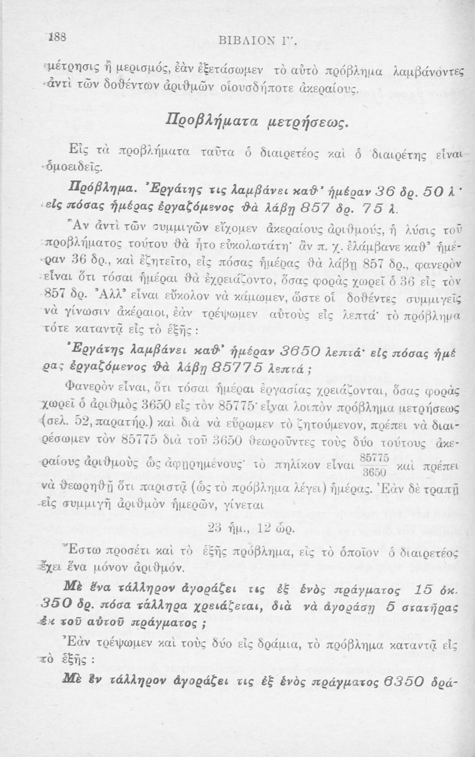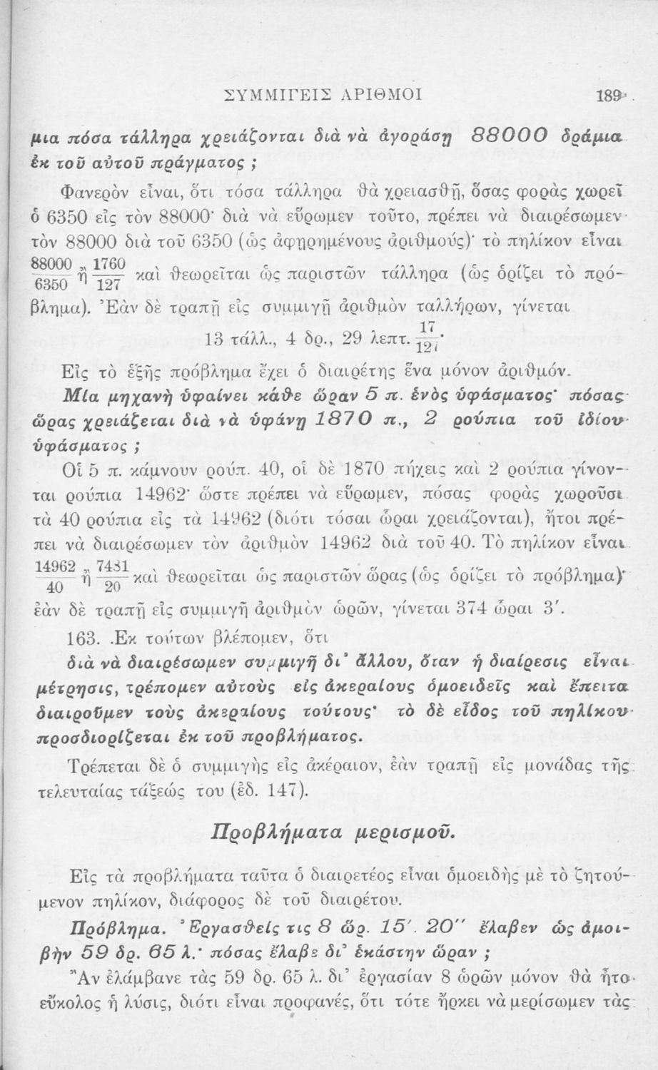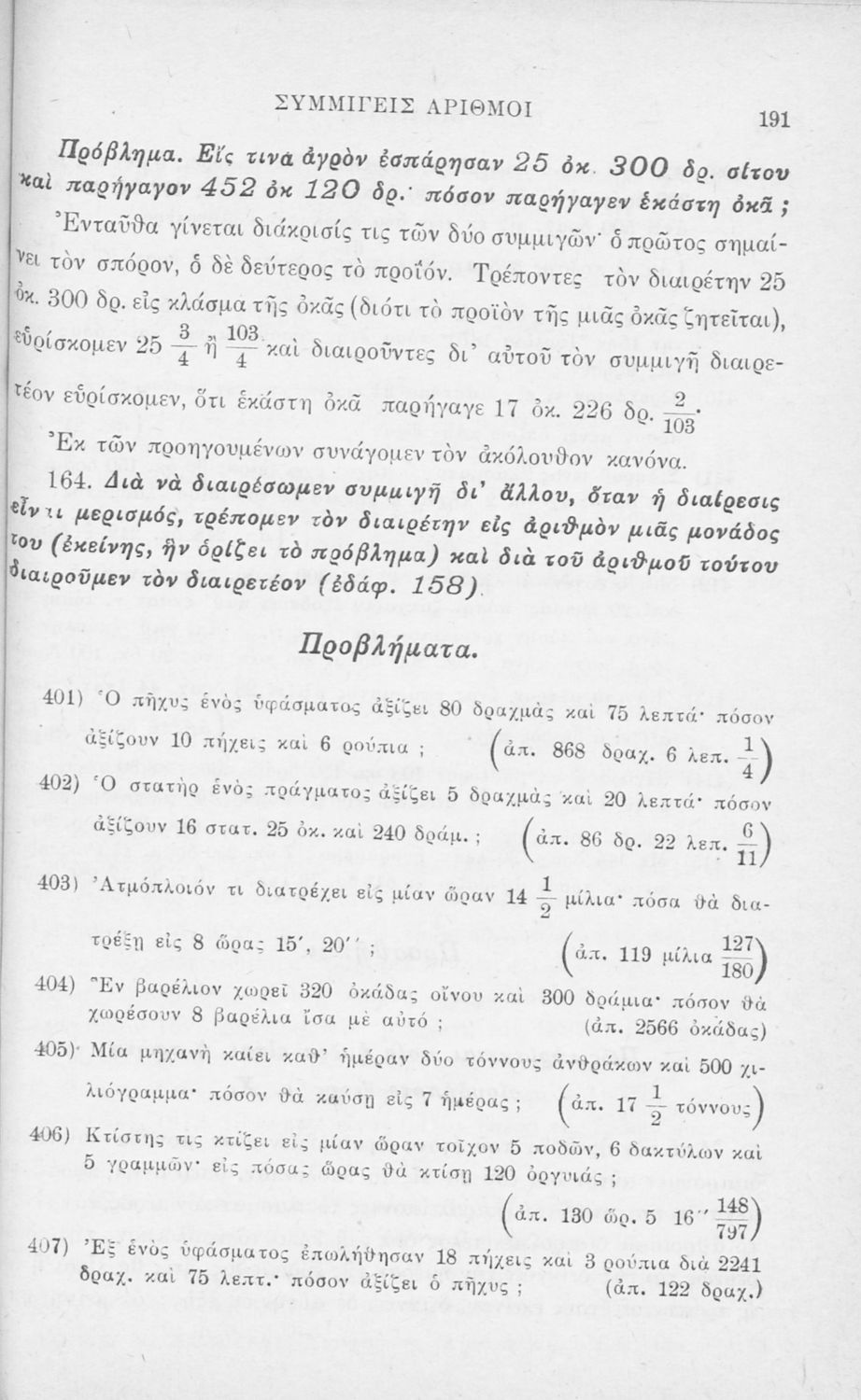 Σχολικό εγχειρίδιο Αριθμητικής για τα Ελληνικά σχολεία και Παρθεναγωγεία που περιέχει θεωρία και ασκήσεις.