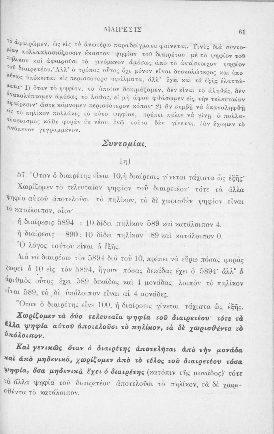 Σχολικό εγχειρίδιο Αριθμητικής για τα Ελληνικά σχολεία και Παρθεναγωγεία που περιέχει θεωρία και ασκήσεις.