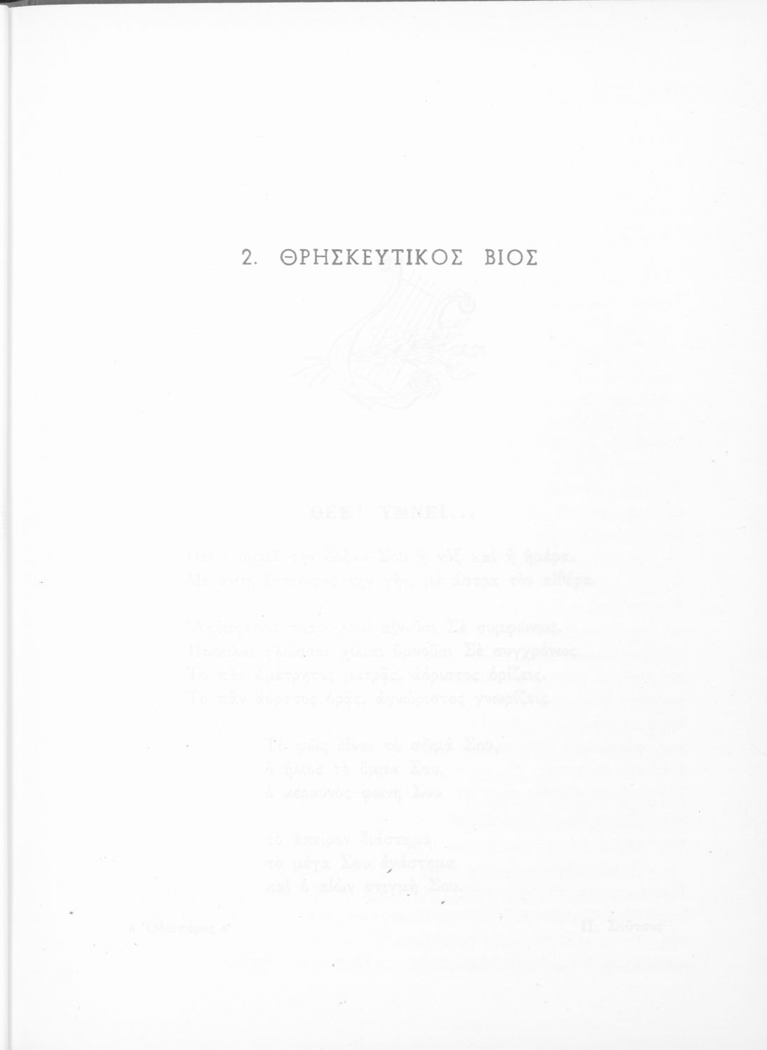 Σχολικό εγχειρίδιο Νέων Ελληνικών Δ΄ Γυμνασίου και Β΄ Αστικού Σχολείου που περιέχει πεζά και ποιήματα Ελλήνων συγγραφέων εμπνευσμένα από τη θρησκευτική και κοινωνική ζωή, την ελληνική μυθολογία, την αρχαία και
