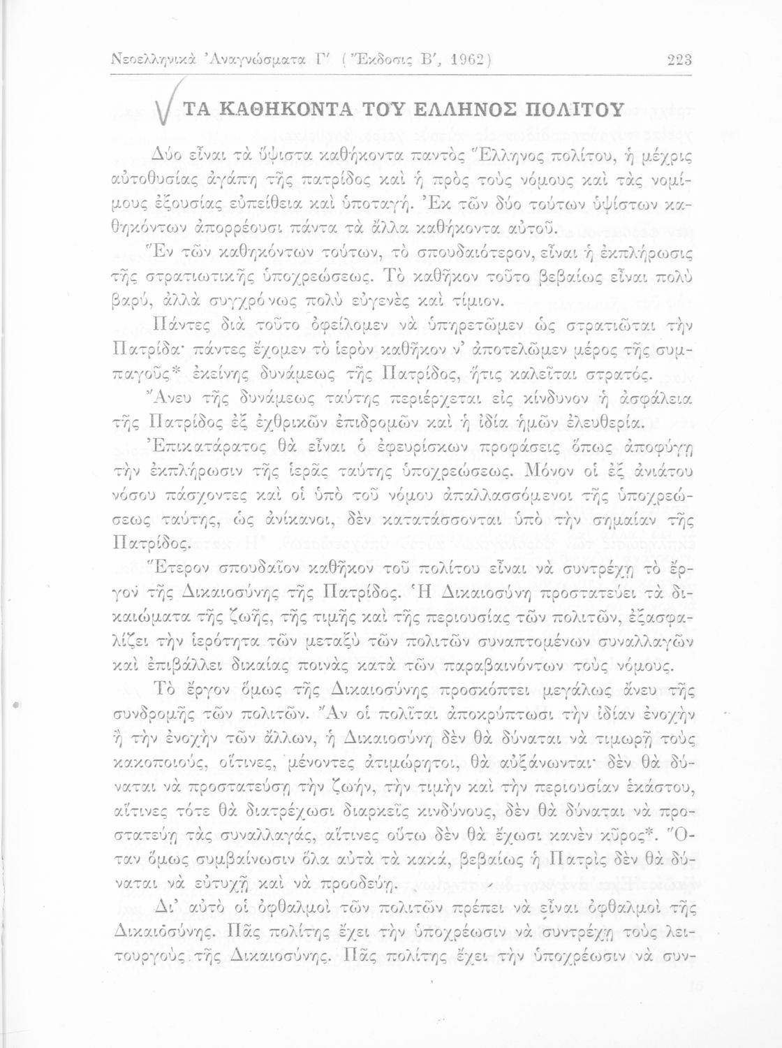 Σχολικό εγχειρίδιο Νέων Ελληνικών Δ΄ Γυμνασίου και Β΄ Αστικού Σχολείου που περιέχει πεζά και ποιήματα Ελλήνων συγγραφέων εμπνευσμένα από τη θρησκευτική και κοινωνική ζωή, την ελληνική μυθολογία, την αρχαία και