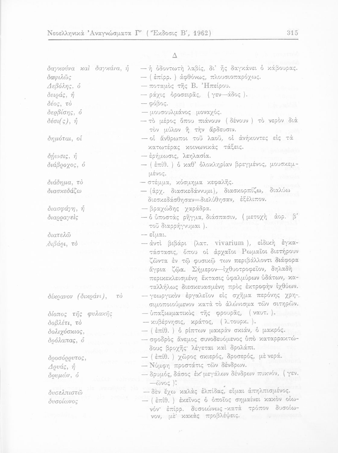 Σχολικό εγχειρίδιο Νέων Ελληνικών Δ΄ Γυμνασίου και Β΄ Αστικού Σχολείου που περιέχει πεζά και ποιήματα Ελλήνων συγγραφέων εμπνευσμένα από τη θρησκευτική και κοινωνική ζωή, την ελληνική μυθολογία, την αρχαία και