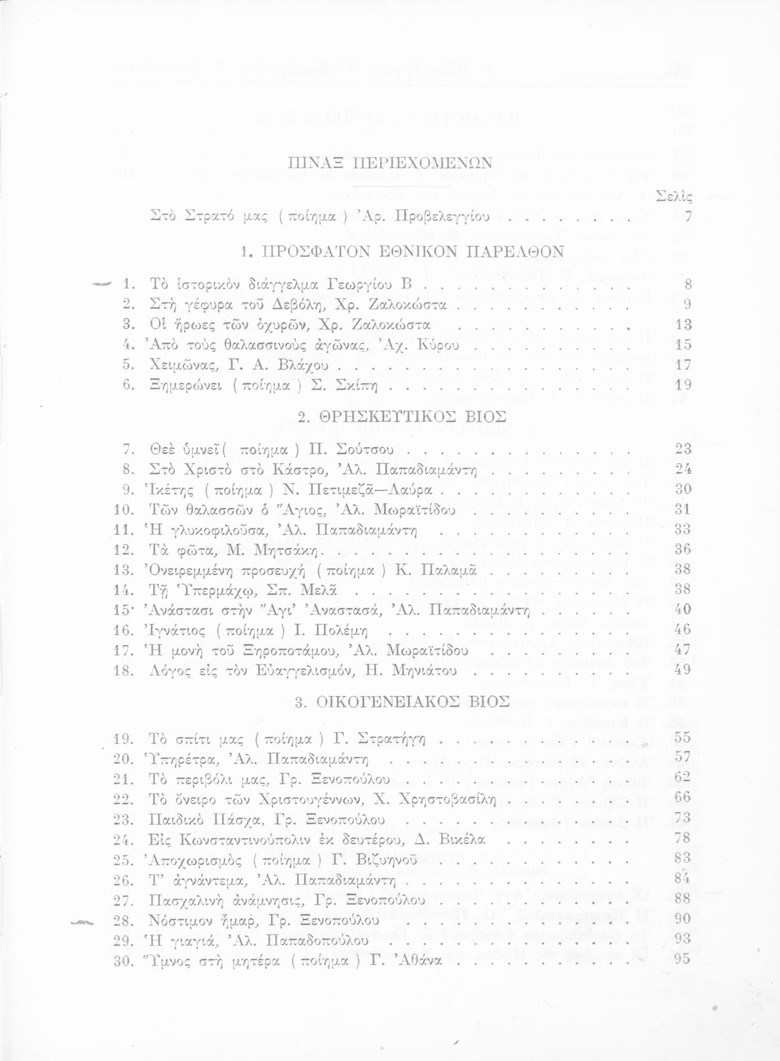 Σχολικό εγχειρίδιο Νέων Ελληνικών Δ΄ Γυμνασίου Θηλέων που περιλαμβάνει πεζά, ποιήματα και δημοτικά τραγούδια εμπνευσμένα από την σύγχρονη ελληνική ιστορία και την οικογενειακή και θρησκευτική ζωή. Περιέχει και