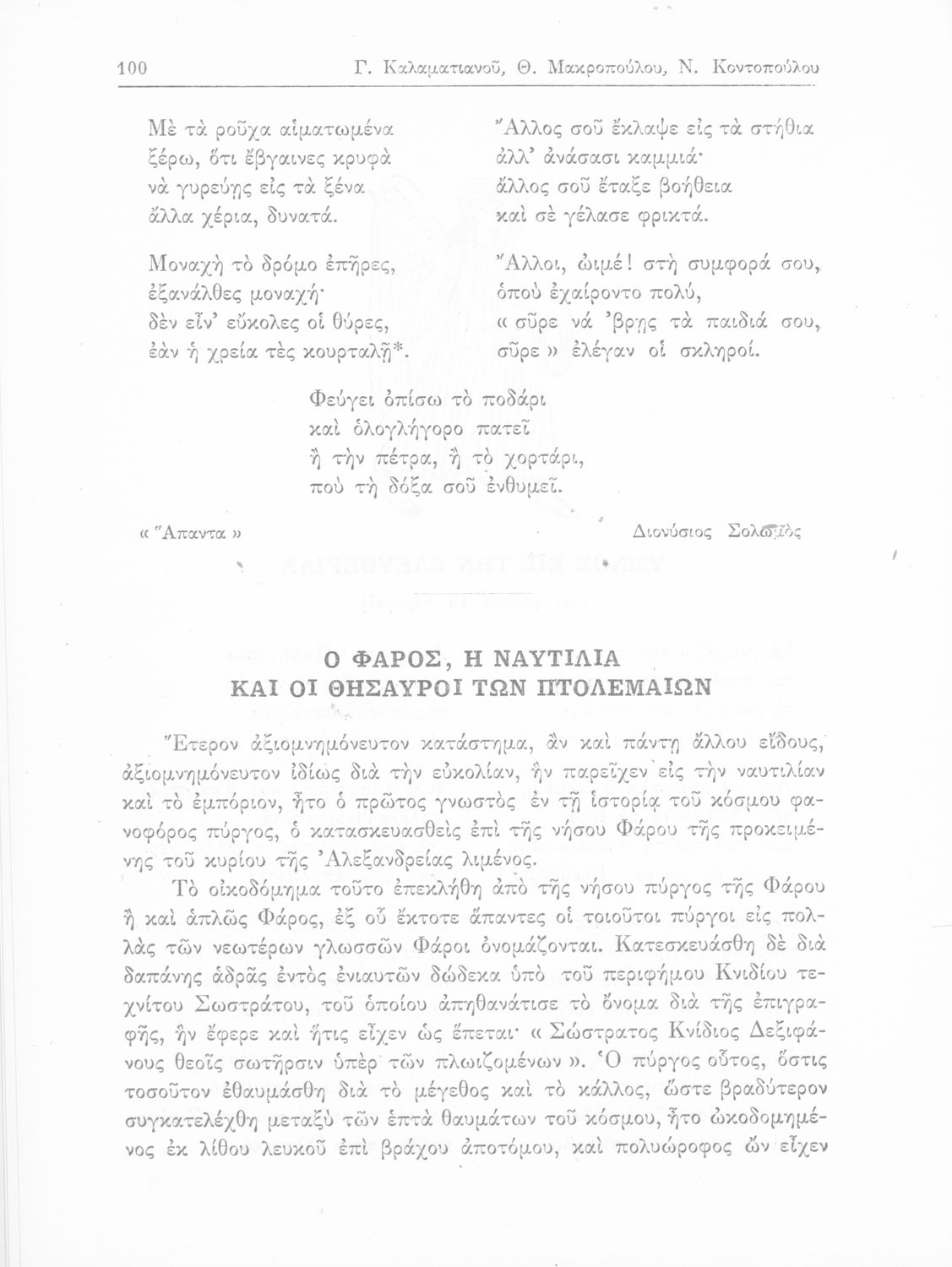 Συγγραφέας: Γ. Καλαματιανός, Θ. Μακρόπουλος, Ν. Κοντόπουλος
