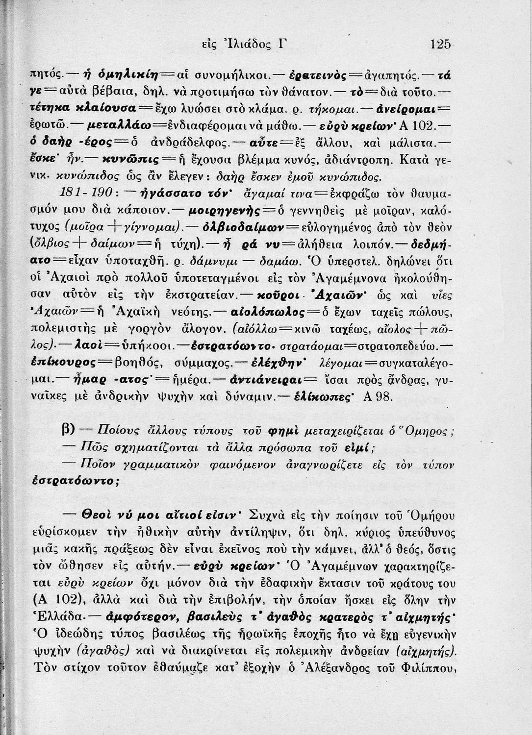 Σχολικό εγχειρίδιο Αρχαίων Ελληνικών ΣΤ΄ Γυμνασίου που περιέχει μετάφραση αποσπασμάτων από την Ιλιάδα, ερμηνευτικά, πραγματολογικά σχόλια και λεξιλογικές παρατηρήσεις. Ο συγγραφέας ήταν Καθηγητής στο Κολέγιο Αθηνών. Η συγγραφέας ήταν Καθηγήτρια Φιλόλογος