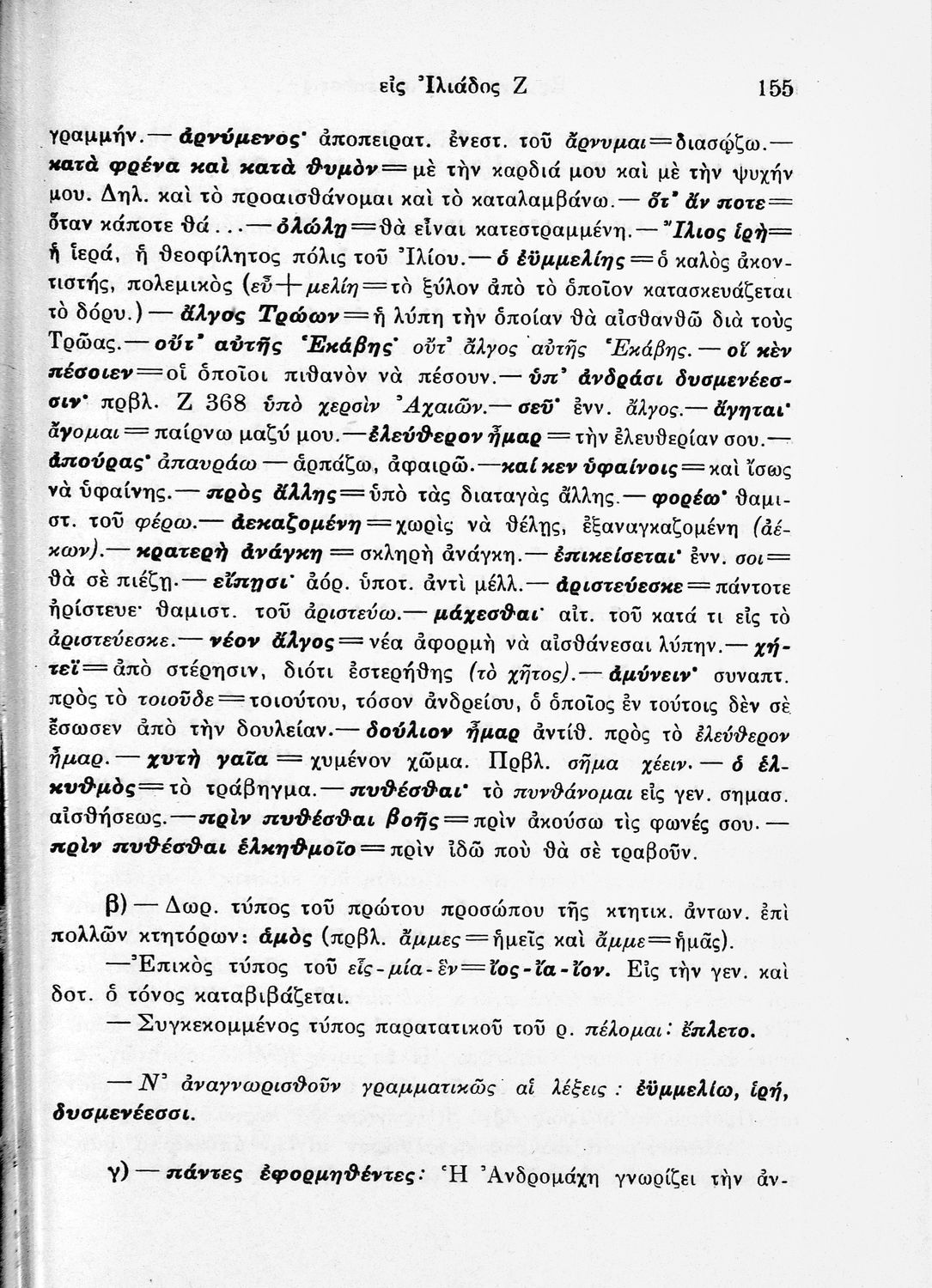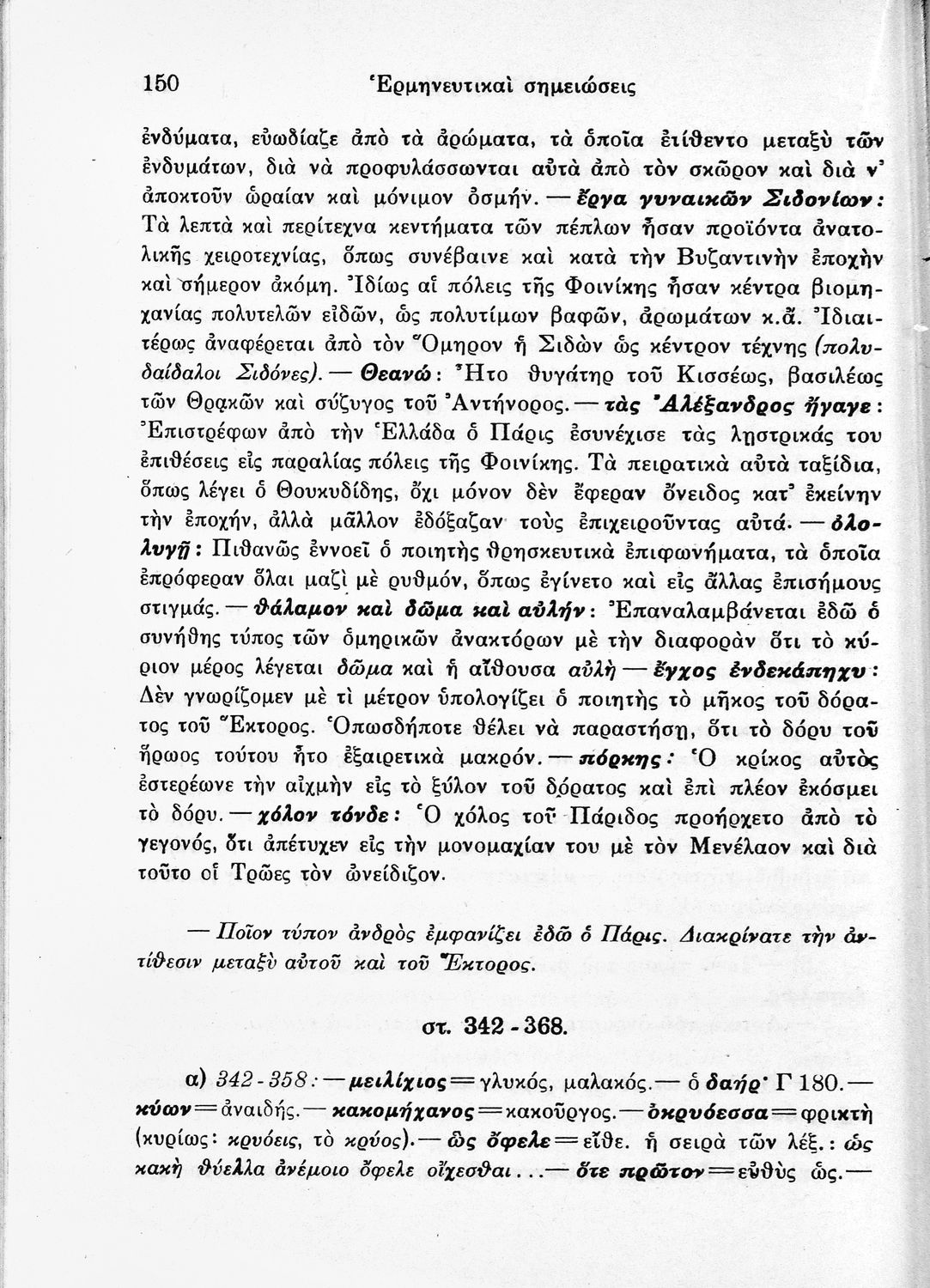 Σχολικό εγχειρίδιο Αρχαίων Ελληνικών ΣΤ΄ Γυμνασίου που περιέχει μετάφραση αποσπασμάτων από την Ιλιάδα, ερμηνευτικά, πραγματολογικά σχόλια και λεξιλογικές παρατηρήσεις. Ο συγγραφέας ήταν Καθηγητής στο Κολέγιο Αθηνών. Η συγγραφέας ήταν Καθηγήτρια Φιλόλογος