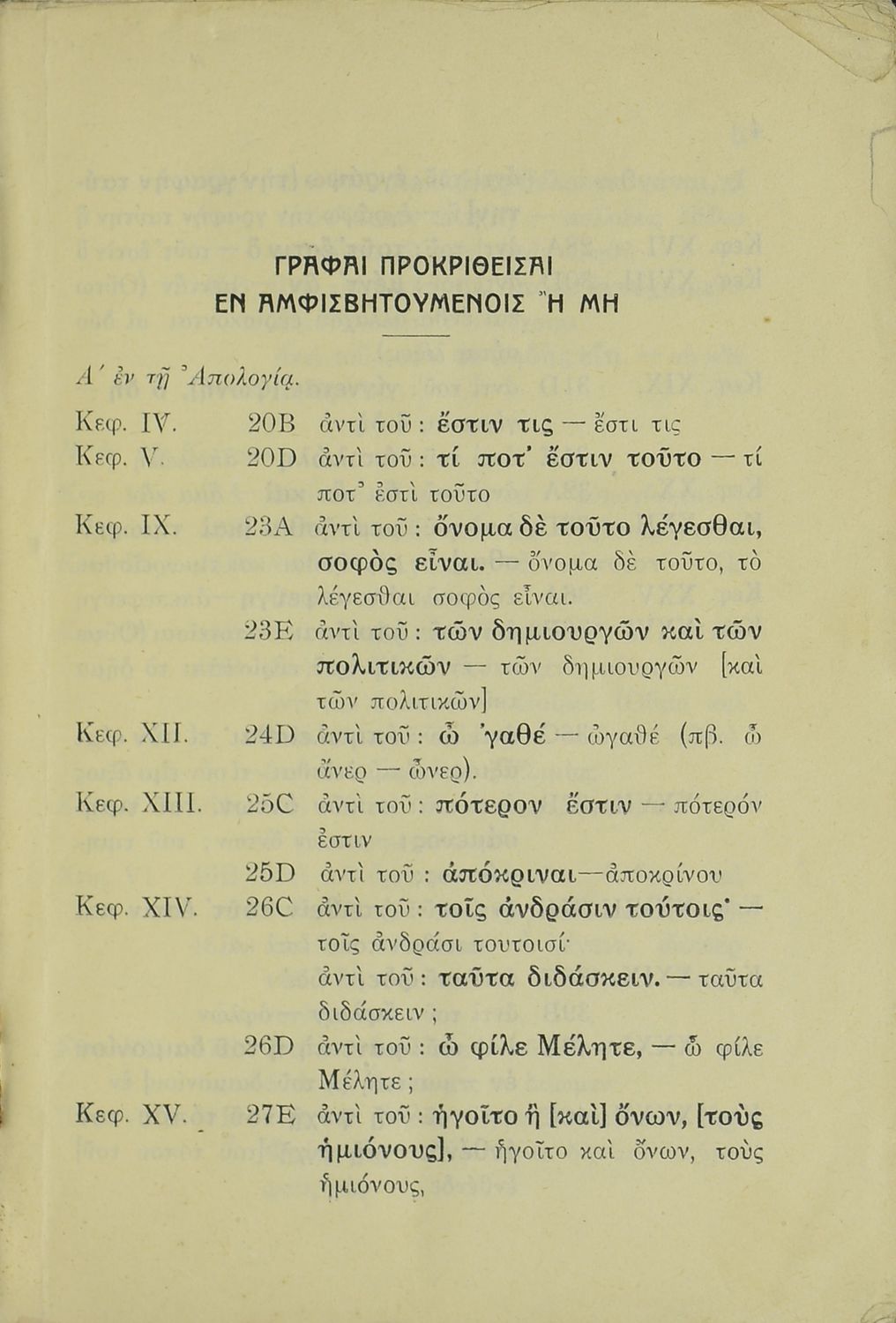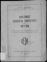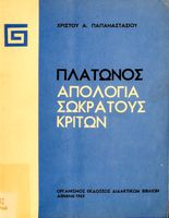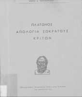 Σχολικό εγχειρίδιο Αρχαίων Ελληνικών που περιλαμβάνει έργο του Πλάτωνα και σημειώσεις του συγγραφέα. Τα κείμενα είναι μετάφραση από το πρωτότυπο. Στο βιβλίο υπάρχει το σύμβολο της επταετίας.