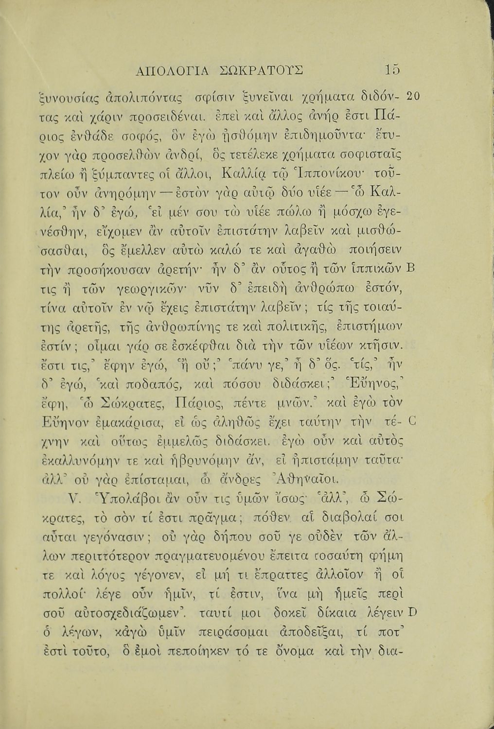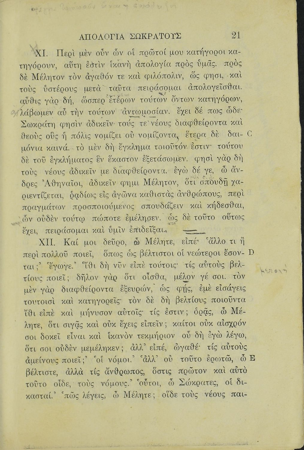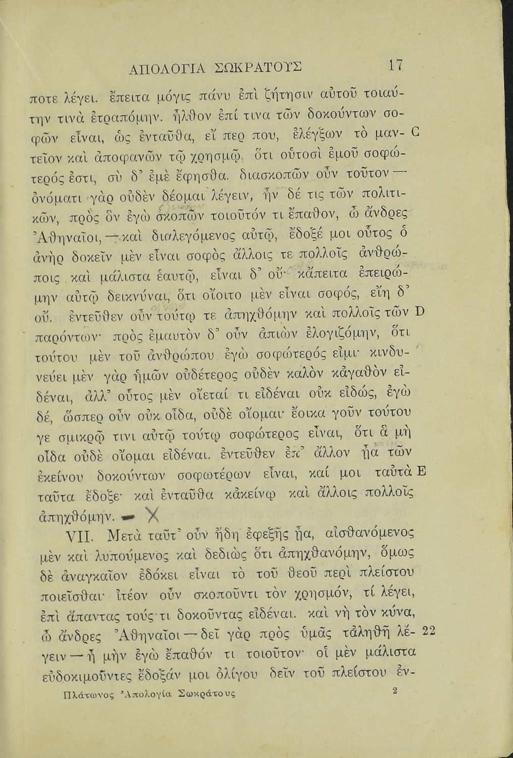 Παιδαγωγικό βοήθημα Αρχαίων Ελληνικών που περιέχει μετάφραση της Απολογίας του Σωκράτη του Πλάτωνα.
