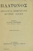 Σχολικό εγχειρίδιο Αρχαίων Ελληνικών για τις Ε΄ Εξαταξίου Γυμνασίου παλαιού τύπου και ΣΤ΄ Εξαταξίου Γυμνασίου νέου τύπου που περιλαμβάνει εισαγωγικά στοιχεία για τη ζωή και το έργο του Πλάτωνα και μικρό ...