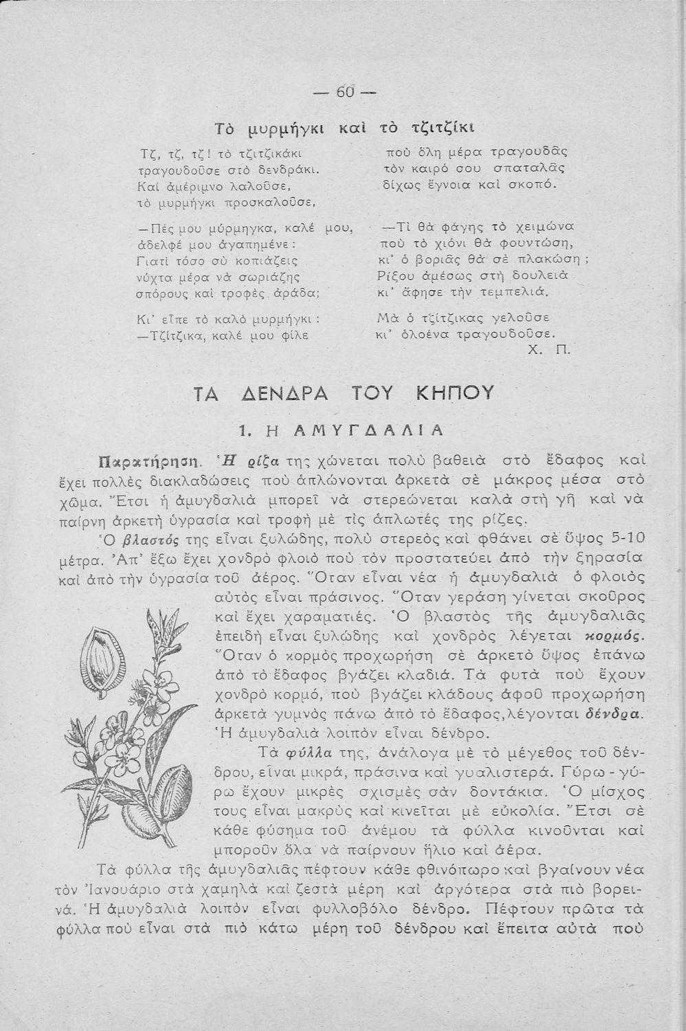 Το σύγγραμμα ήταν μαθητικό βοήθημα για το μάθημα της Φυσικής Ιστορίας στο Δημοτικό. Περιέχει πληροφορίες για τη φυτολογία και τη ζωολογία. Το βιβλίο έχει εικόνες, οι οποίες διευκολύνουν τη διδασκαλία των ...