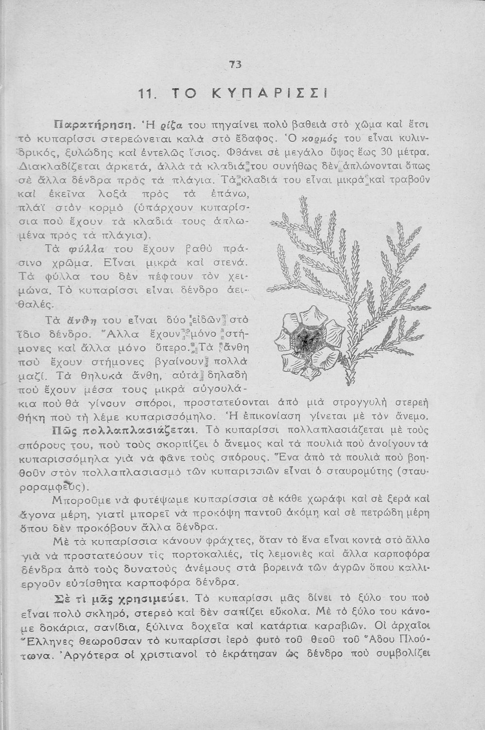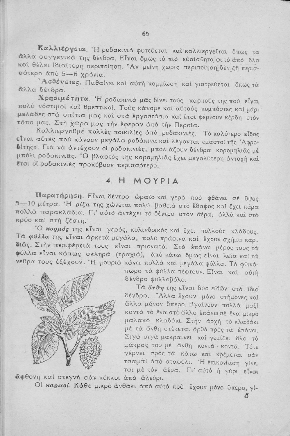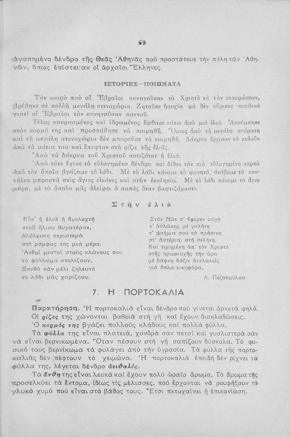 Σχολικό εγχειρίδιο Φυσικής Ιστορίας Γ΄ Δημοτικού που παρουσιάζει τα διαφορετικά μέρη των φυτών και τις ιδιότητές τους και περιγράφει τον τρόπο γονιμοποίησης και προφύλαξής τους από πιθανές απειλές. Το δεύτερο μέρος του βιβλίο αφορά τη ζωολογία και κάνει μια κατηγοριοποίηση των ζώων με βάση το περιβάλλον στο οποίο διαβιούν.