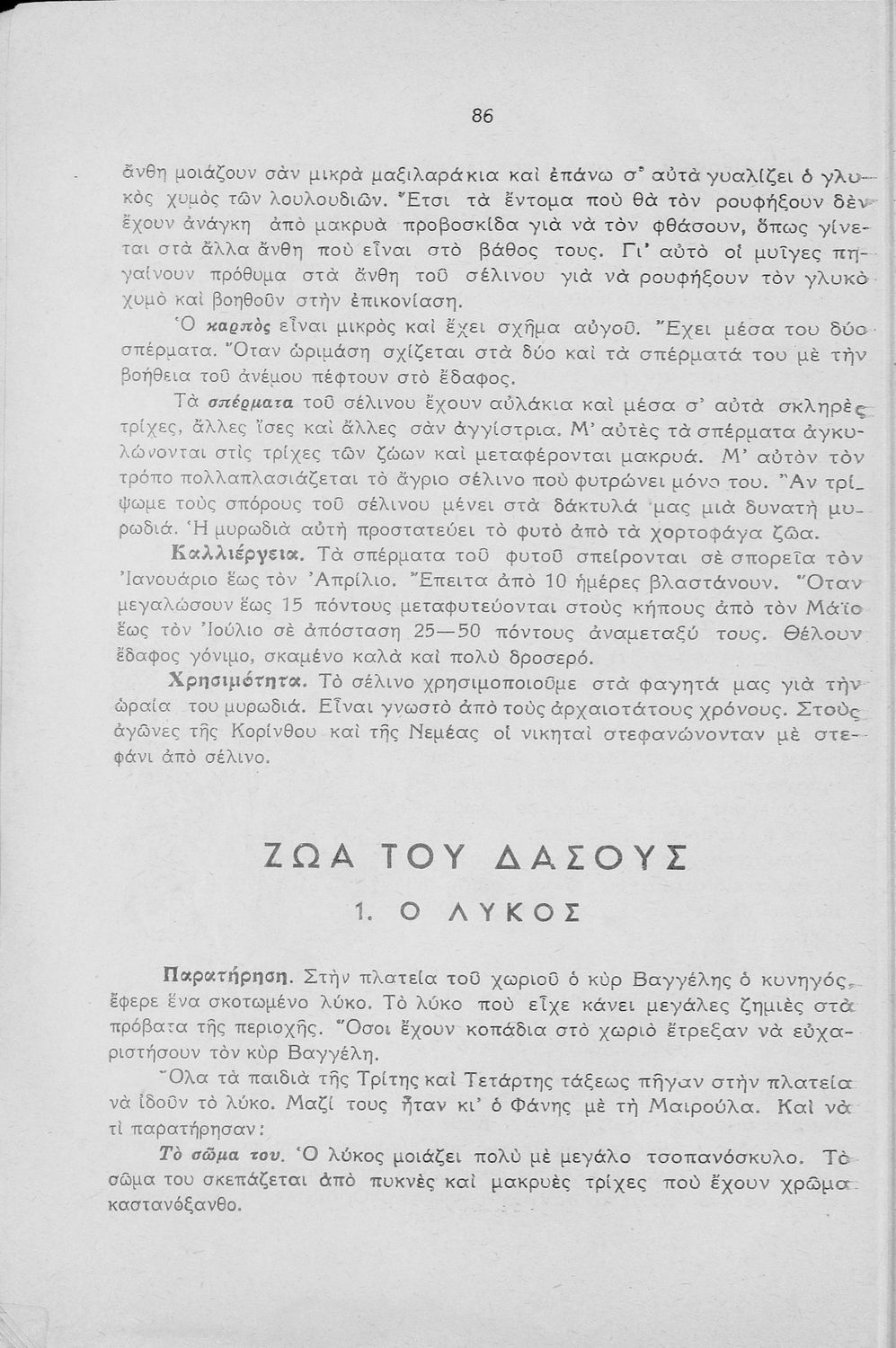 Σχολικό εγχειρίδιο Φυσικής Ιστορίας Γ΄ Δημοτικού που παρουσιάζει τα διαφορετικά μέρη των φυτών και τις ιδιότητές τους και περιγράφει τον τρόπο γονιμοποίησης και προφύλαξής τους από πιθανές απειλές. Το δεύτερο μέρος του βιβλίο αφορά τη ζωολογία και κάνει μια κατηγοριοποίηση των ζώων με βάση το περιβάλλον στο οποίο διαβιούν.