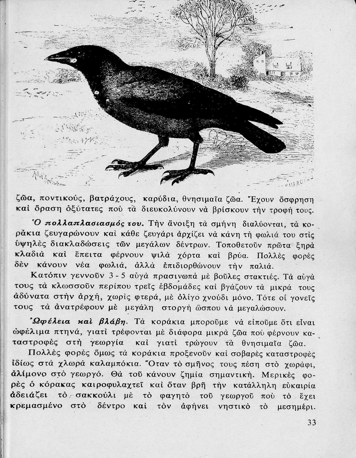 Σχολικό εγχειρίδιο Φυτολογίας και Ζωολογίας της Γ ΄ Δημοτικού το οποίο παρουσιάζει τα είδη των φυτών και ζώων του σπιτιού, του κήπου και του λιβαδιού.