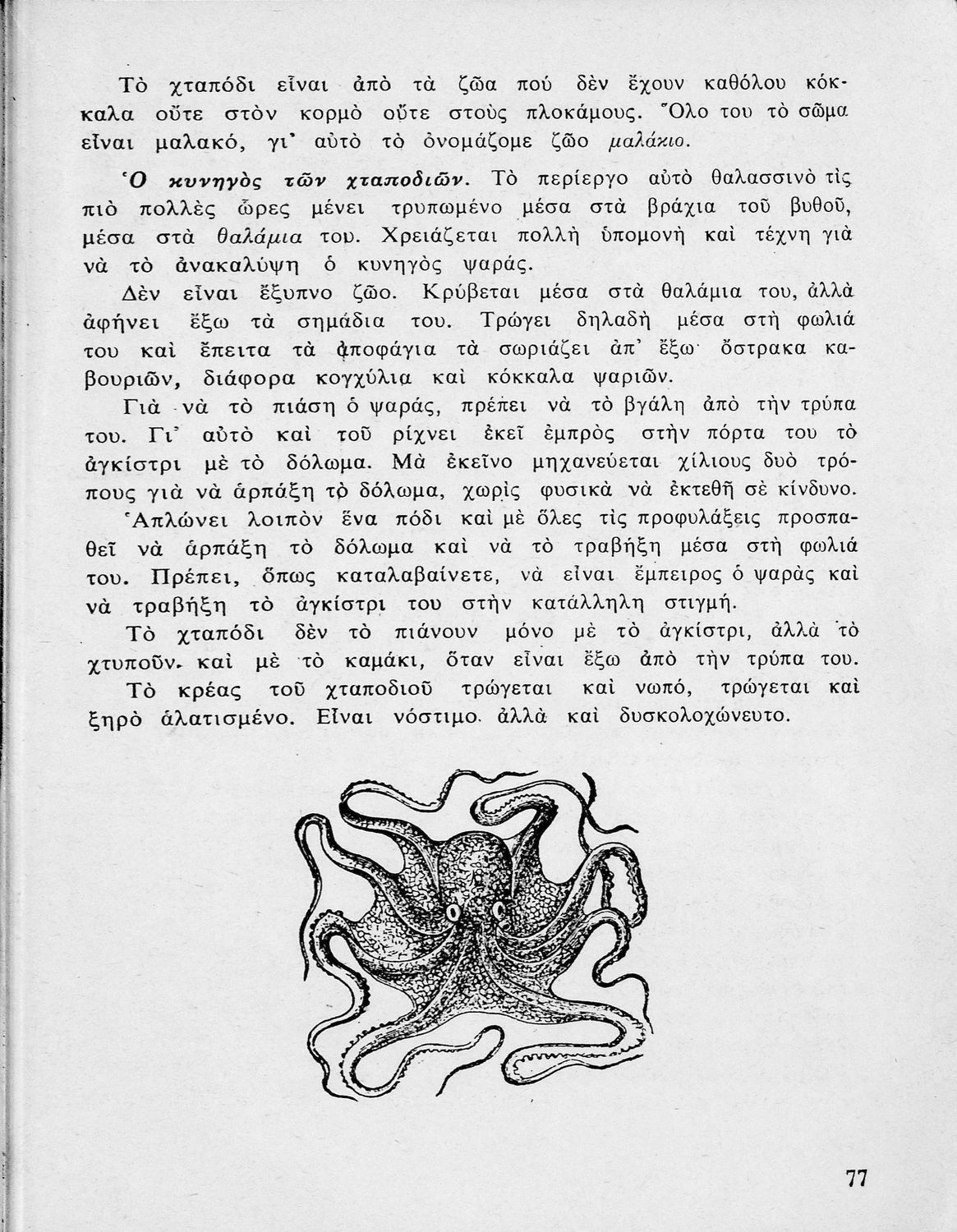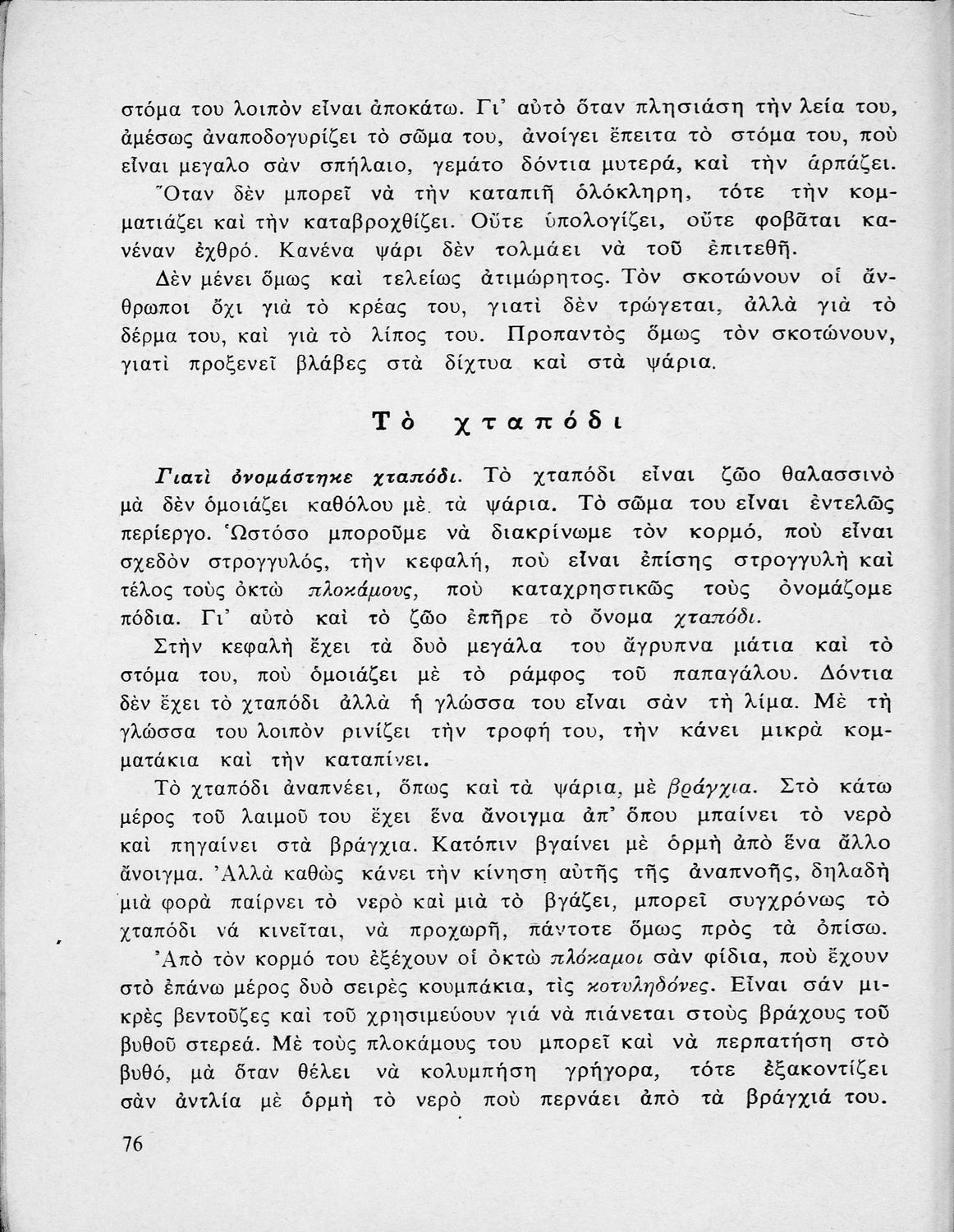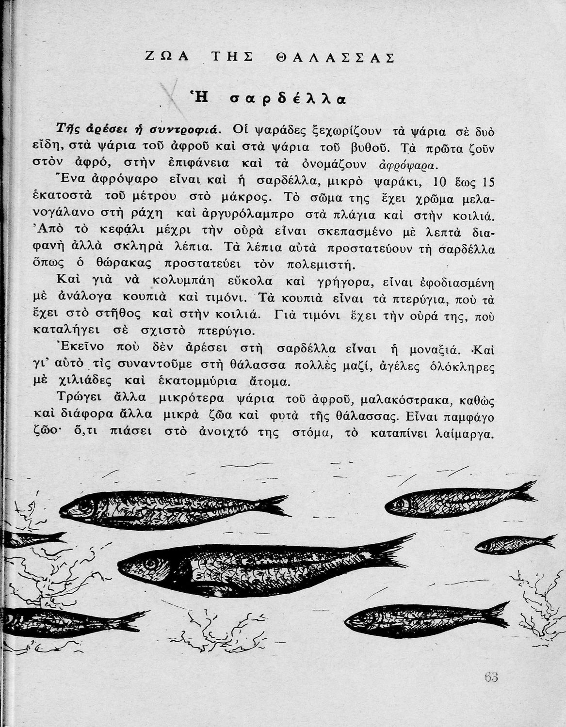 Σχολικό εγχειρίδιο Φυσικής Ιστορίας της Α' Τάξης των Γυμνασίων και Ημιγυμνασίων. Το βιβλίο χωρίζεται σε τρία κεφάλαια: ζωολογία, ορυκτολογία, φυτολογία.