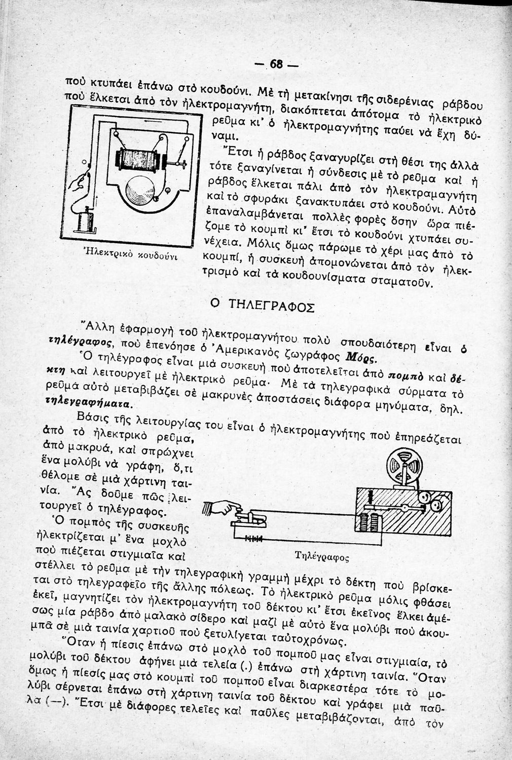 Σχολικό εγχειρίδιο Φυσικής Πειραματικής ΣΤ΄ Δημοτικού που εστιάζει στα φυσικά φαινόμενα (ακουστική, οπτική, μαγνητισμός και ηλεκτρισμός) και στα χημικά φαινόμενα (είδη του άνθρακα, παραγωγή πίσσας, ναφθαλίνης,