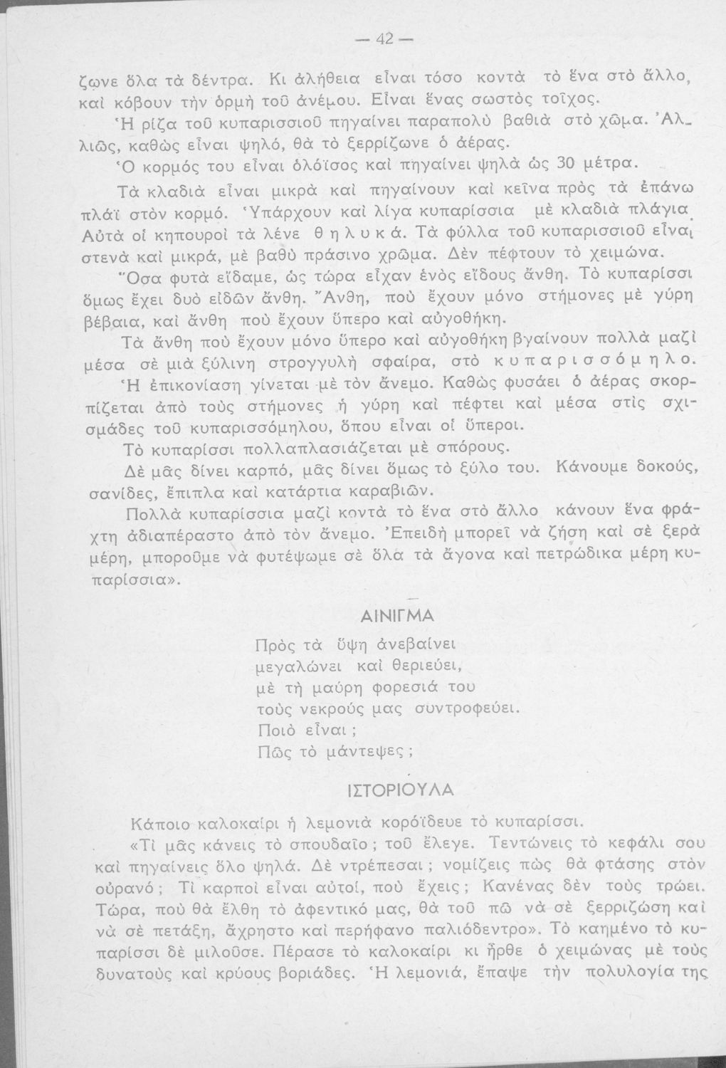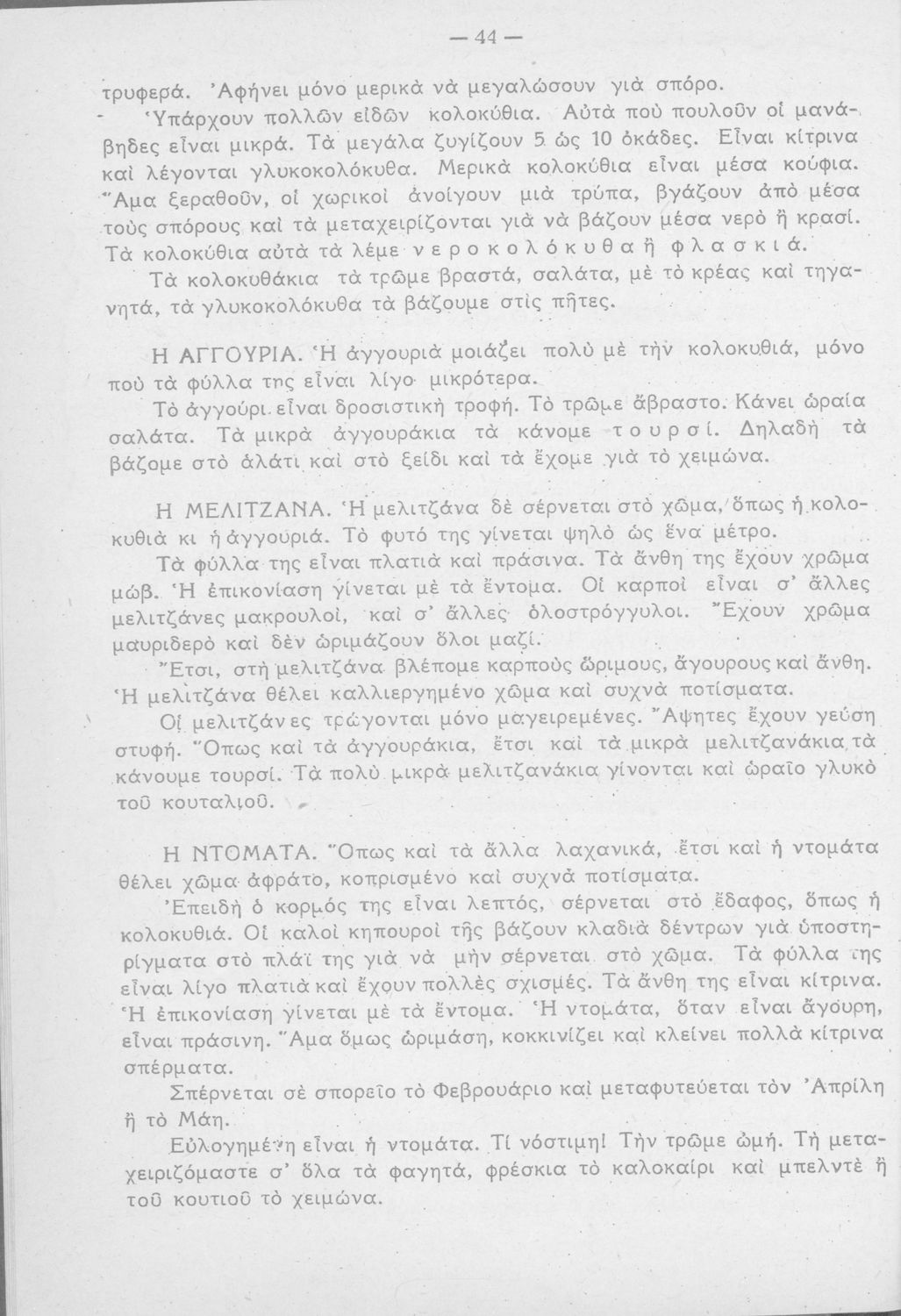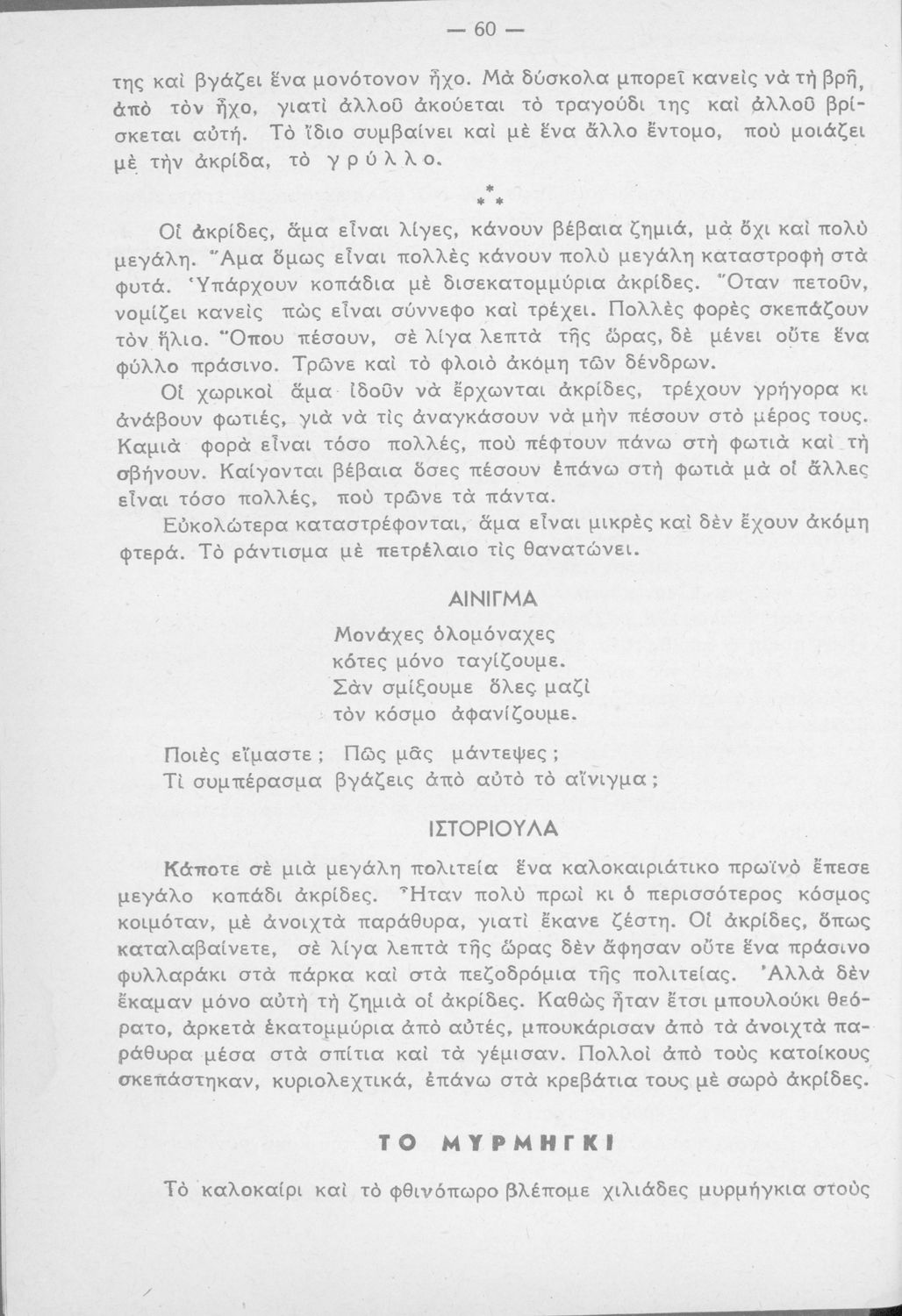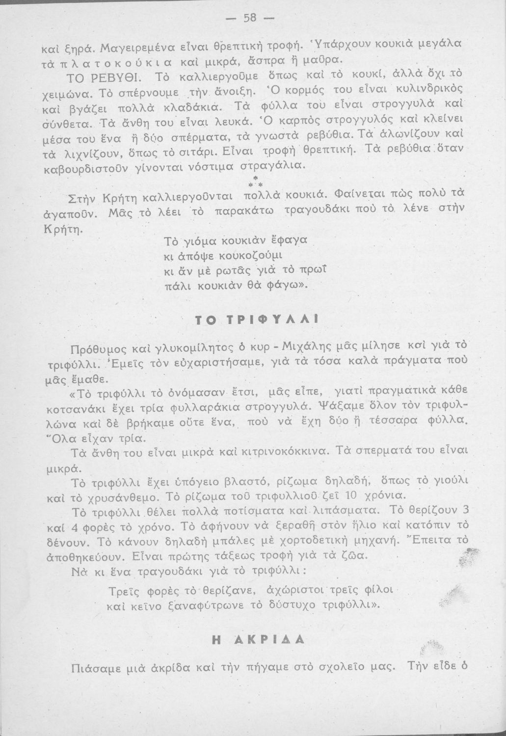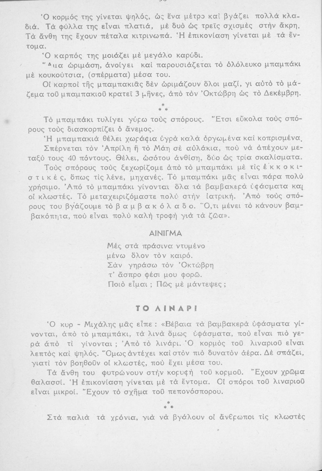 Πρόκειται για βιβλίο Φυτολογίας και Ζωολογίας για την Γ΄ Δημοτικού. Περιέχει στοιχεία για τα μέρη του φυτού, για φυτά και ζώα που υπάρχουν στον κήπο, τον ανθόκηπο και τον λαχανόκηπο.