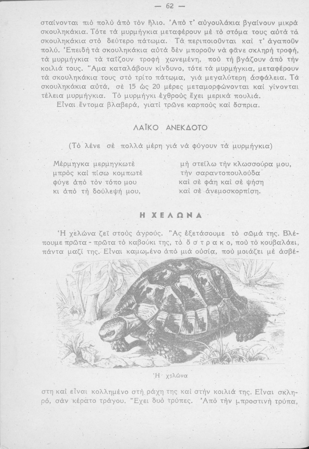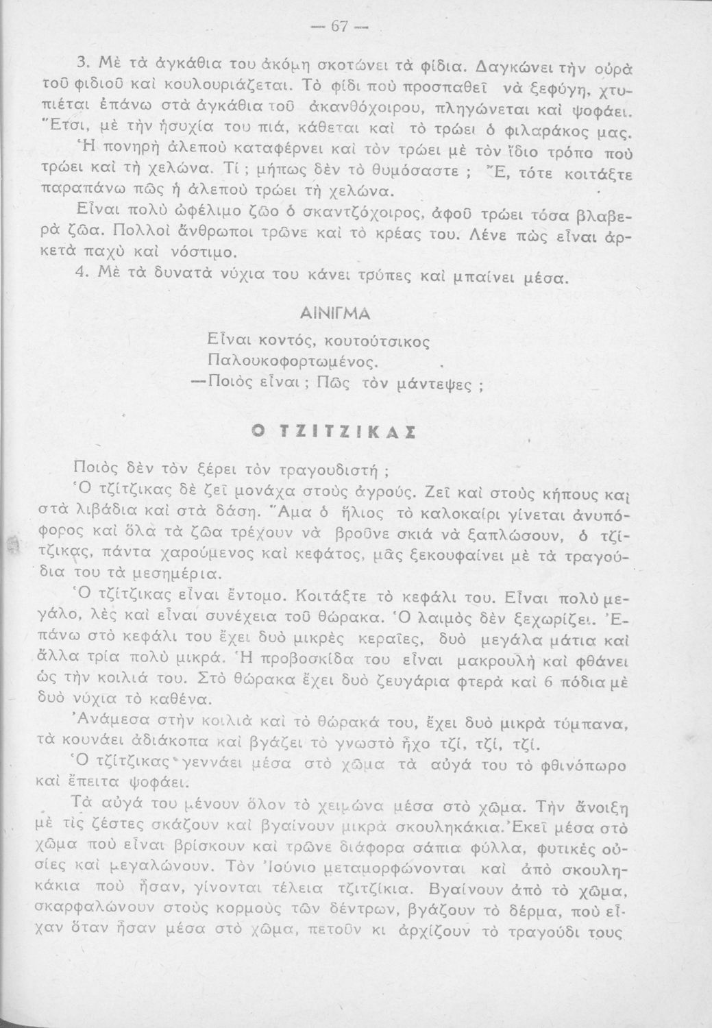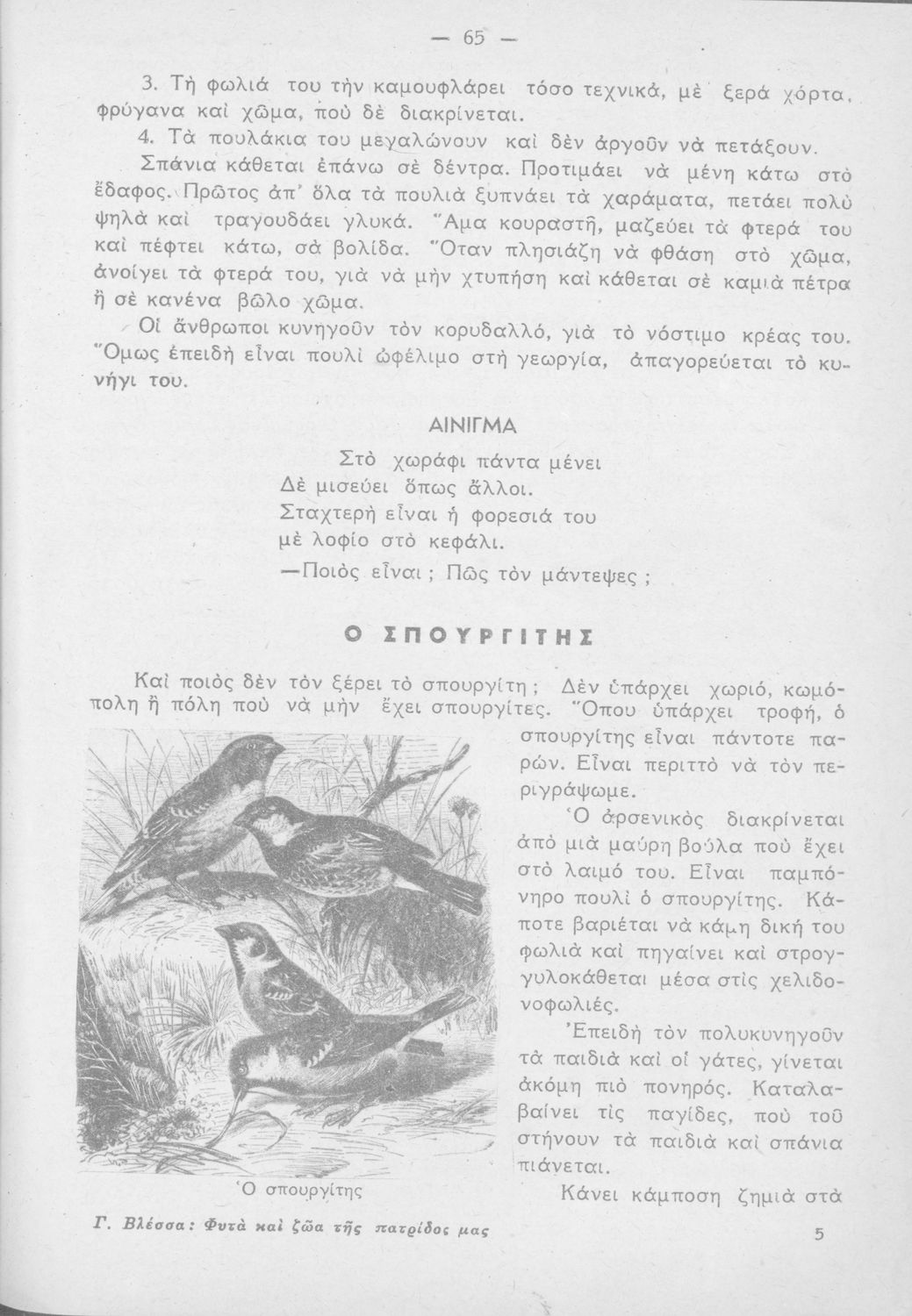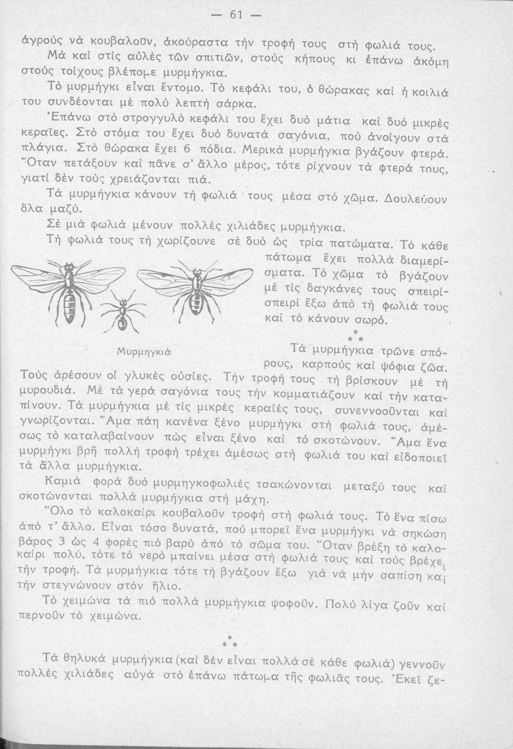 Πρόκειται για βιβλίο Φυτολογίας και Ζωολογίας για την Γ΄ Δημοτικού. Περιέχει στοιχεία για τα μέρη του φυτού, για φυτά και ζώα που υπάρχουν στον κήπο, τον ανθόκηπο και τον λαχανόκηπο.