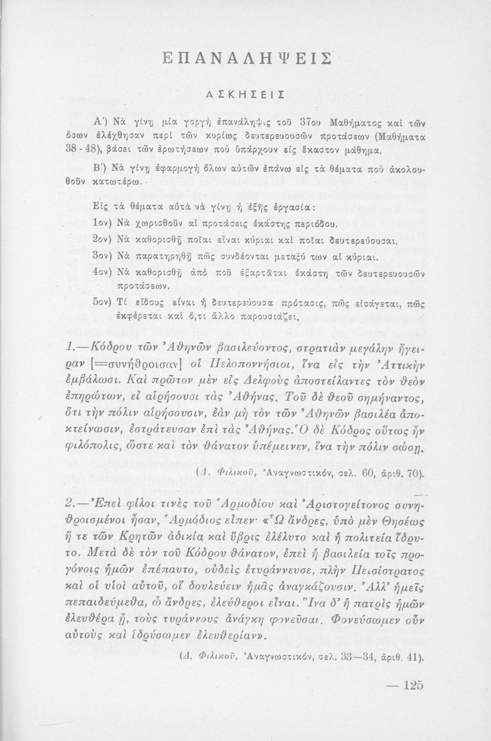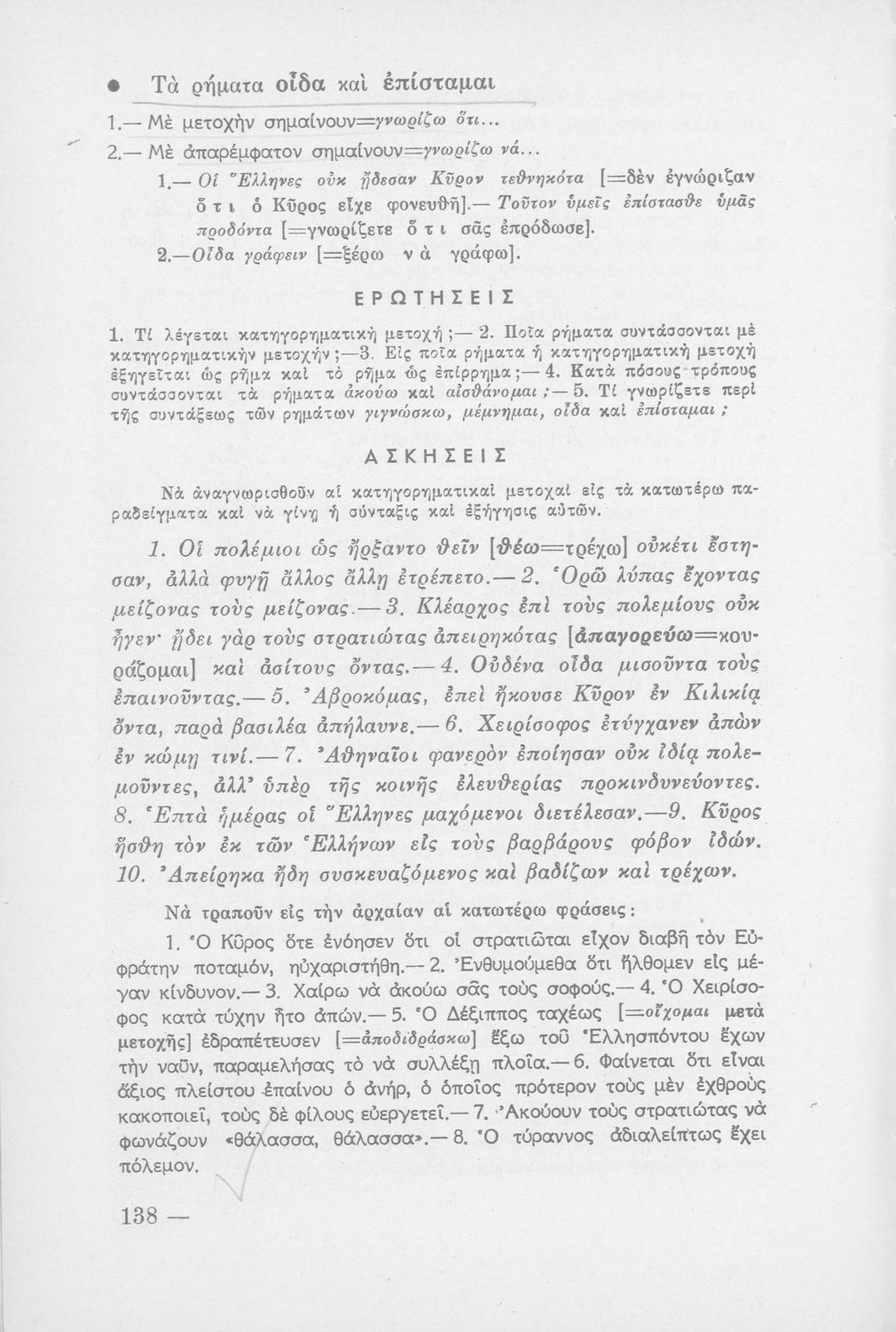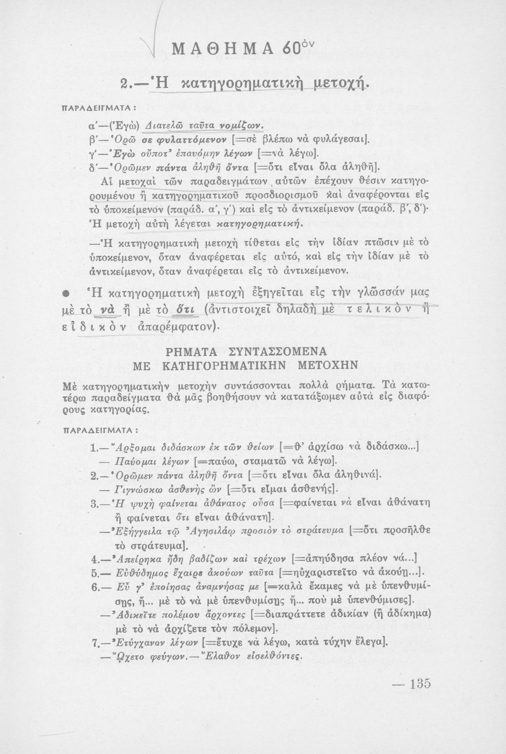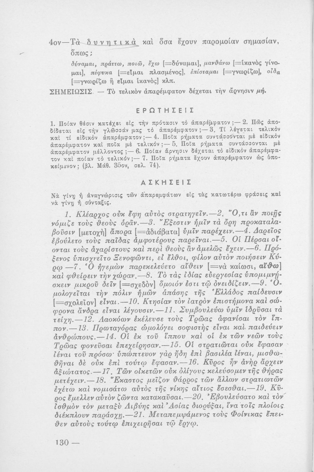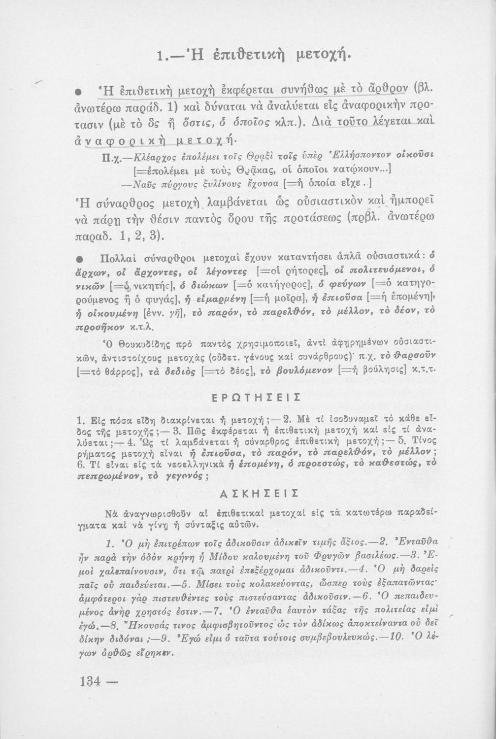 Μαθητικό βοήθημα Αρχαίων Ελληνικών Γυμνασίου που εξετάζει τα μέρη του λόγου και την σύνταξή τους.