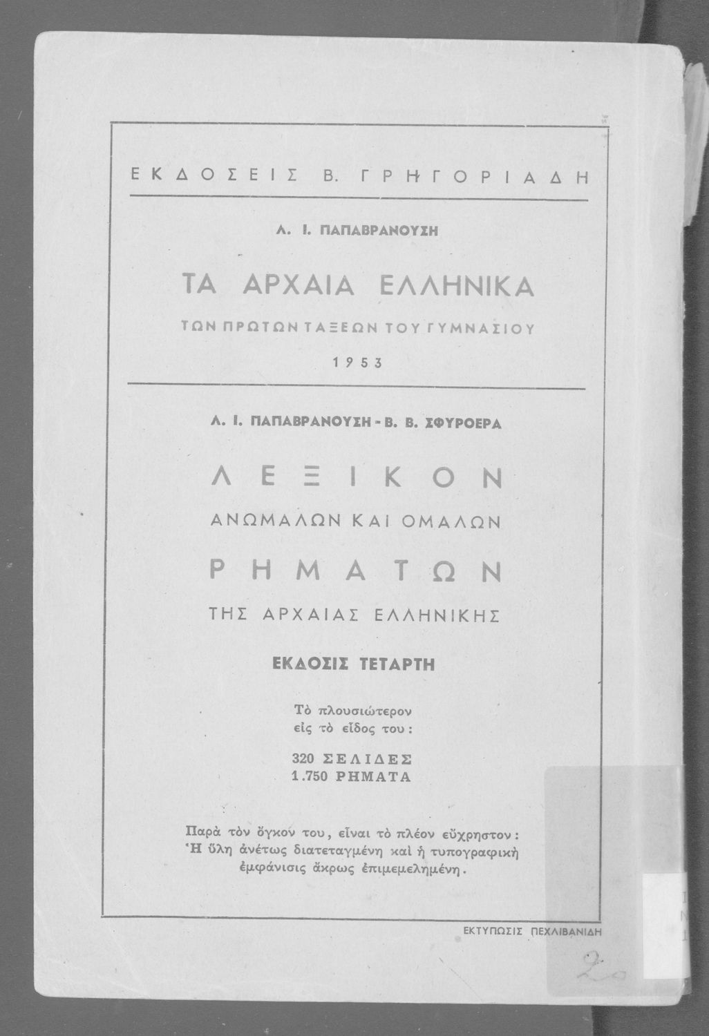Εκδότης: Βιβλιοπωλείο Β. Ν. Γρηγοριάδη