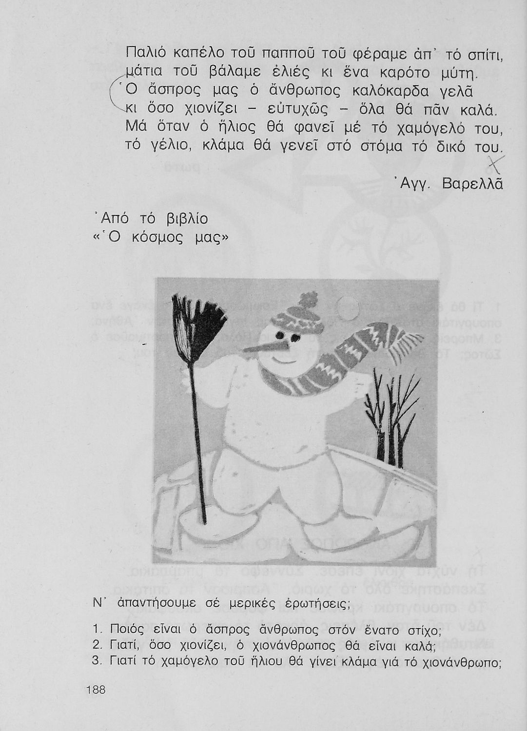 Αναγνωστικό Γ' Δημοτικού που είναι χωρισμένο σύμφωνα με τις εποχές του χρόνου και περιλαμβάνει ποιήματα και πεζά εμπνευσμένα από τη ζωή στην ύπαιθρο, την εθνική, οικογενειακή και κοινωνική ζωή, τη θρησκευτική ...