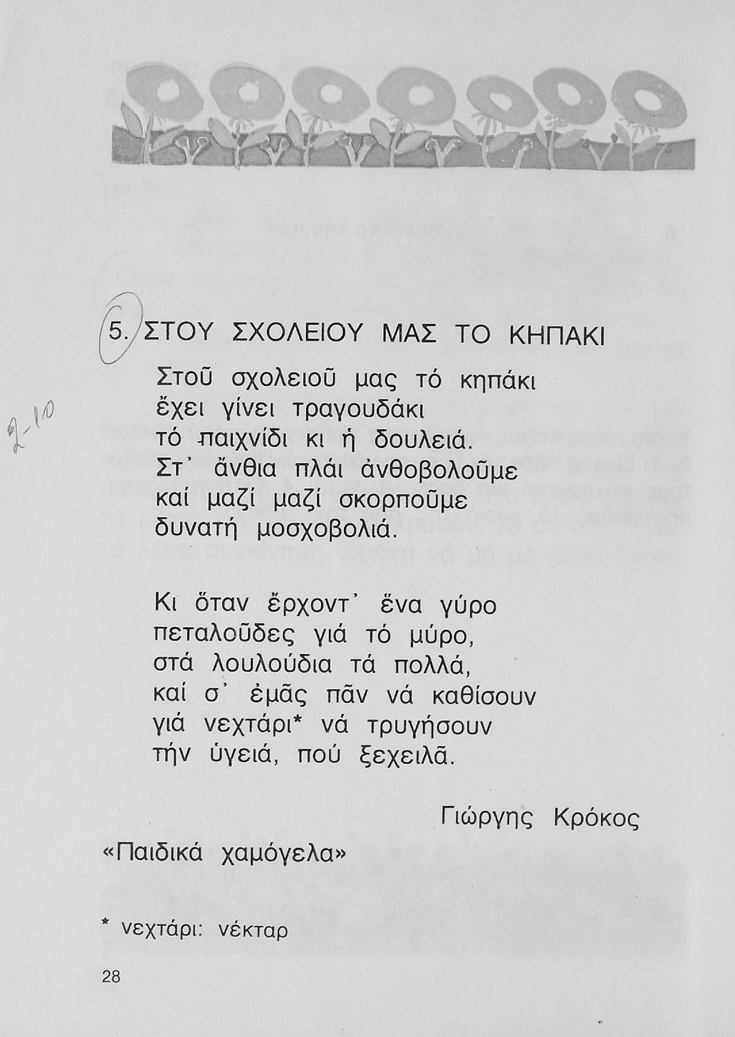 Αναγνωστικό Γ' Δημοτικού που είναι χωρισμένο σύμφωνα με τις εποχές του χρόνου και περιλαμβάνει ποιήματα και πεζά εμπνευσμένα από τη ζωή στην ύπαιθρο, την εθνική, οικογενειακή και κοινωνική ζωή, τη θρησκευτική ...