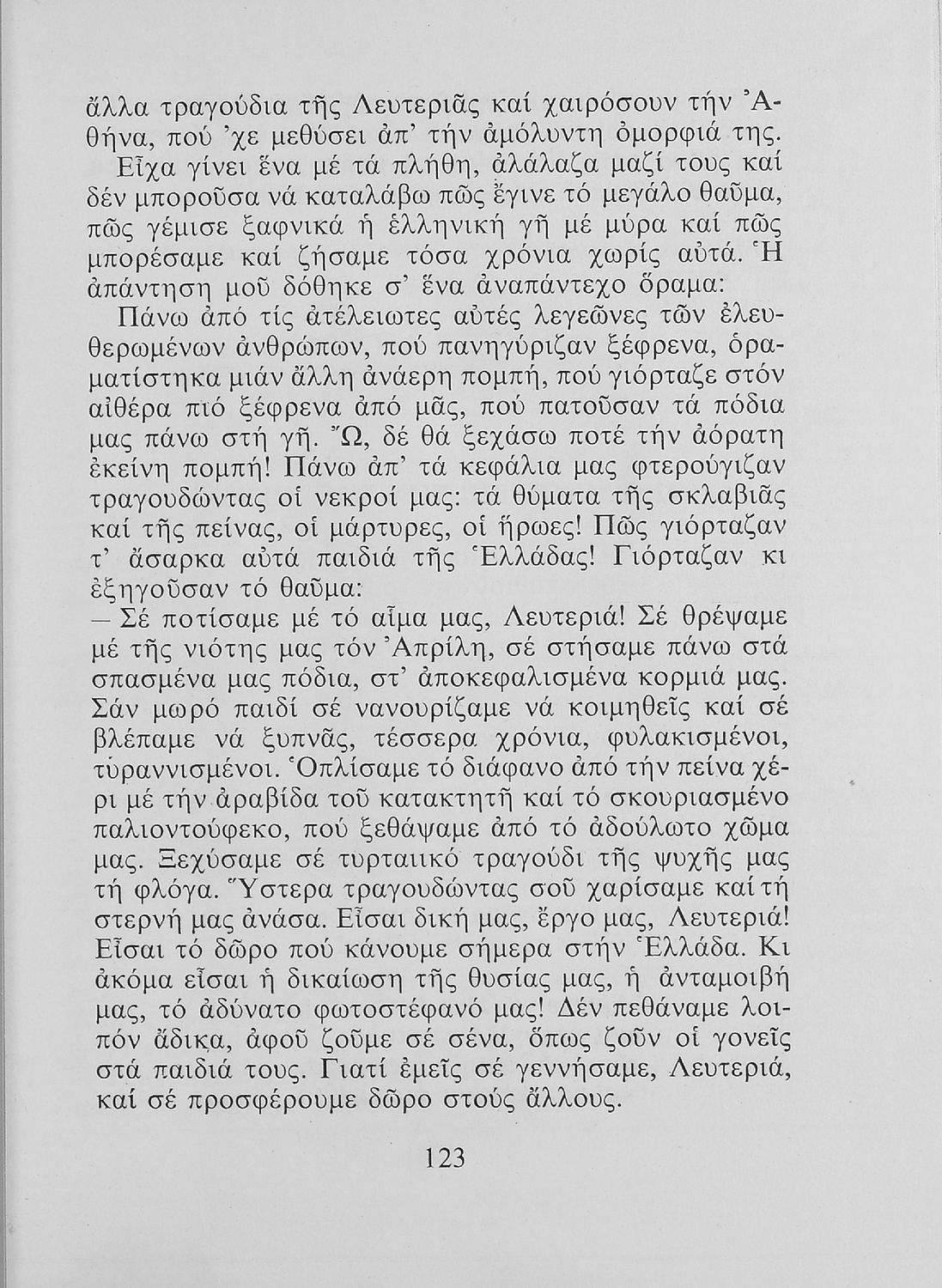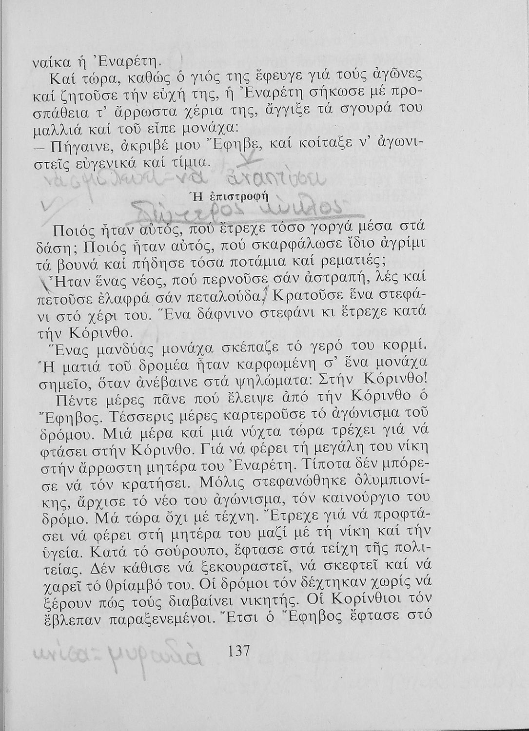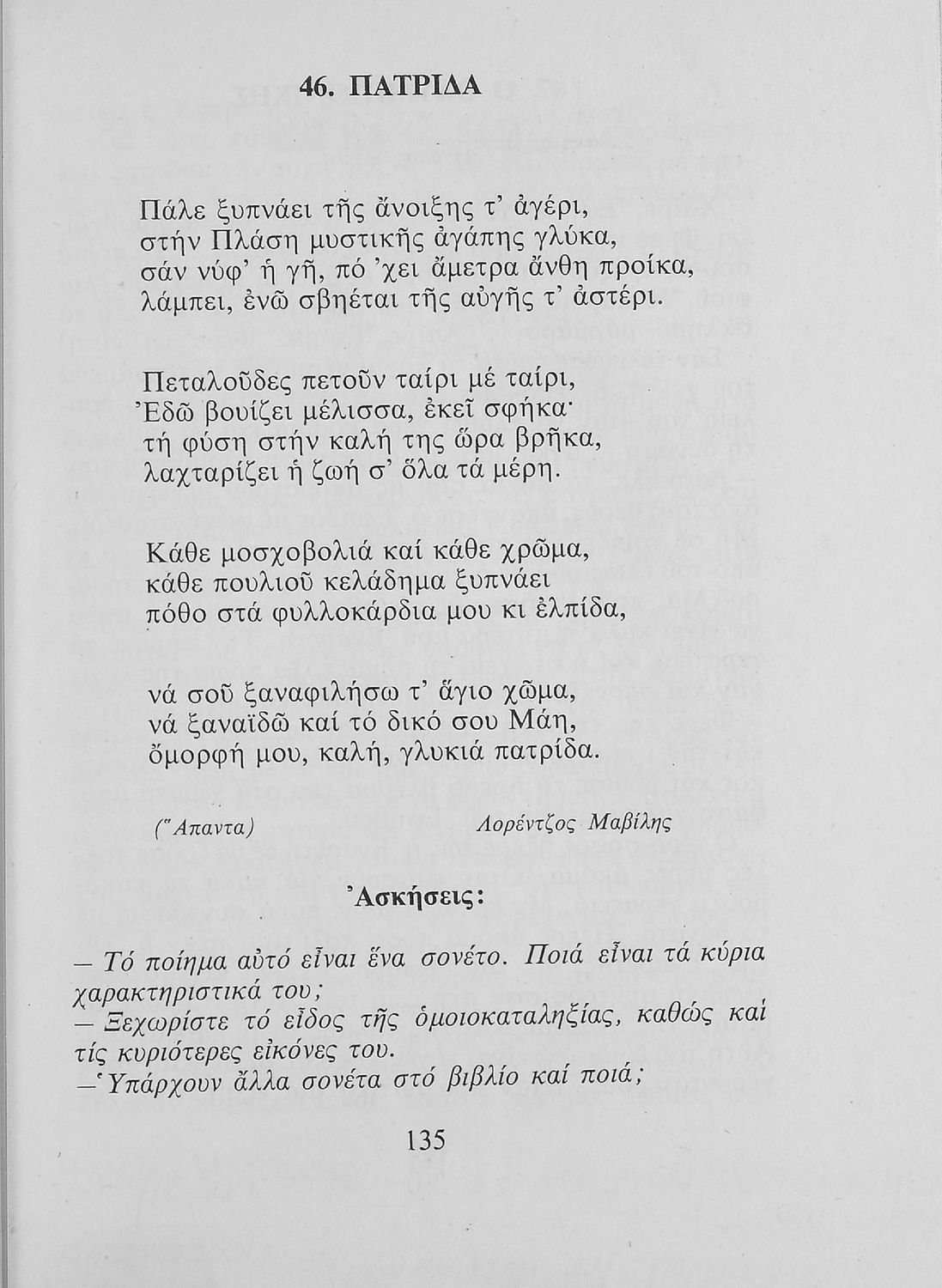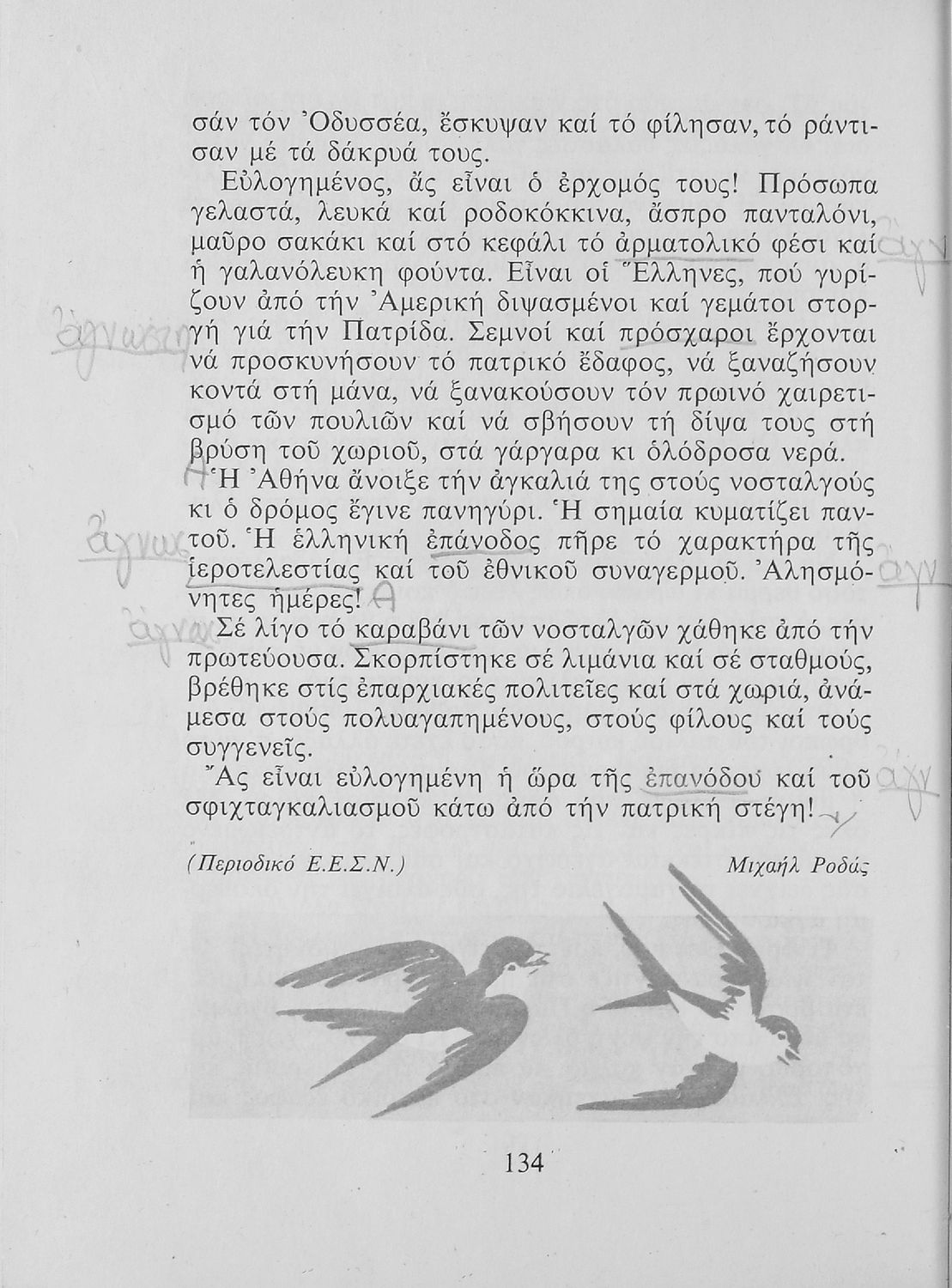 Αναγνωστικό Ε΄ Δημοτικού που περιέχει πεζά και ποιήματα εμπνευσμένα από τη θρησκευτική, εθνική, κοινωνική ζωή καθώς και από τις ασχολίες των Ελλήνων, την αρχαία και σύγχρονη ελληνική ιστορία και τον πολιτισμό.