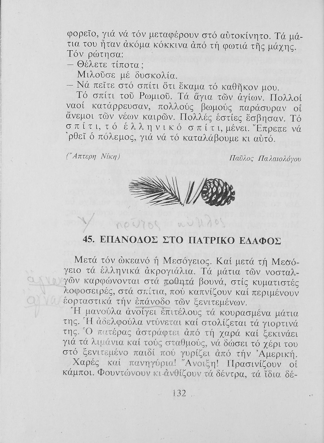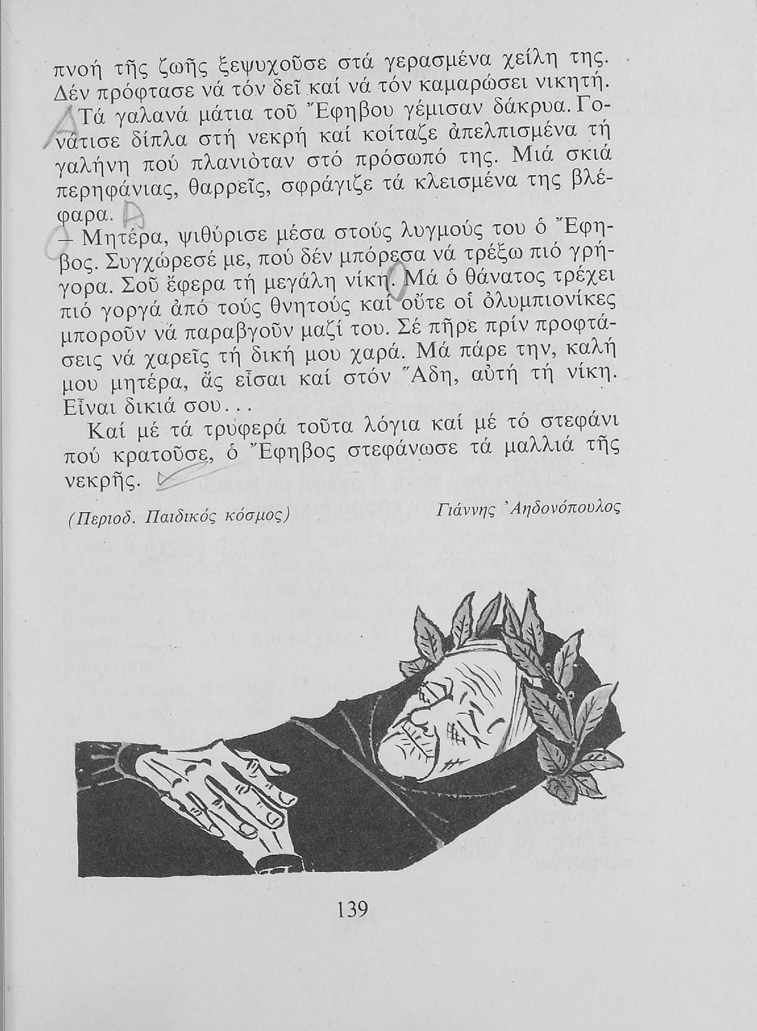 Αναγνωστικό Ε΄ Δημοτικού που περιέχει πεζά και ποιήματα εμπνευσμένα από τη θρησκευτική, εθνική, κοινωνική ζωή καθώς και από τις ασχολίες των Ελλήνων, την αρχαία και σύγχρονη ελληνική ιστορία και τον πολιτισμό. Περιλαμβάνει βιογραφίες των συγγραφέων.