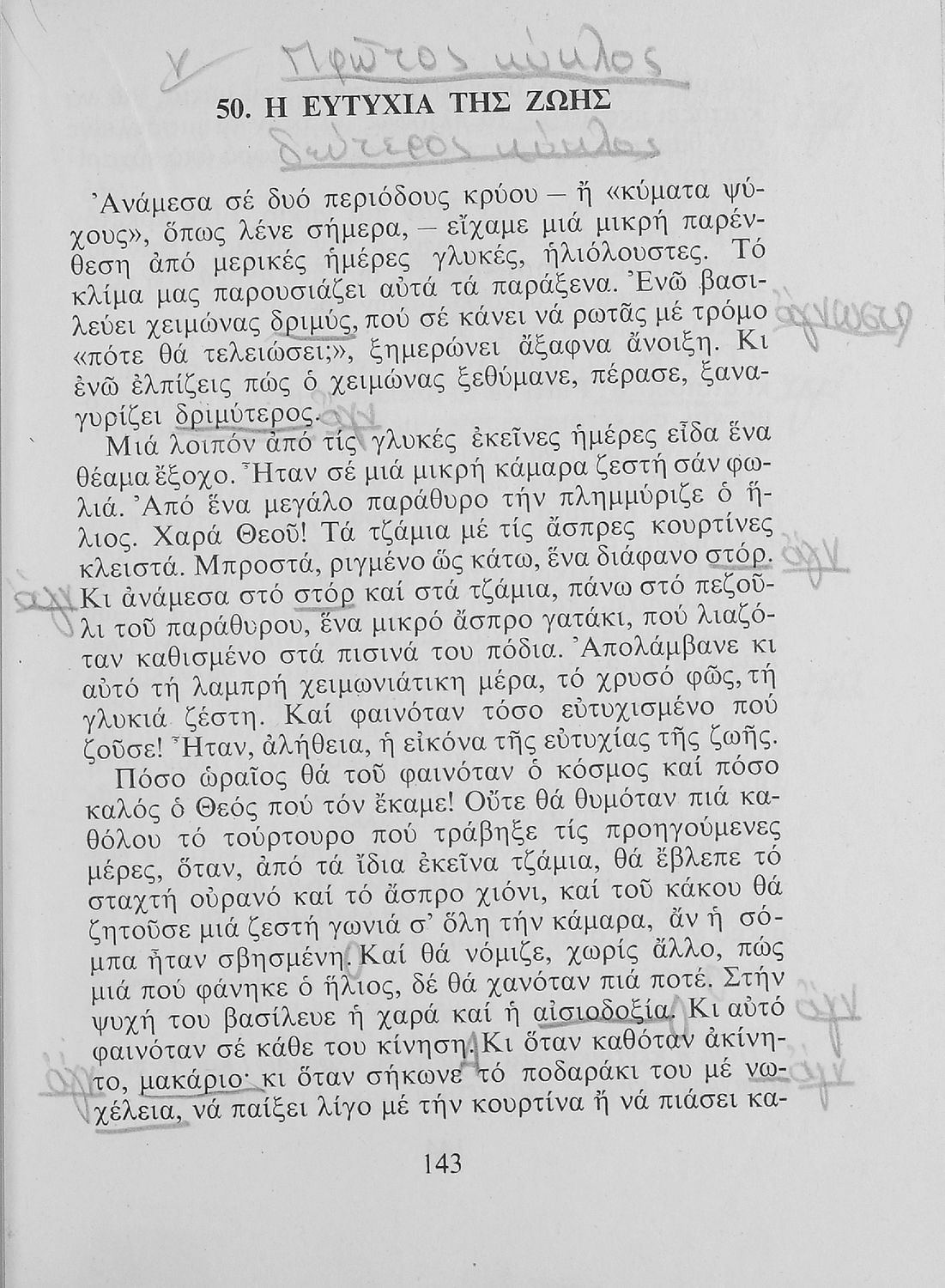 Αναγνωστικό Ε΄ Δημοτικού που περιέχει πεζά και ποιήματα εμπνευσμένα από τη θρησκευτική, εθνική, κοινωνική ζωή καθώς και από τις ασχολίες των Ελλήνων, την αρχαία και σύγχρονη ελληνική ιστορία και τον πολιτισμό.