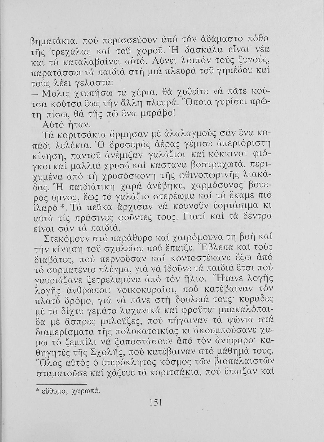 Αναγνωστικό Ε΄ Δημοτικού που περιέχει πεζά και ποιήματα εμπνευσμένα από τη θρησκευτική, εθνική, κοινωνική ζωή καθώς και από τις ασχολίες των Ελλήνων, την αρχαία και σύγχρονη ελληνική ιστορία και τον πολιτισμό. Περιλαμβάνει βιογραφίες των συγγραφέων.