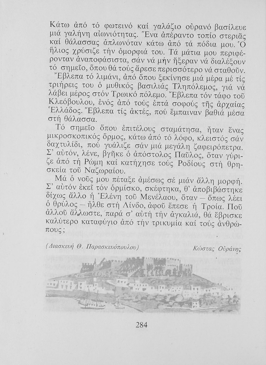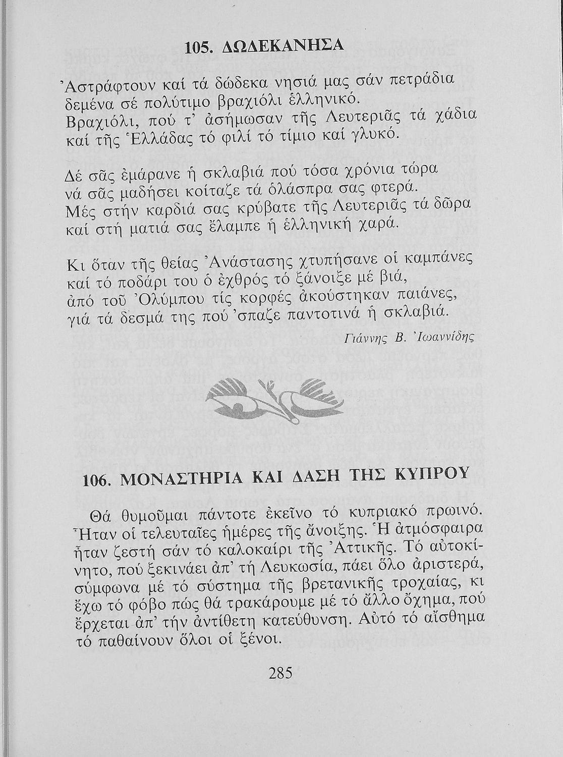 Αναγνωστικό Ε΄ Δημοτικού που περιέχει πεζά και ποιήματα εμπνευσμένα από τη θρησκευτική, εθνική, κοινωνική ζωή καθώς και από τις ασχολίες των Ελλήνων, την αρχαία και σύγχρονη ελληνική ιστορία και τον πολιτισμό. Περιλαμβάνει βιογραφίες των συγγραφέων.