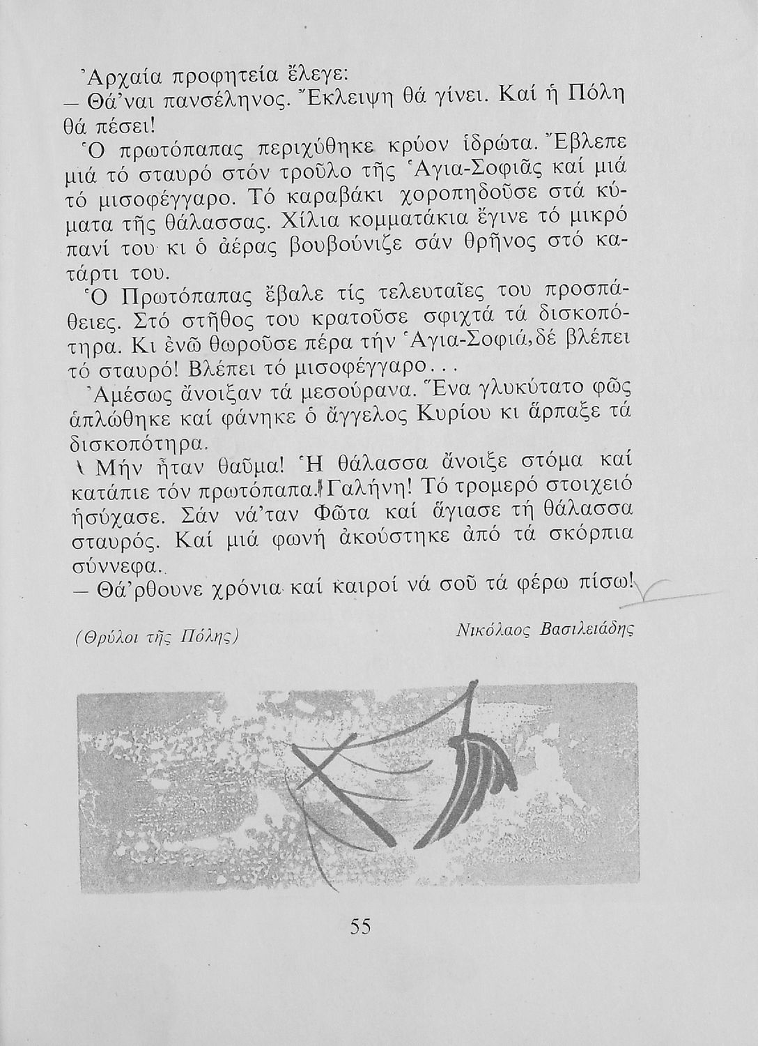 Αναγνωστικό Ε΄ Δημοτικού που περιέχει πεζά και ποιήματα εμπνευσμένα από τη θρησκευτική, εθνική, κοινωνική ζωή καθώς και από τις ασχολίες των Ελλήνων, την αρχαία και σύγχρονη ελληνική ιστορία και τον πολιτισμό. Περιλαμβάνει βιογραφίες των συγγραφέων.