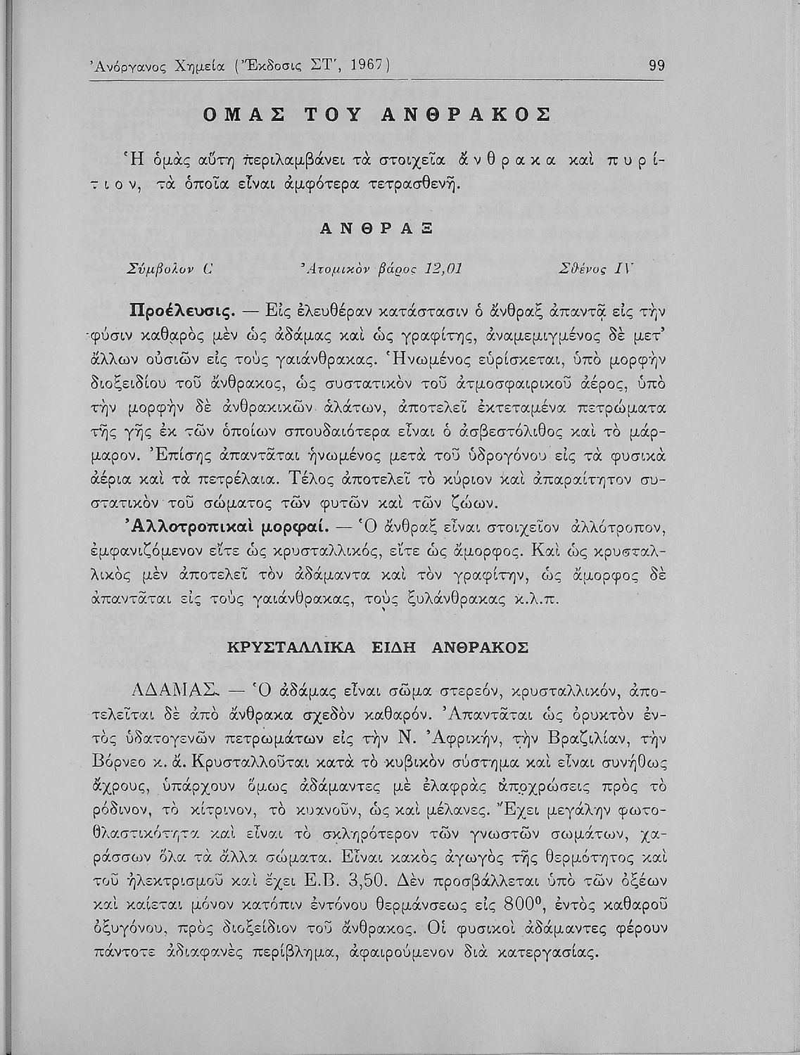 Σχολικό εγχειρίδιο Χημείας Α΄ και Β΄ Λυκείου που περιλαμβάνει εισαγωγή στις έννοιες της Χημείας (ύλη, νόμοι χημείας, χημικές αντιδράσεις, εξισώσεις, ενώσεις), αναλυτική περιγραφή στοιχείων και των ενώσεών τους.