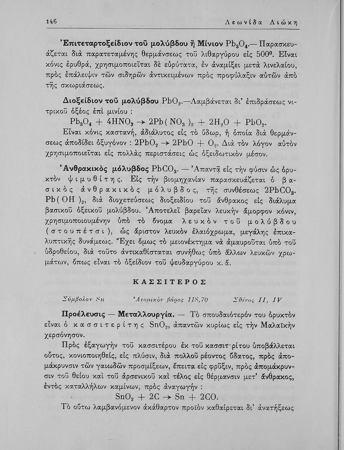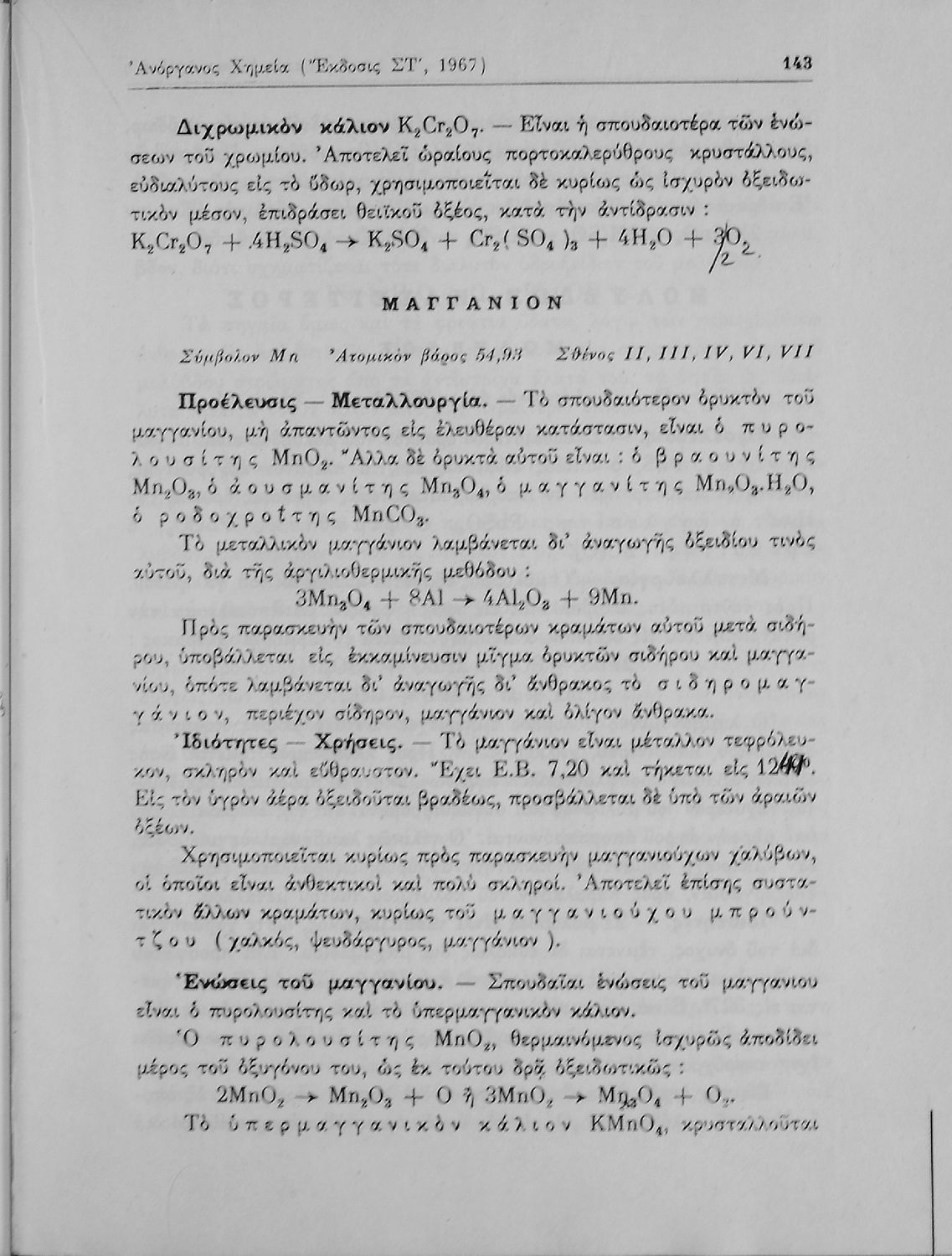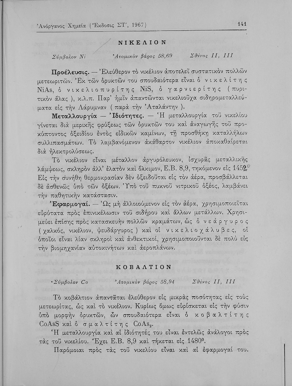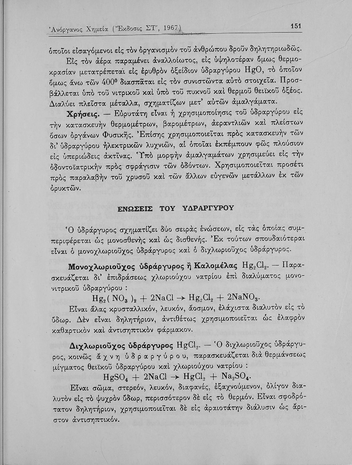Βαθμίδα εκπαίδευσης: Δευτεροβάθμια Τάξη: Α' Λυκείου / Β' Λυκείου Μάθημα: Χημεία Γλώσσα: Καθαρεύουσα Παρουσίαση περιεχομένου: Σχολικό εγχειρίδιο Χημείας Α΄ και Β΄ Λυκείου που περιλαμβάνει εισαγωγή στις έννοιες της Χημείας (ύλη, νόμοι χημείας, χημικές αντιδράσεις, εξισώσεις, ενώσεις), αναλυτική περιγραφή στοιχείων και των ενώσεών τους. |
