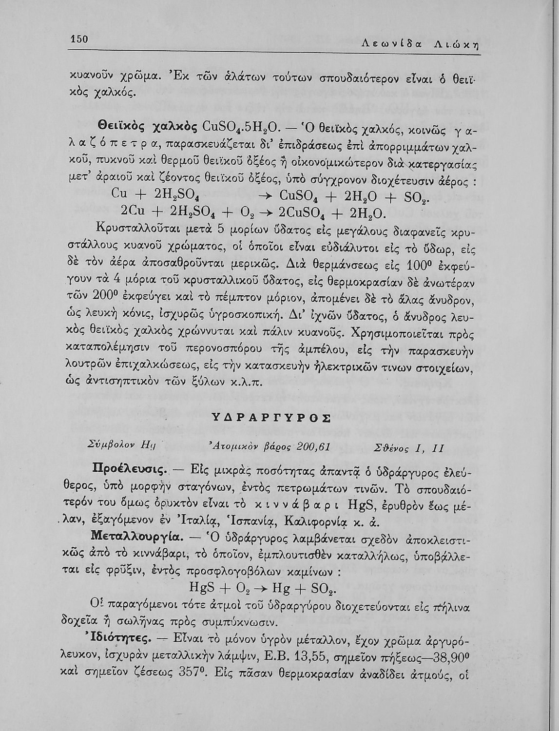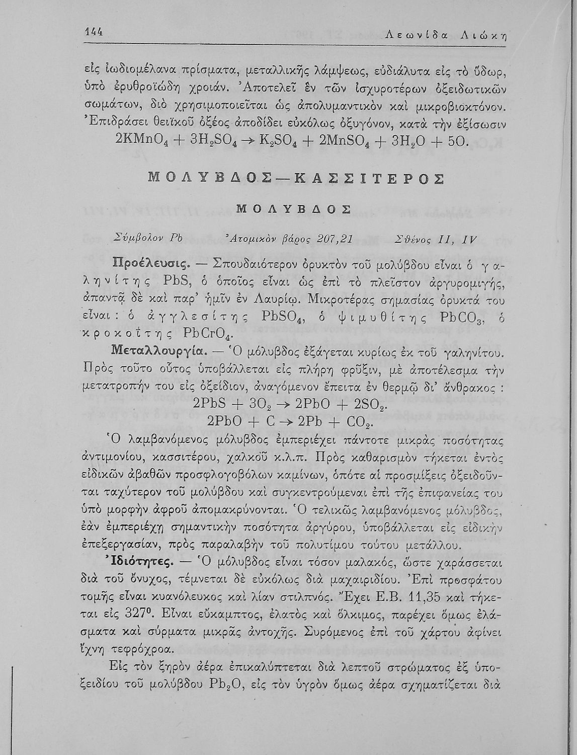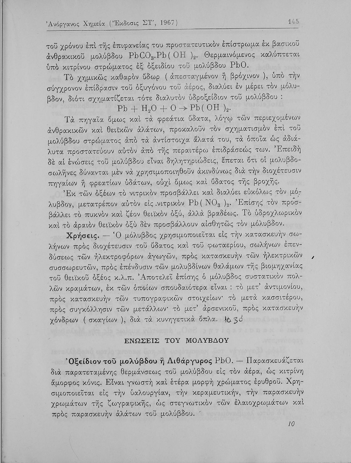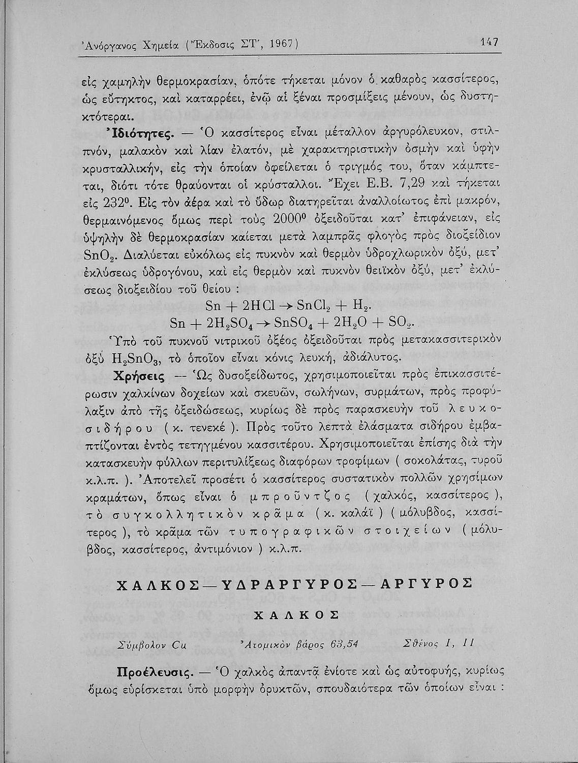 Βαθμίδα εκπαίδευσης: Δευτεροβάθμια Τάξη: Α' Λυκείου / Β' Λυκείου Μάθημα: Χημεία Γλώσσα: Καθαρεύουσα Παρουσίαση περιεχομένου: Σχολικό εγχειρίδιο Χημείας Α΄ και Β΄ Λυκείου που περιλαμβάνει εισαγωγή στις έννοιες της Χημείας (ύλη, νόμοι χημείας, χημικές αντιδράσεις, εξισώσεις, ενώσεις), αναλυτική περιγραφή στοιχείων και των ενώσεών τους. |