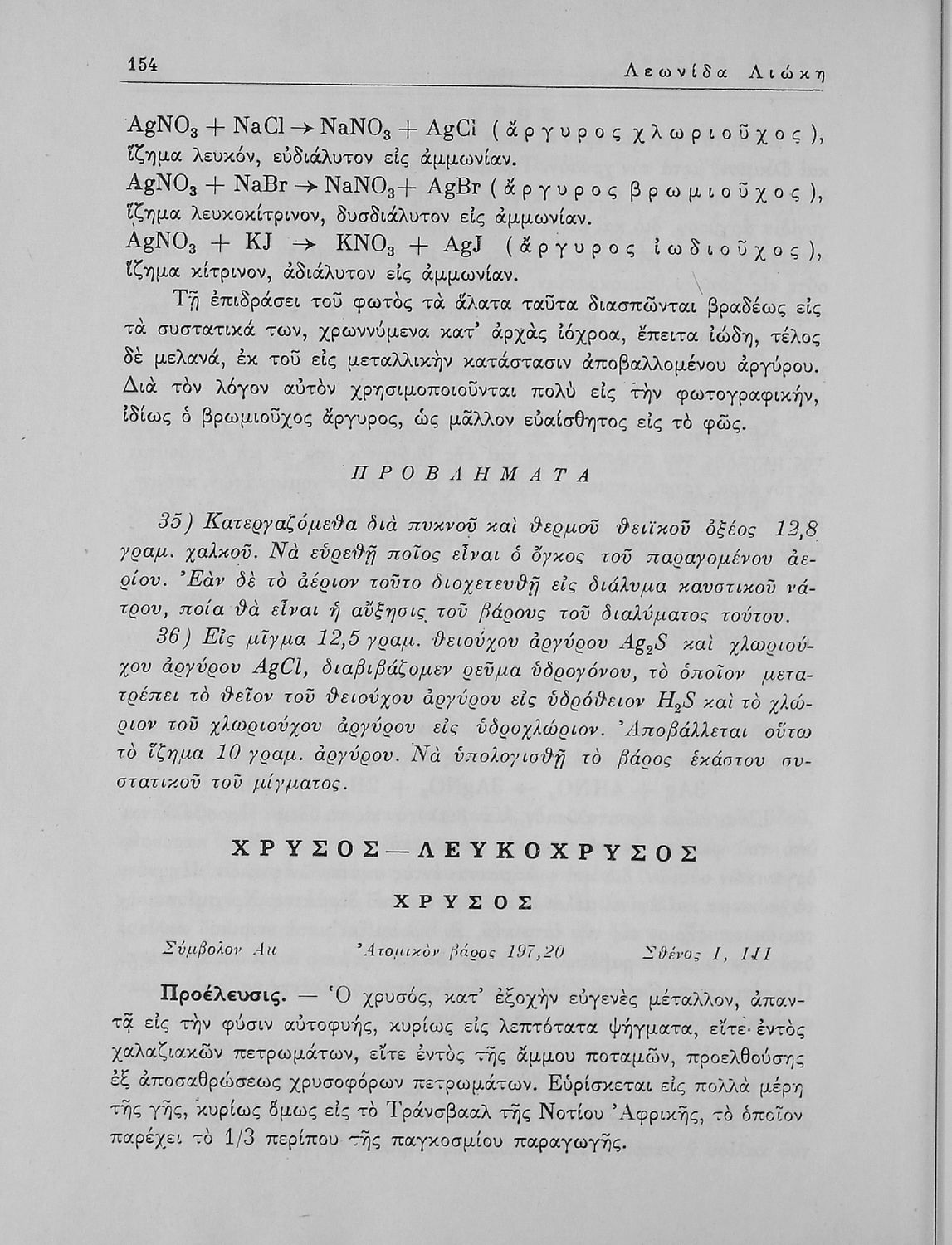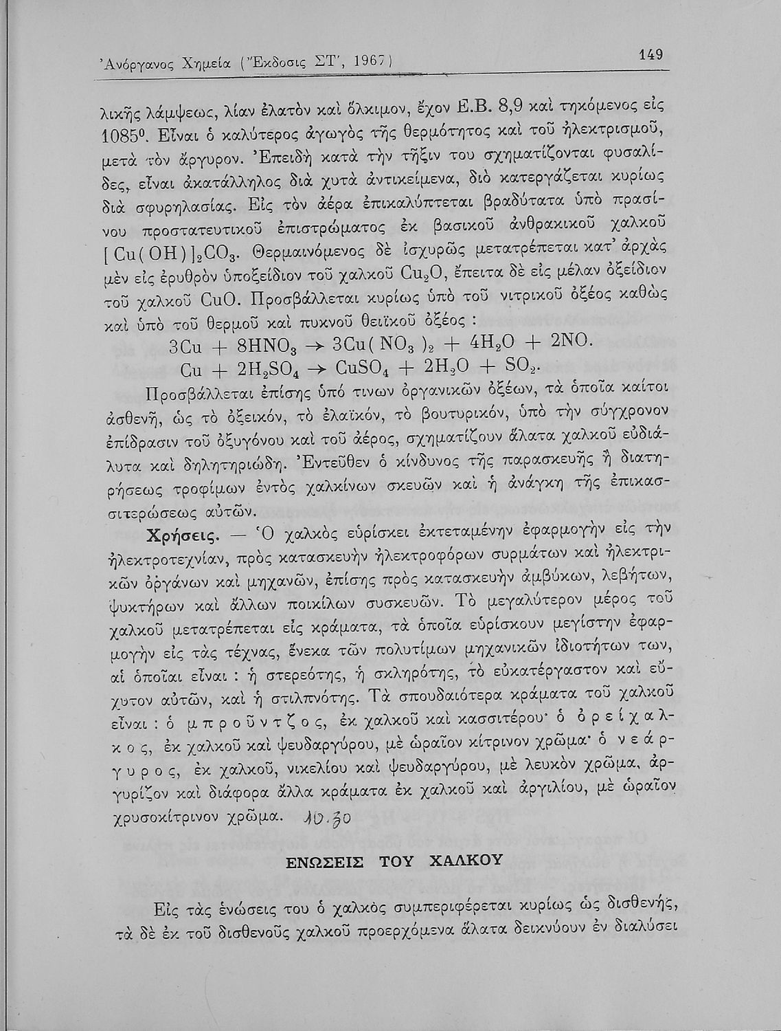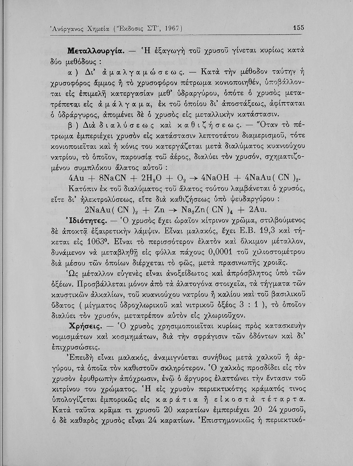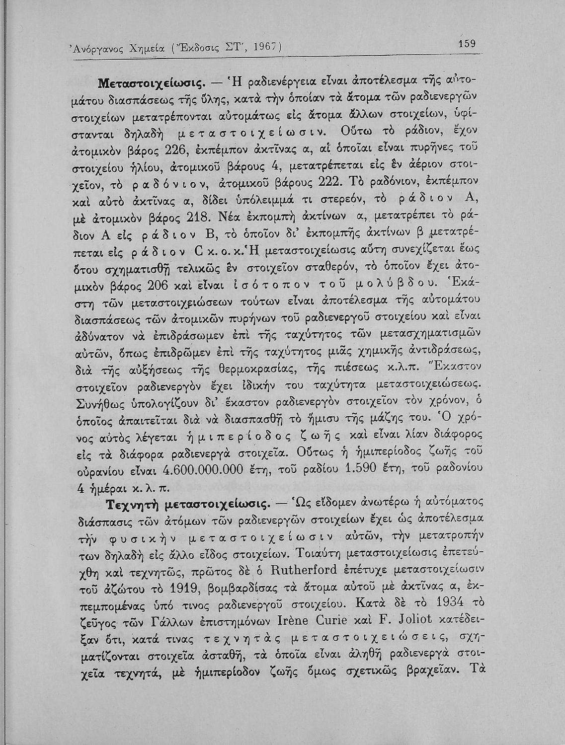 Βαθμίδα εκπαίδευσης: Δευτεροβάθμια Τάξη: Α' Λυκείου / Β' Λυκείου Μάθημα: Χημεία Γλώσσα: Καθαρεύουσα Παρουσίαση περιεχομένου: Σχολικό εγχειρίδιο Χημείας Α΄ και Β΄ Λυκείου που περιλαμβάνει εισαγωγή στις έννοιες της Χημείας (ύλη, νόμοι χημείας, χημικές αντιδράσεις, εξισώσεις, ενώσεις), αναλυτική περιγραφή στοιχείων και των ενώσεών τους. |