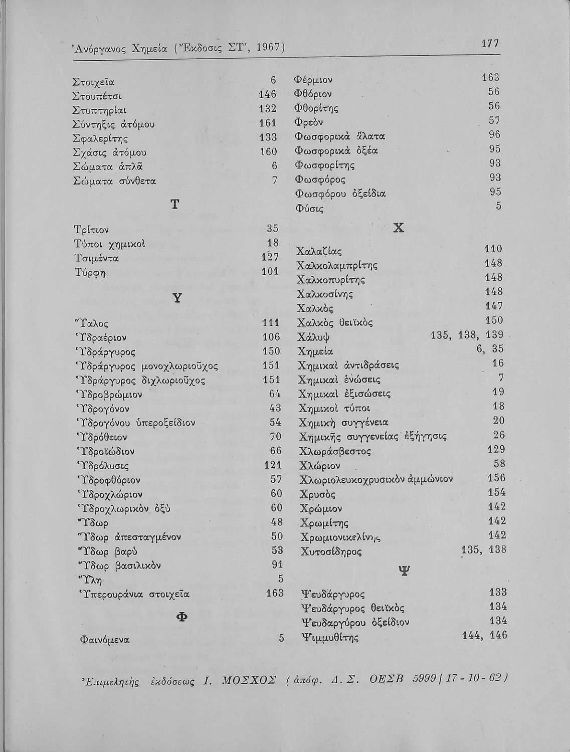 Κωδικός αναγνώρισης: 01-17069 Τίτλος: Στοιχεία Ανοργάνου Χημείας δια την Α΄ και Β΄ Λυκείου Συγγραφέας: Λεωνίδας Σπ. Λιώκης Μέγεθος και υπόστρωμα: Σχολικό εγχειρίδιο, μαλακό εξώφυλλο, 182 σελίδες. Σχέδια και σχήματα (ασπρόμαυρα). |