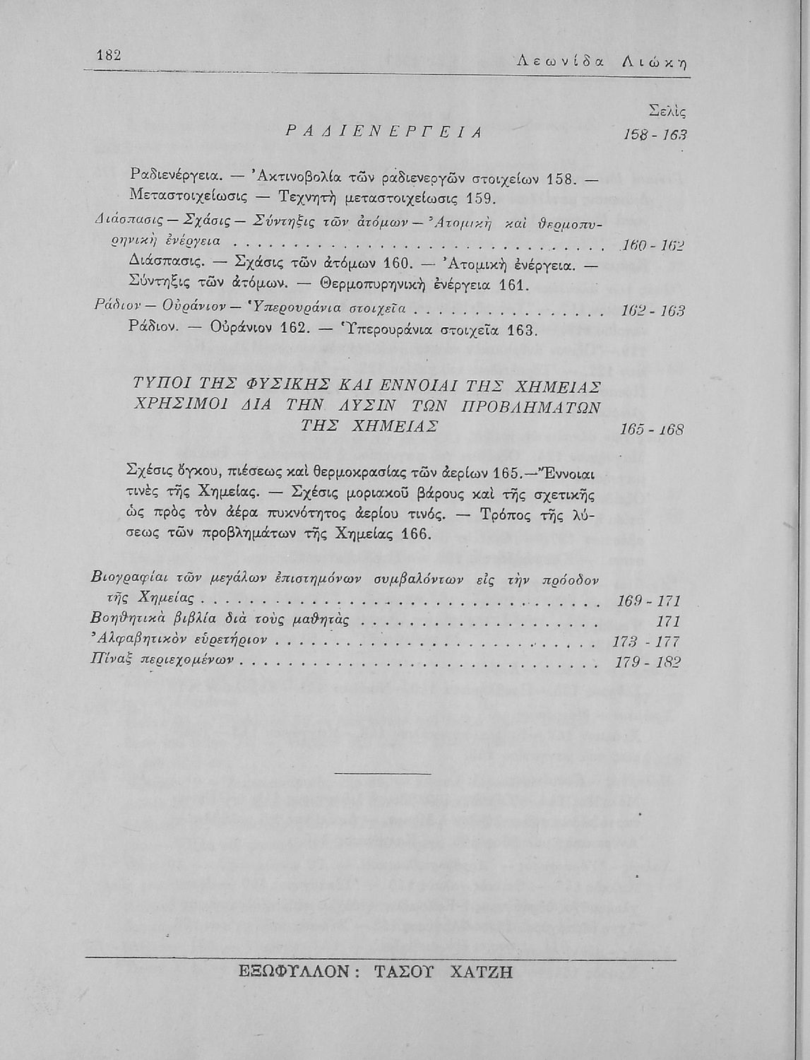 Σχολικό εγχειρίδιο Χημείας Α΄ και Β΄ Λυκείου που περιλαμβάνει εισαγωγή στις έννοιες της Χημείας (ύλη, νόμοι χημείας, χημικές αντιδράσεις, εξισώσεις, ενώσεις), αναλυτική περιγραφή στοιχείων και των ενώσεών τους.