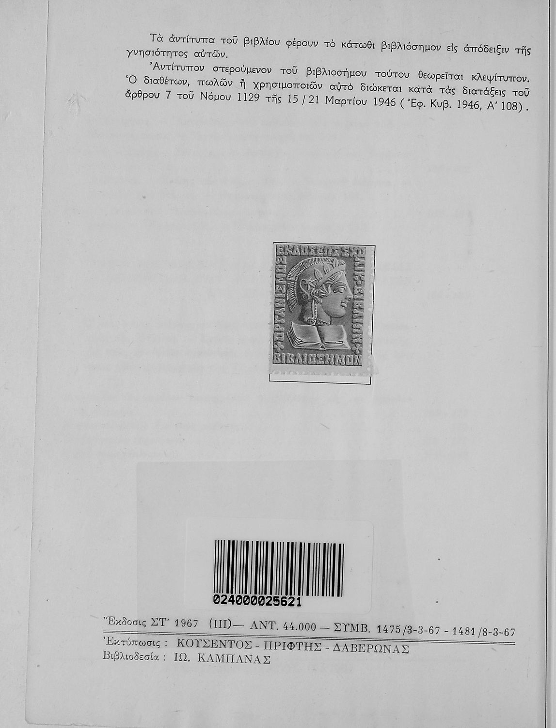 Εκδότης: Οργανισμός Εκδόσεως Διδακτικών Βιβλίων Έτος έκδοσης: 1967 Τόπος έκδοσης: Αθήνα Έκδοση: 6η Υπουργική απόφαση / Σύμβαση: 1475/3-3-1967, 1481/8-3-1967 Έτος έγκρισης: 1967 |