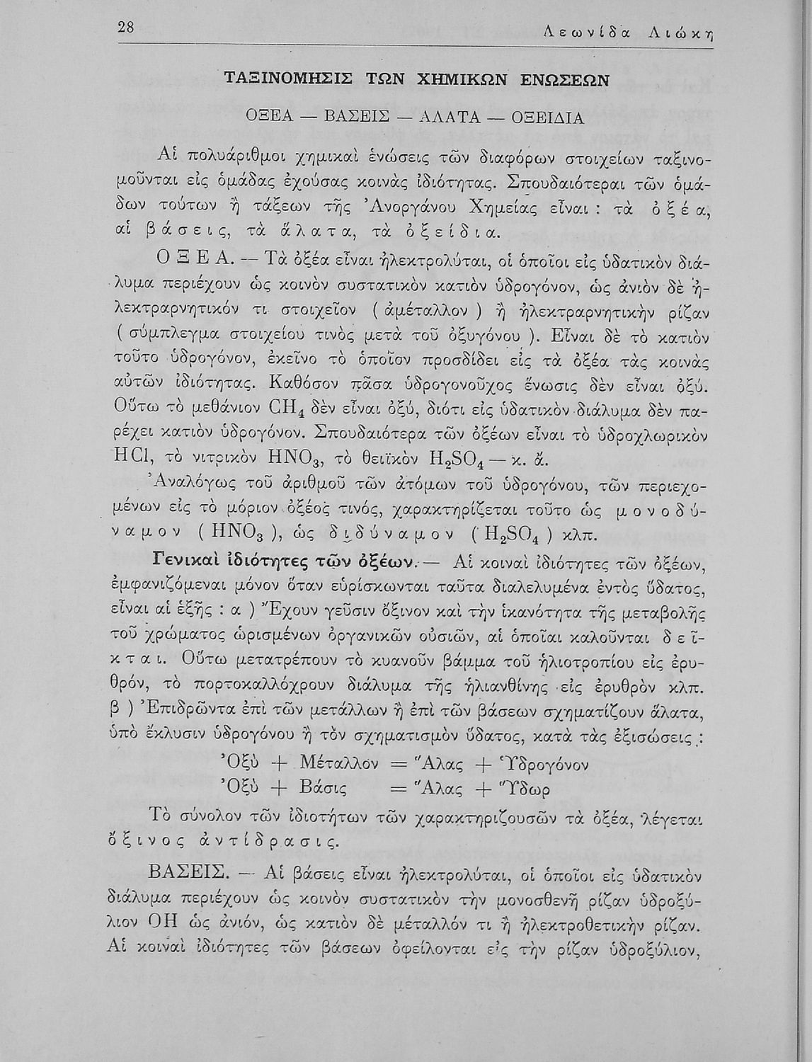 Βαθμίδα εκπαίδευσης: Δευτεροβάθμια Τάξη: Α' Λυκείου / Β' Λυκείου Μάθημα: Χημεία Γλώσσα: Καθαρεύουσα Παρουσίαση περιεχομένου: Σχολικό εγχειρίδιο Χημείας Α΄ και Β΄ Λυκείου που περιλαμβάνει εισαγωγή στις έννοιες της Χημείας (ύλη, νόμοι χημείας, χημικές αντιδράσεις, εξισώσεις, ενώσεις), αναλυτική περιγραφή στοιχείων και των ενώσεών τους. |