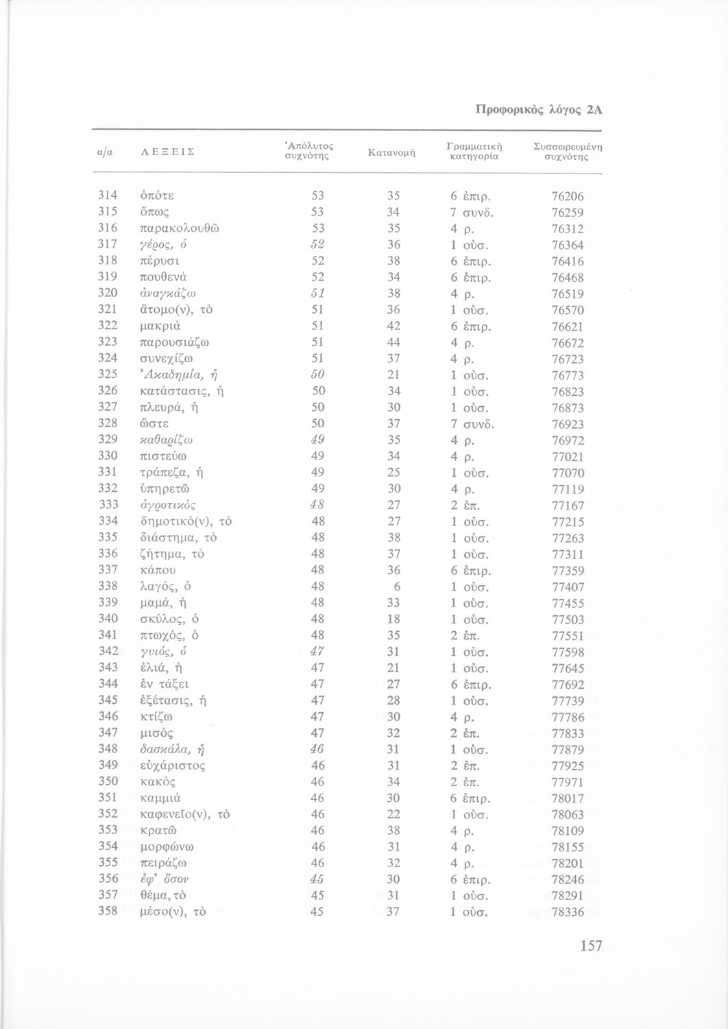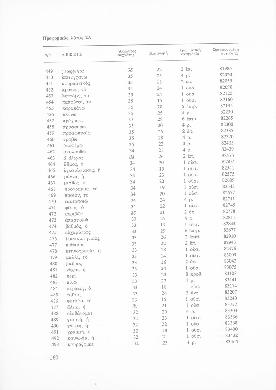 Έρευνα πάνω στη νέα ελληνική που αποσκοπεί στην κατάρτιση και διδασκαλία ενός βασικού λεξιλογίου και της ορθογραφίας του. Φέρει το σύμβολο της δικτατορίας.