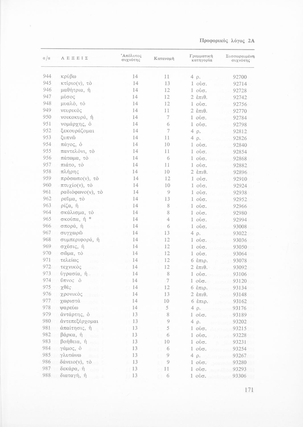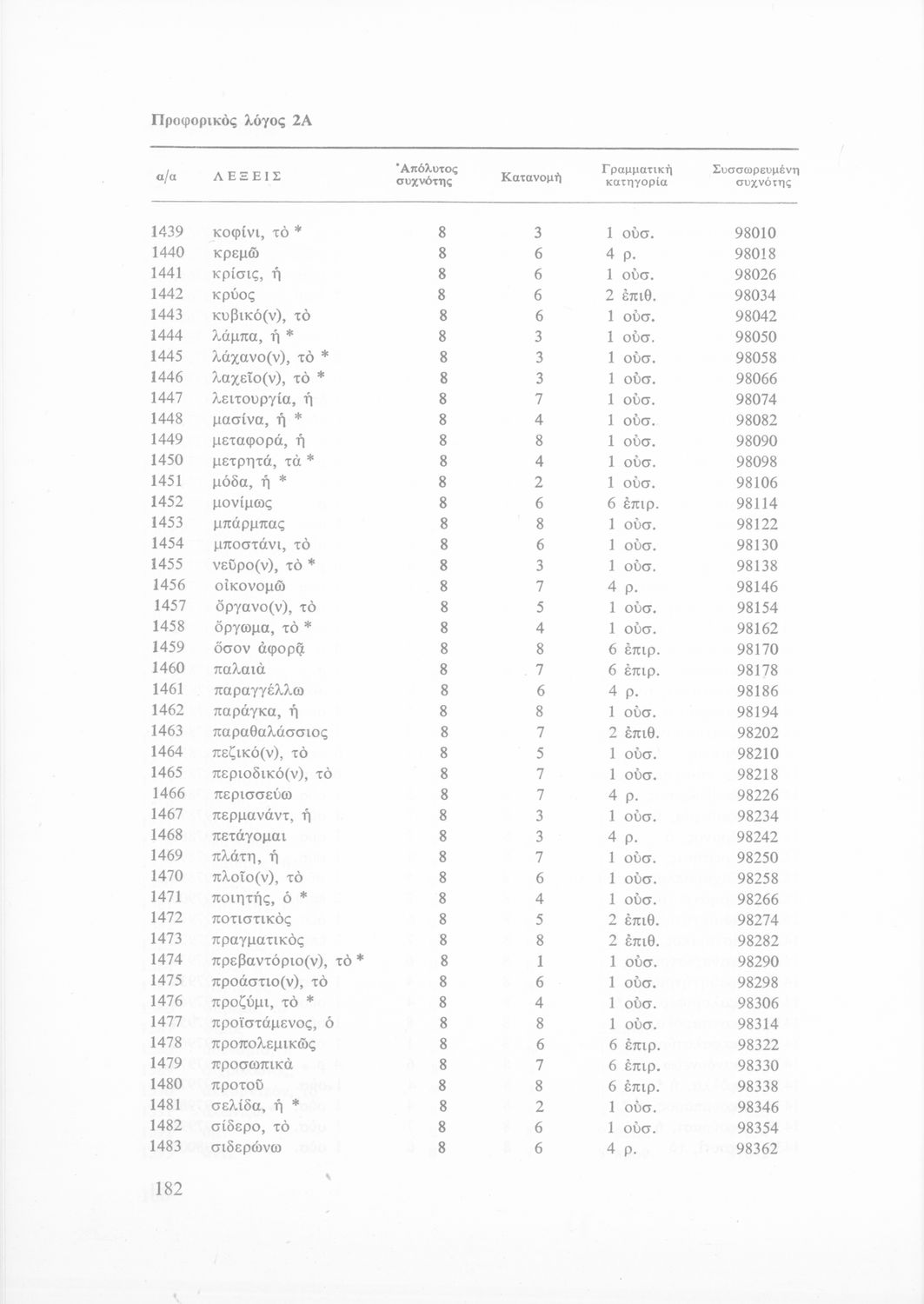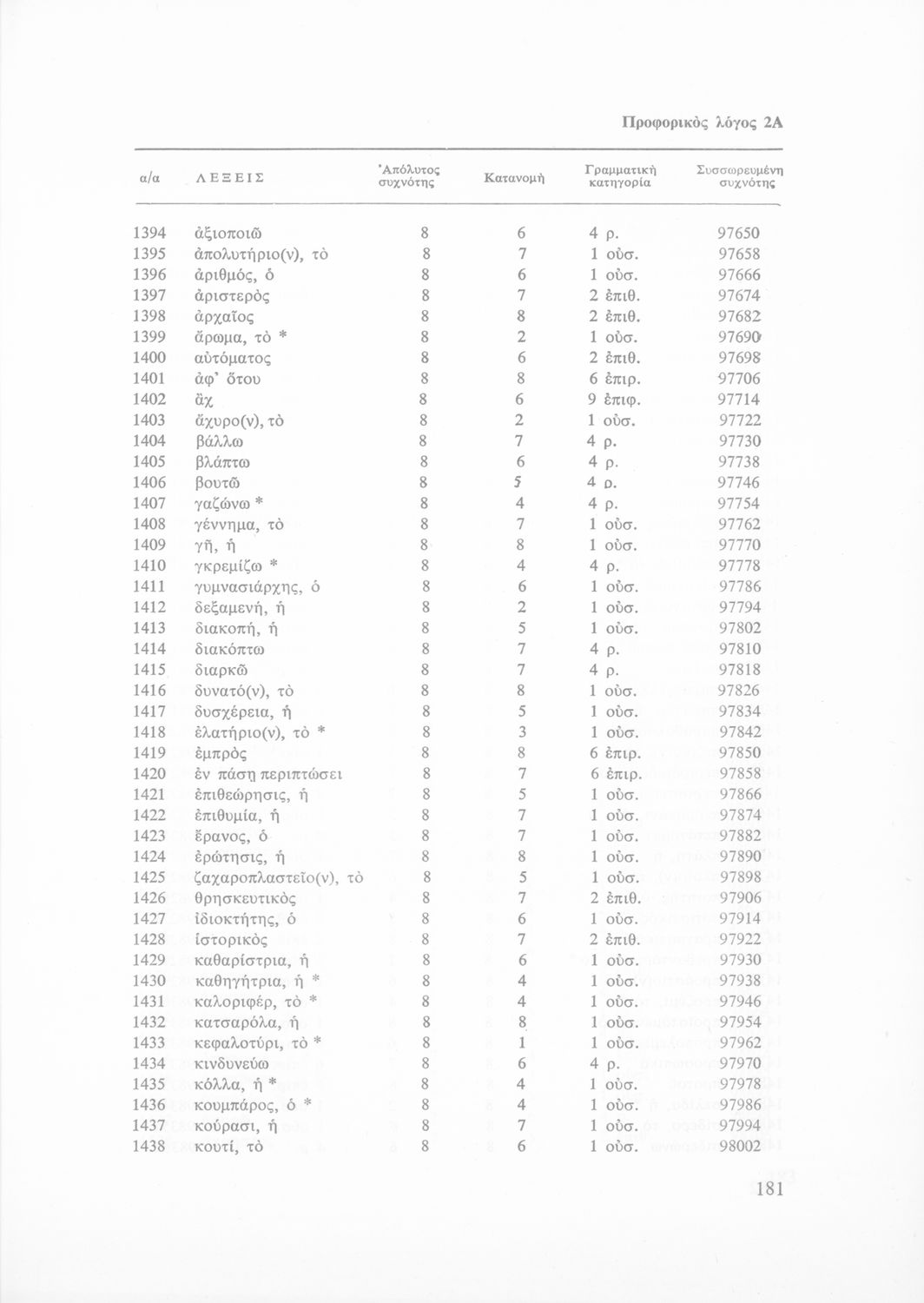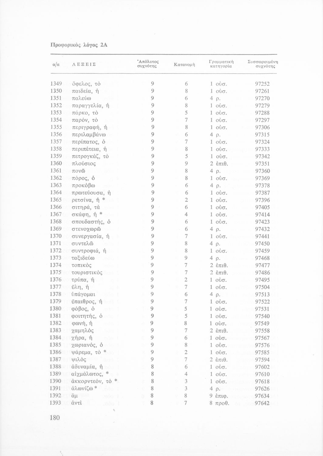 Έρευνα πάνω στη νέα ελληνική που αποσκοπεί στην κατάρτιση και διδασκαλία ενός βασικού λεξιλογίου και της ορθογραφίας του. Φέρει το σύμβολο της δικτατορίας.