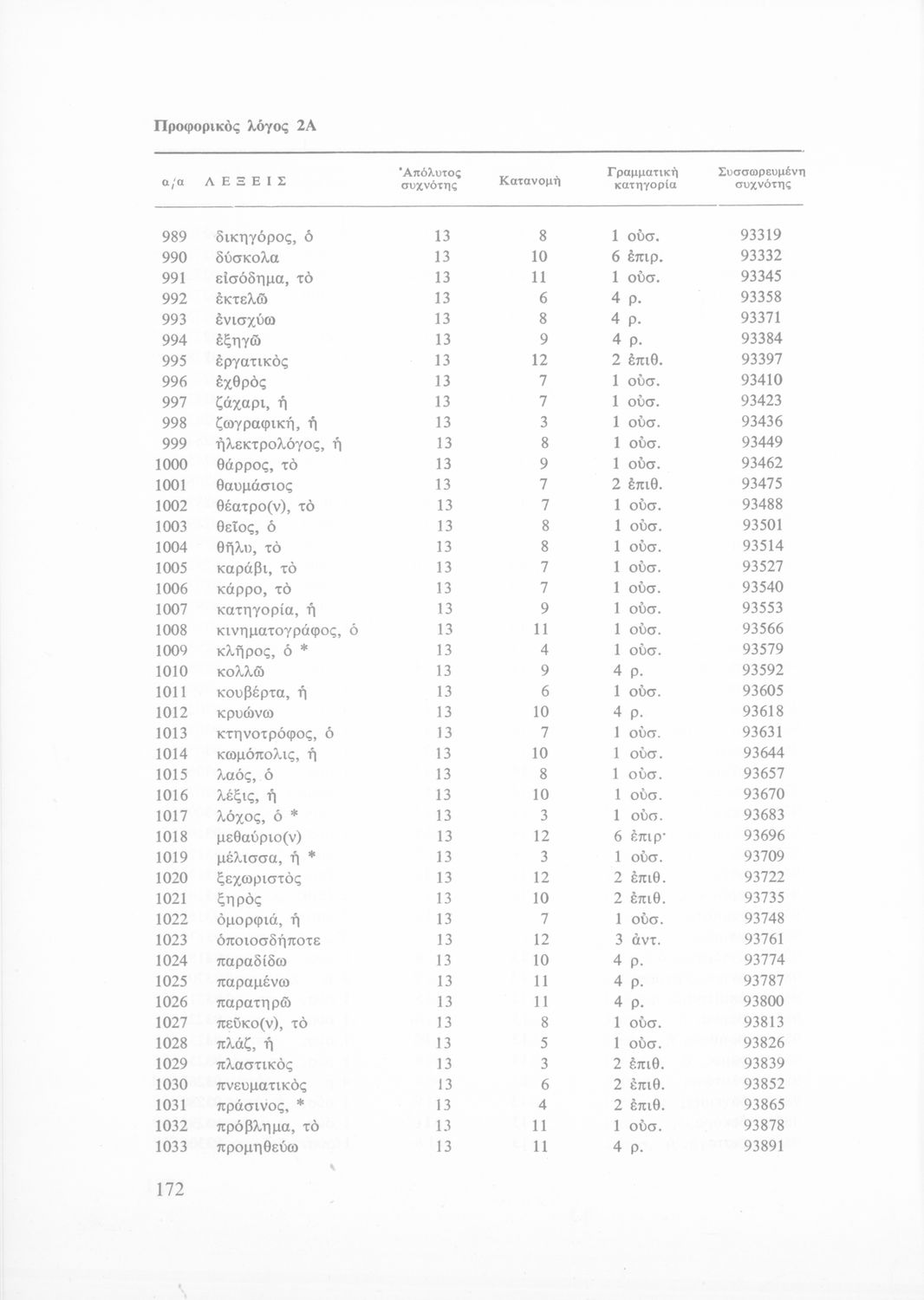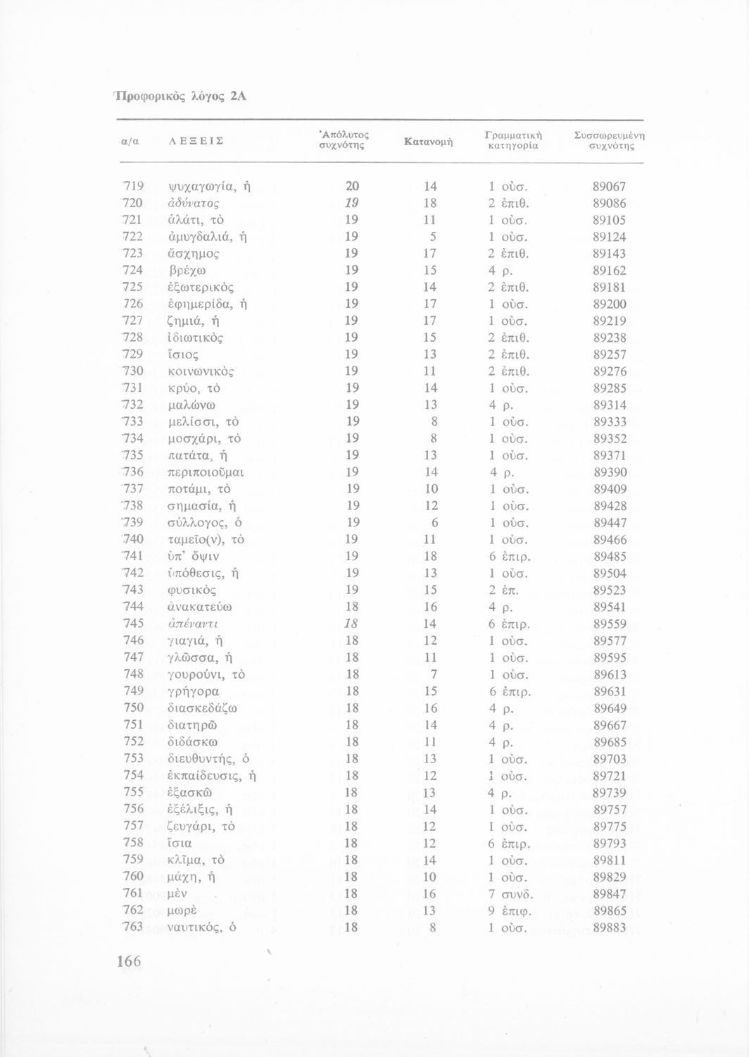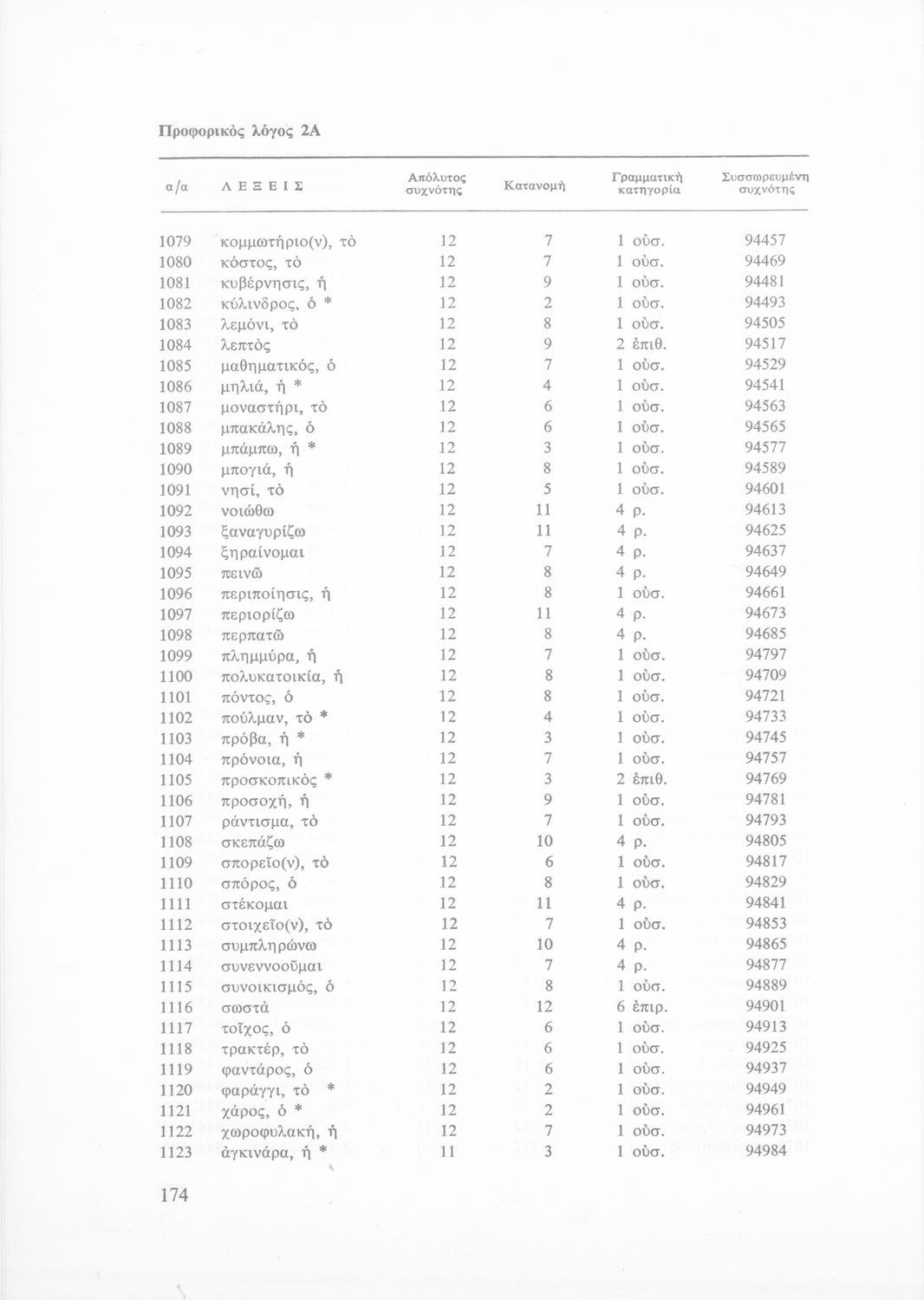 Έρευνα πάνω στη νέα ελληνική που αποσκοπεί στην κατάρτιση και διδασκαλία ενός βασικού λεξιλογίου και της ορθογραφίας του. Φέρει το σύμβολο της δικτατορίας.