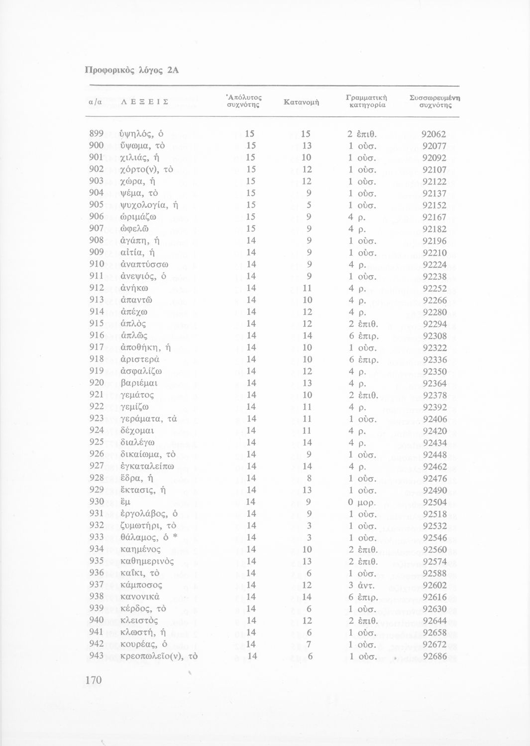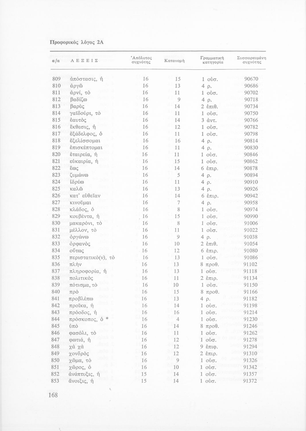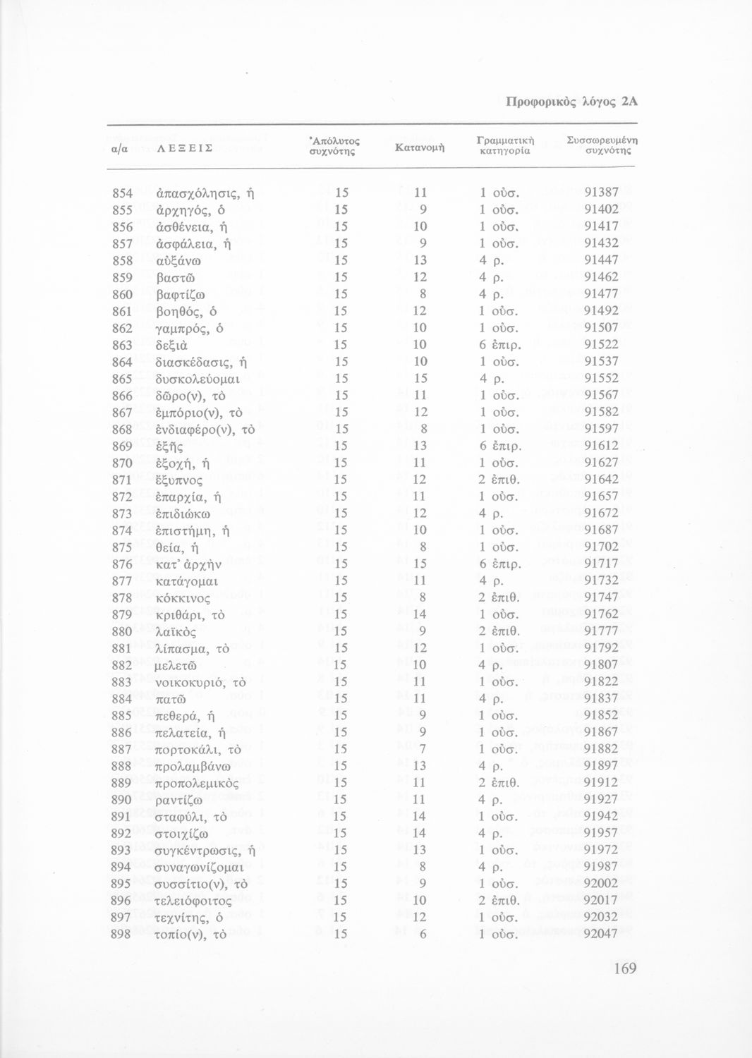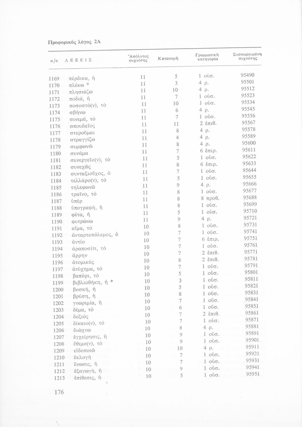 Έρευνα πάνω στη νέα ελληνική που αποσκοπεί στην κατάρτιση και διδασκαλία ενός βασικού λεξιλογίου και της ορθογραφίας του. Φέρει το σύμβολο της δικτατορίας.