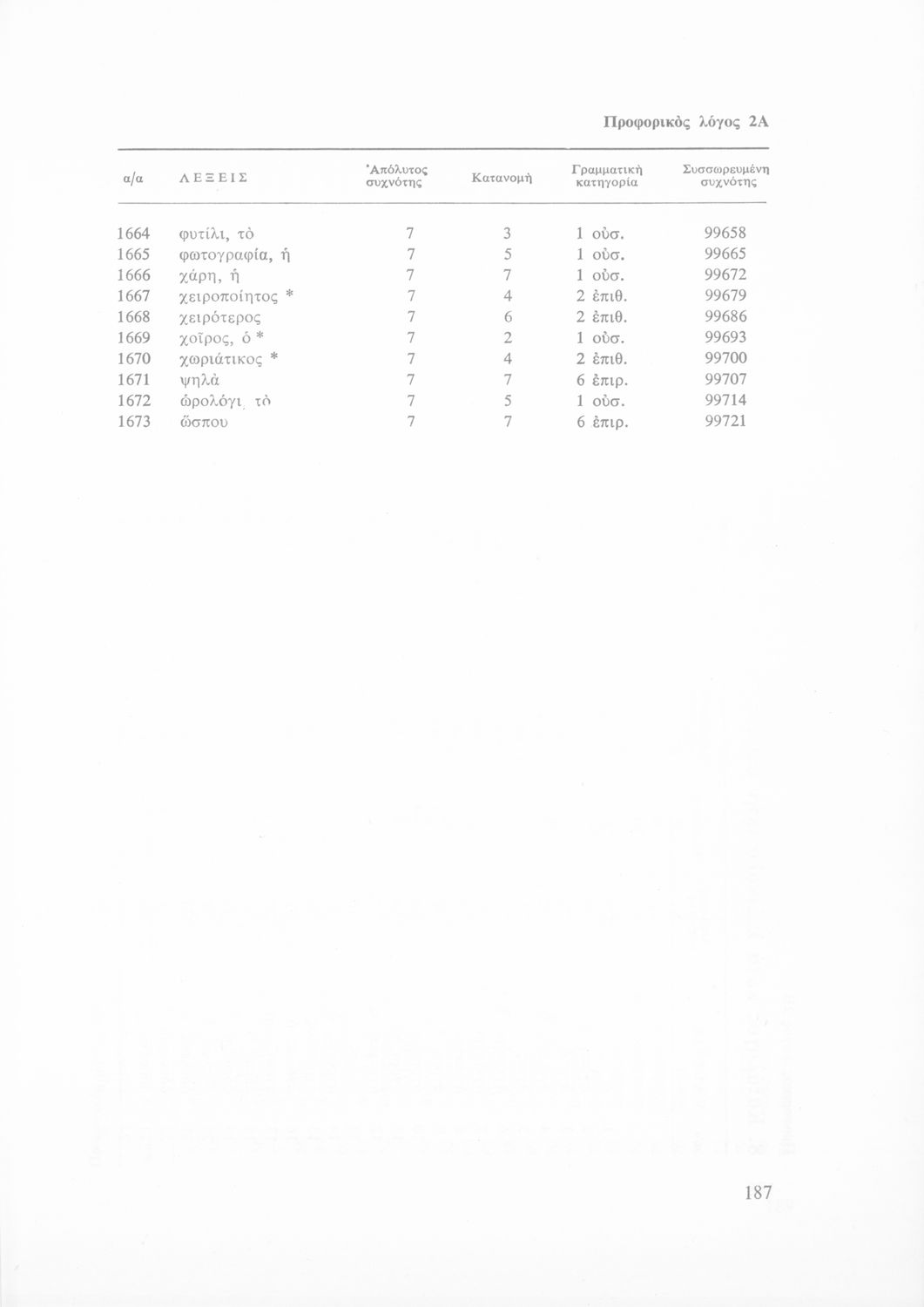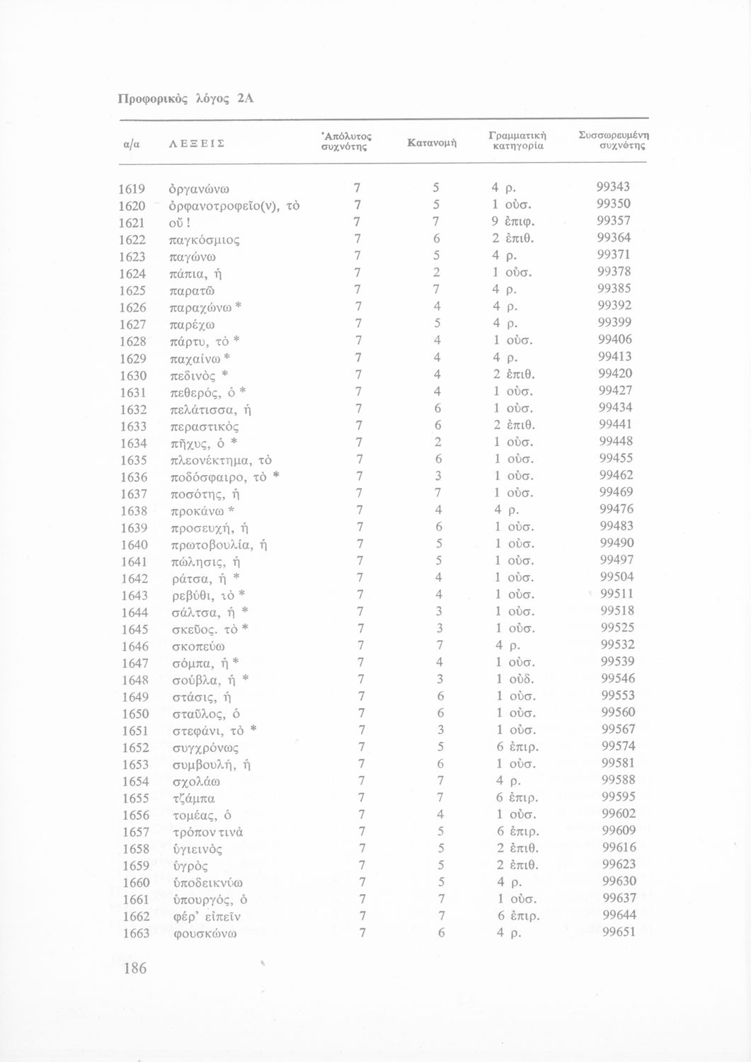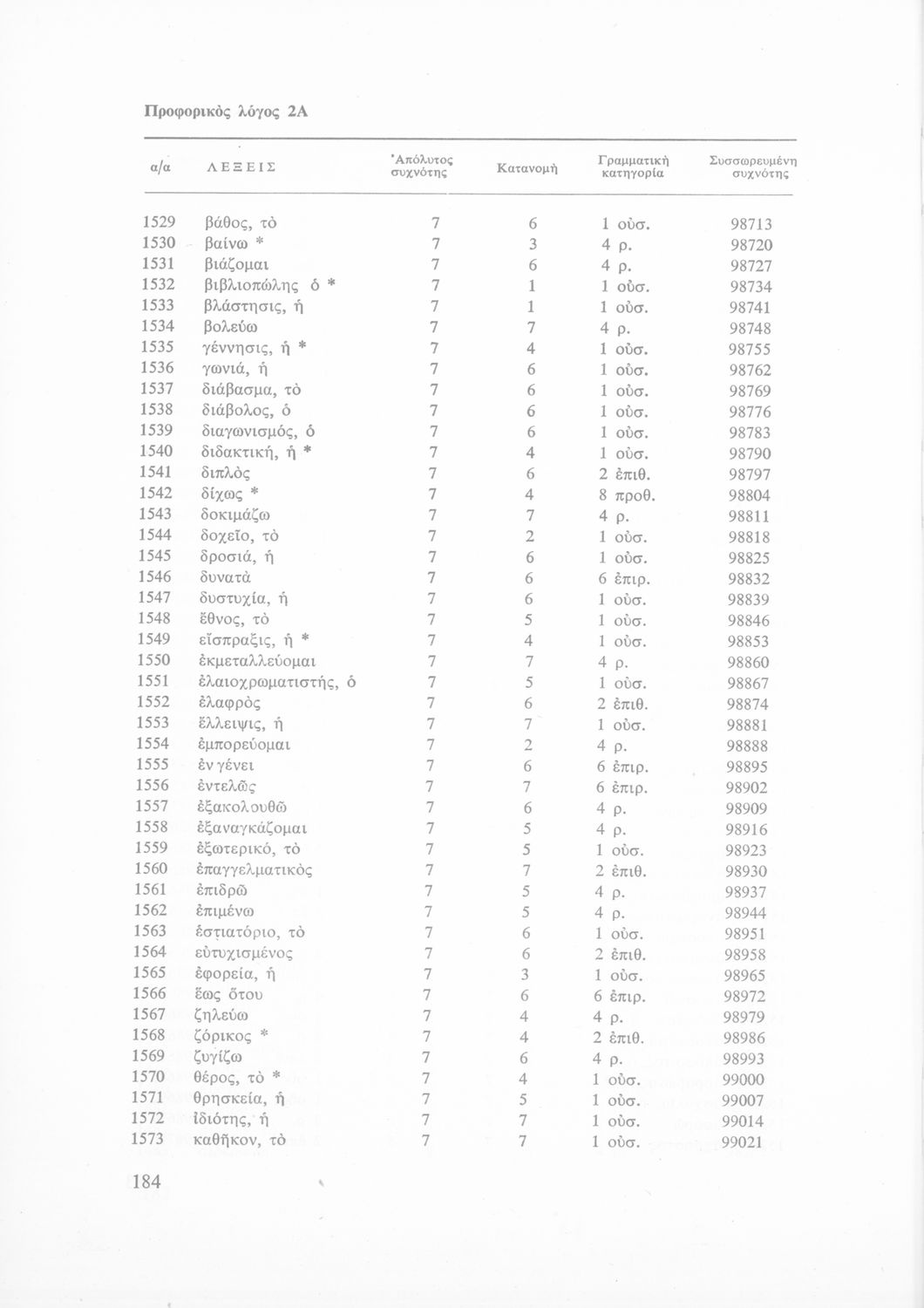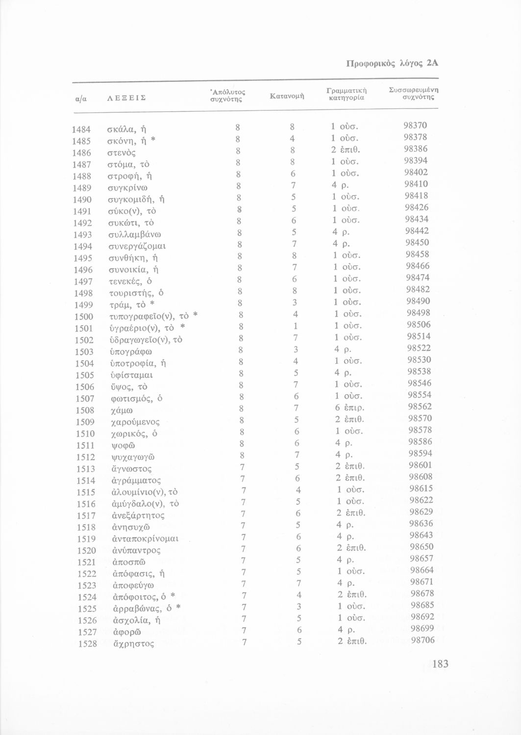 Έρευνα πάνω στη νέα ελληνική που αποσκοπεί στην κατάρτιση και διδασκαλία ενός βασικού λεξιλογίου και της ορθογραφίας του. Φέρει το σύμβολο της δικτατορίας.