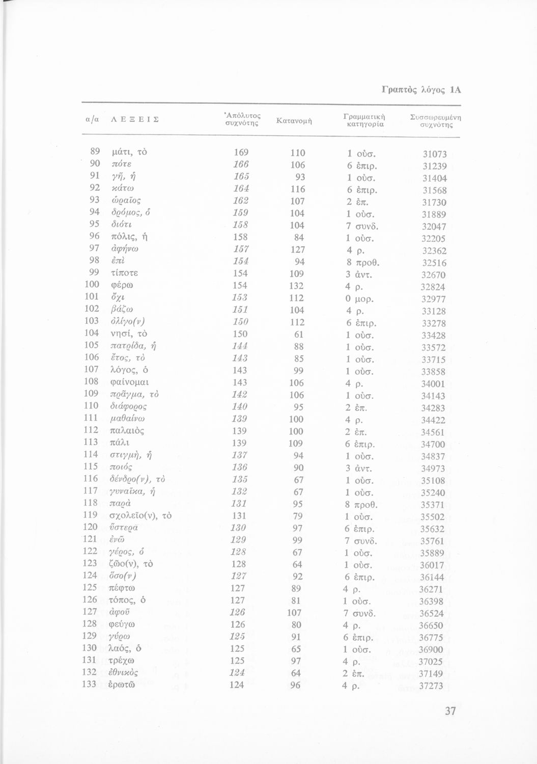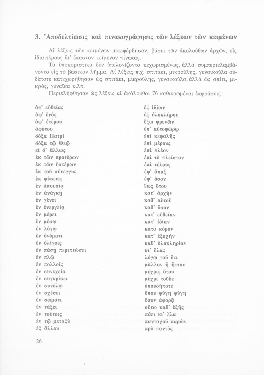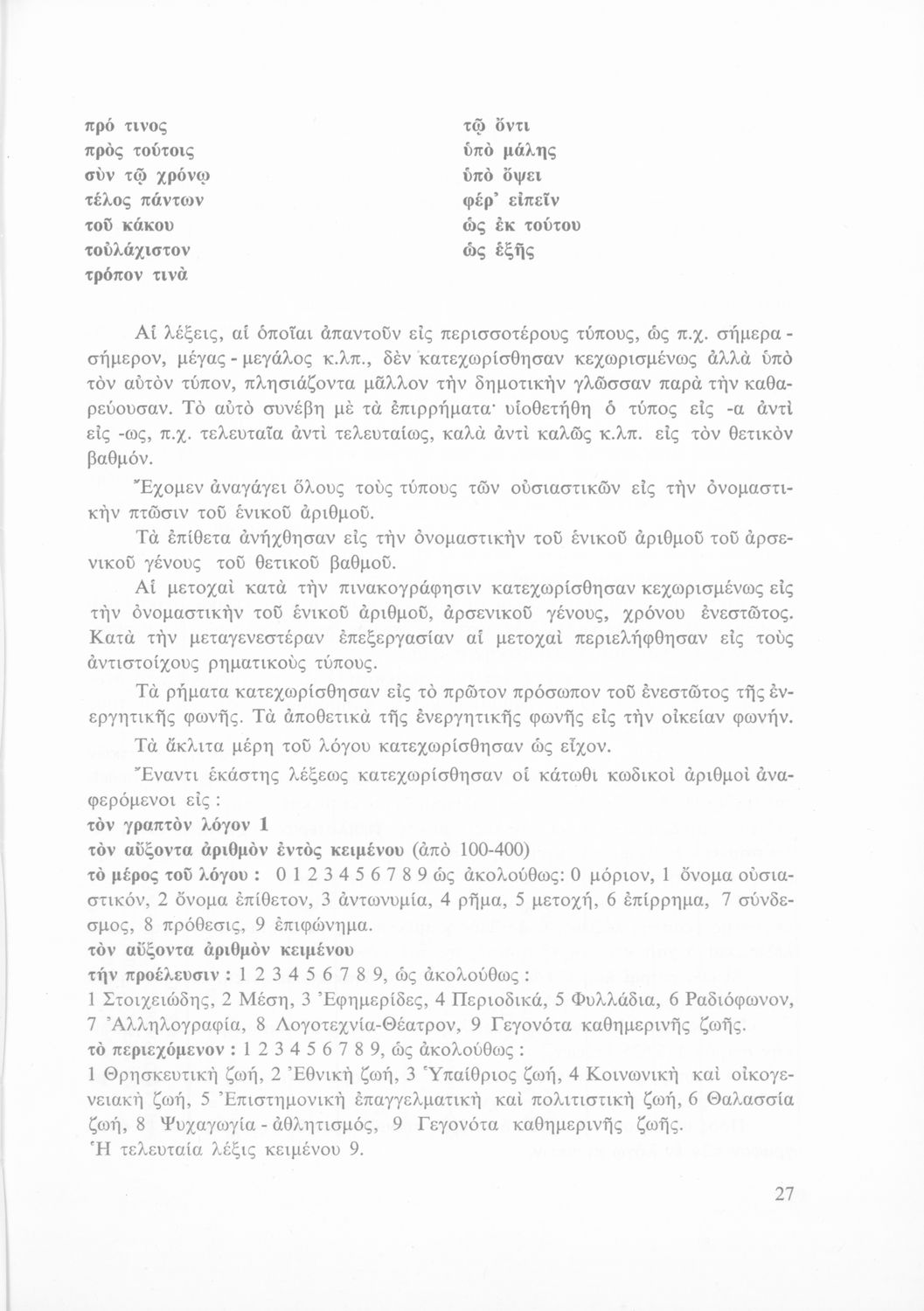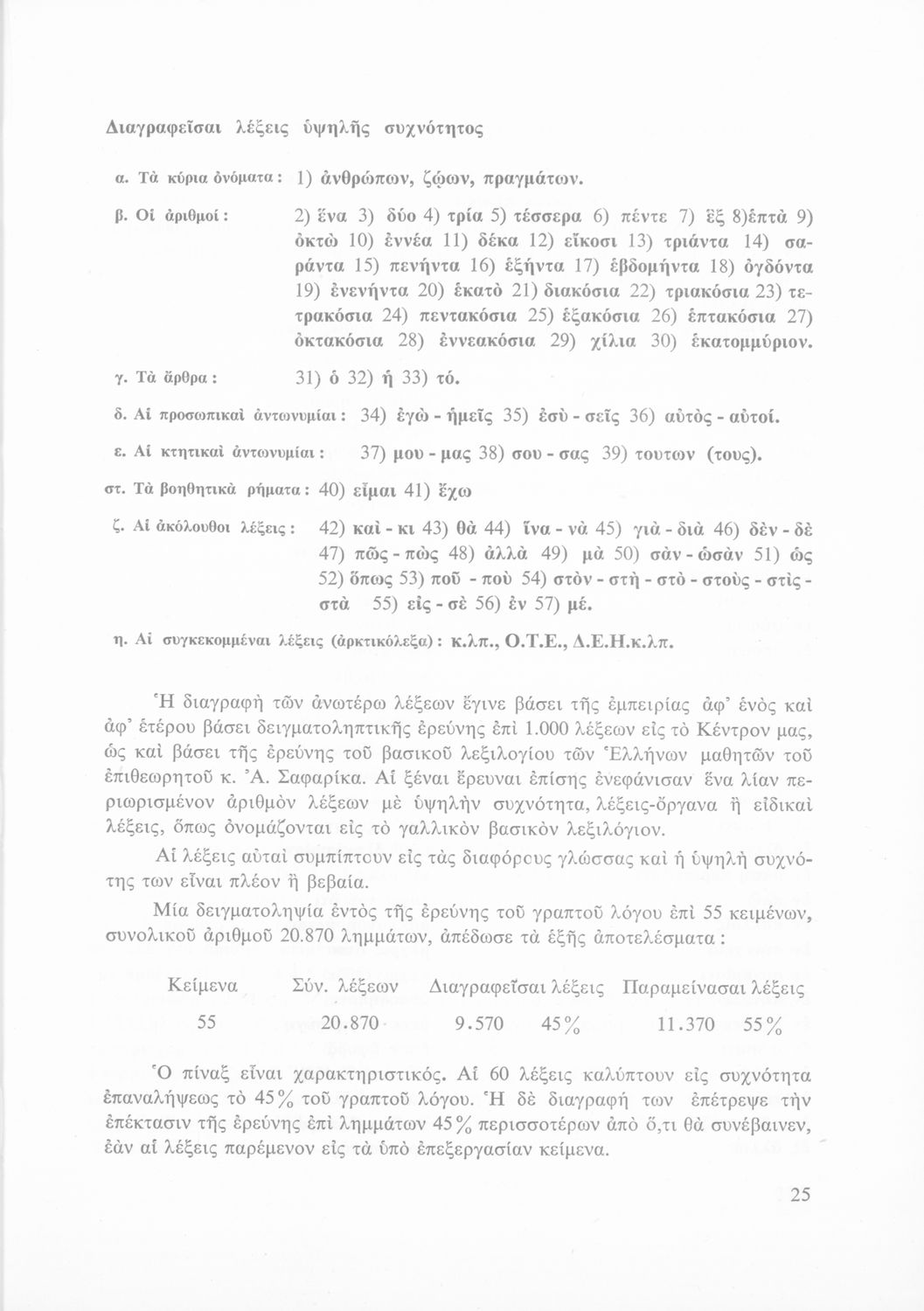 Έρευνα πάνω στη νέα ελληνική που αποσκοπεί στην κατάρτιση και διδασκαλία ενός βασικού λεξιλογίου και της ορθογραφίας του. Φέρει το σύμβολο της δικτατορίας.